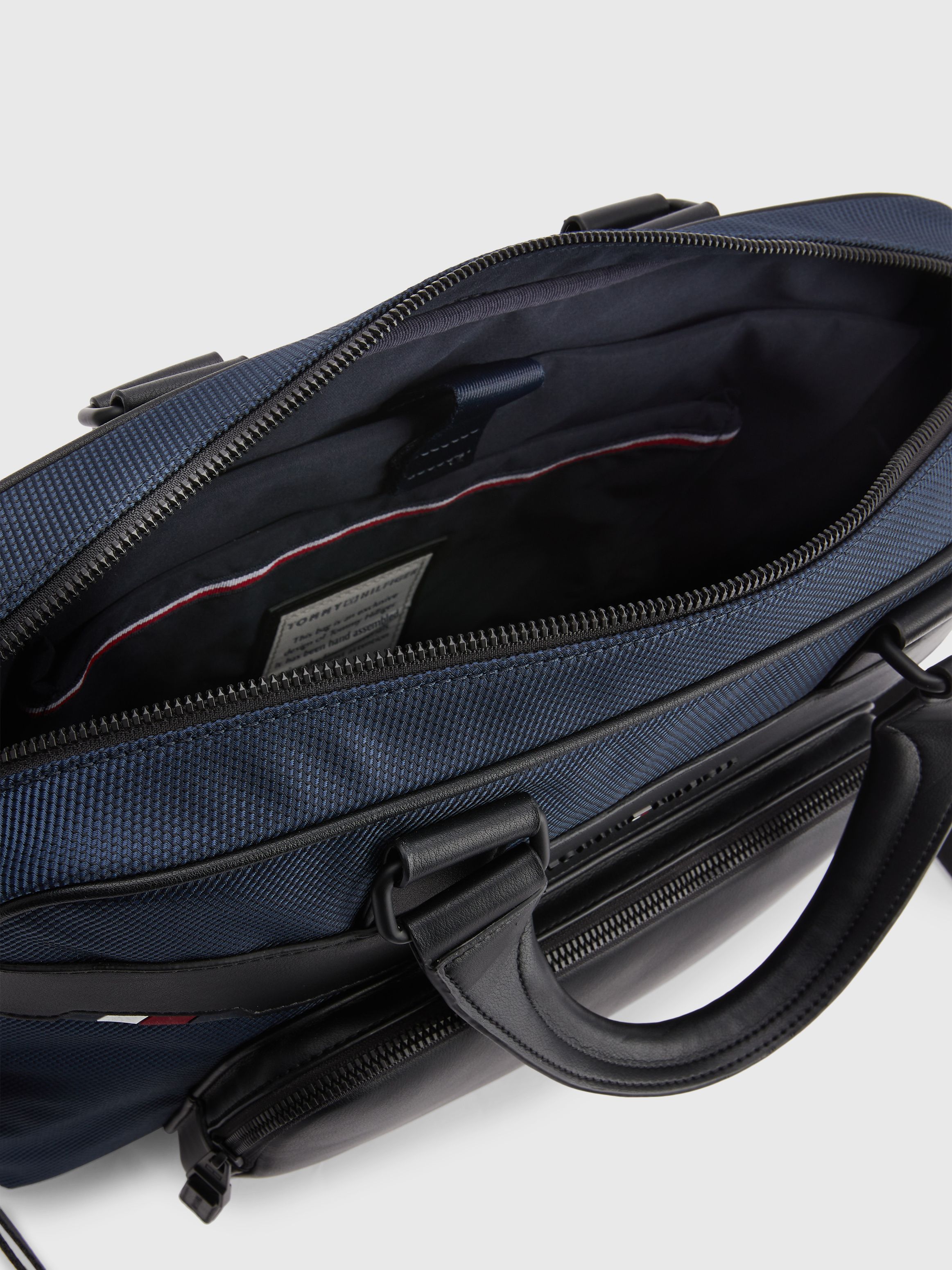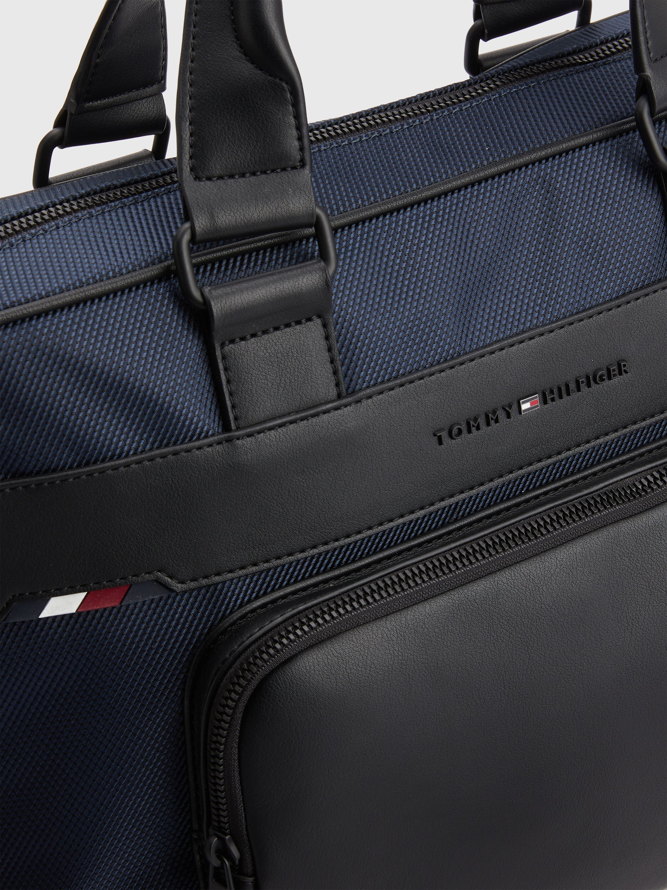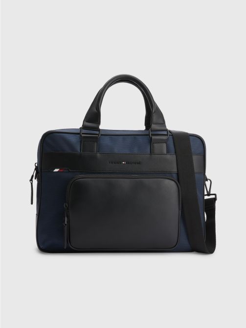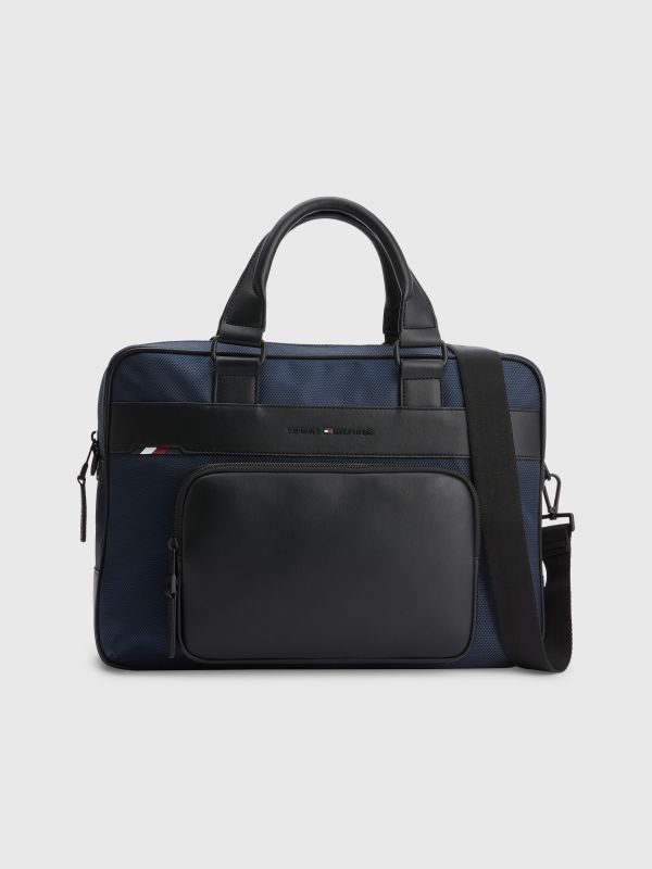 تتميز حقيبة اللابتوب بتصميم متعدد الاستخدامات، كما تتميز بشعار تومي هيلفيغر المنقوش.