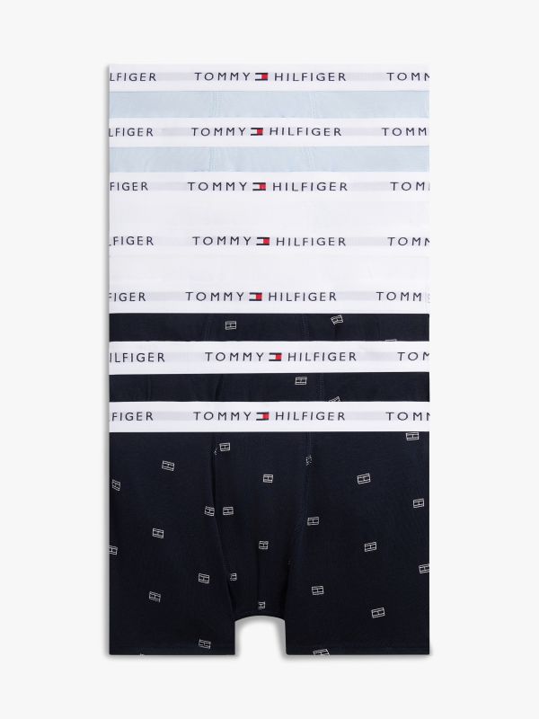 طقم 7 بوكسر بخصر مطاطي مزين بشعار مميز، يضيف تنوعاً لدرج الملابس الداخلية مع خامة قطن مطاطي مريحة وطبعات متعددة. أبرز التفاصيل • قطن مطاطي • طقم من 7 قطع • طبعة تغطي التصميم بالكامل على 3 قطع • خصر مطاطي مزين بشعار تومي هيلفيغر المتكرر • علامة تومي هيلفيغر القصة والمقاس • بوكسر (Trunks) الخامة والعناية • 95% قطن، 5% إيلاستان