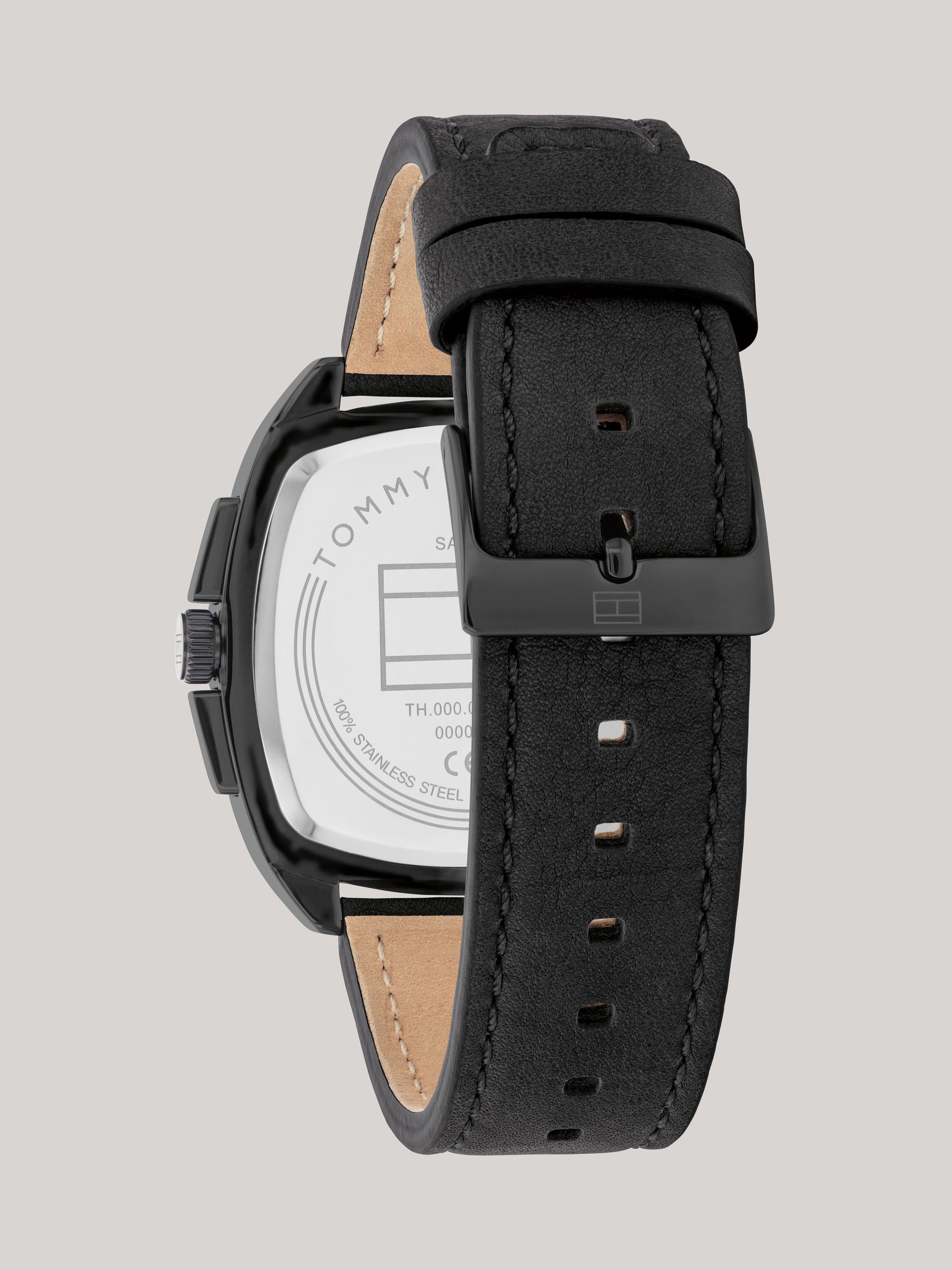 ساعة برباط جلدي أسود مع هيكل من الستانلس ستيل وقرص أسود تضفي لمسة عصرية ودائمة على إطلالتك.