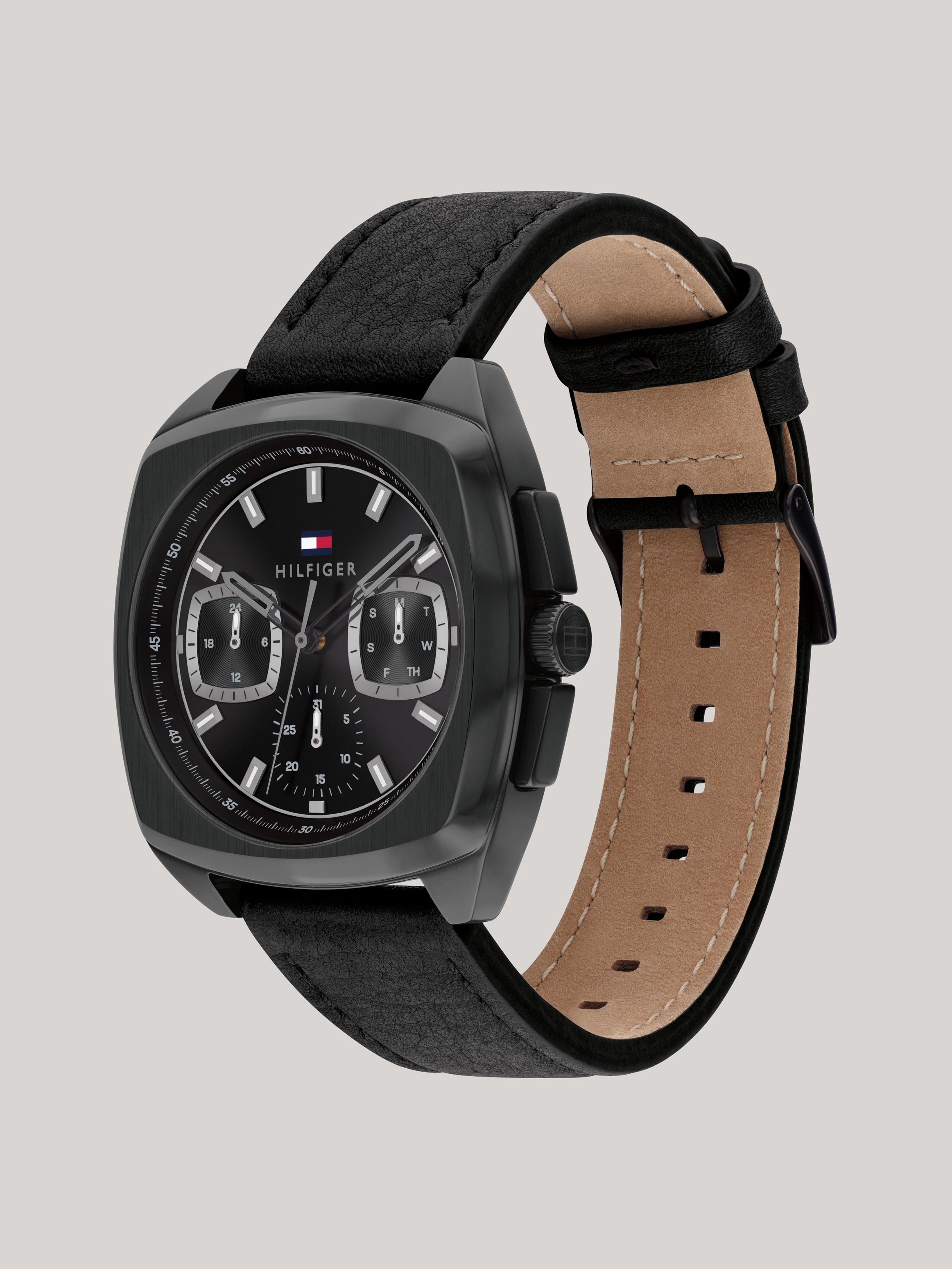 ساعة بقرص أسود وسوار جلدي بحجم   MD   إضافة إلى حقيبتك.