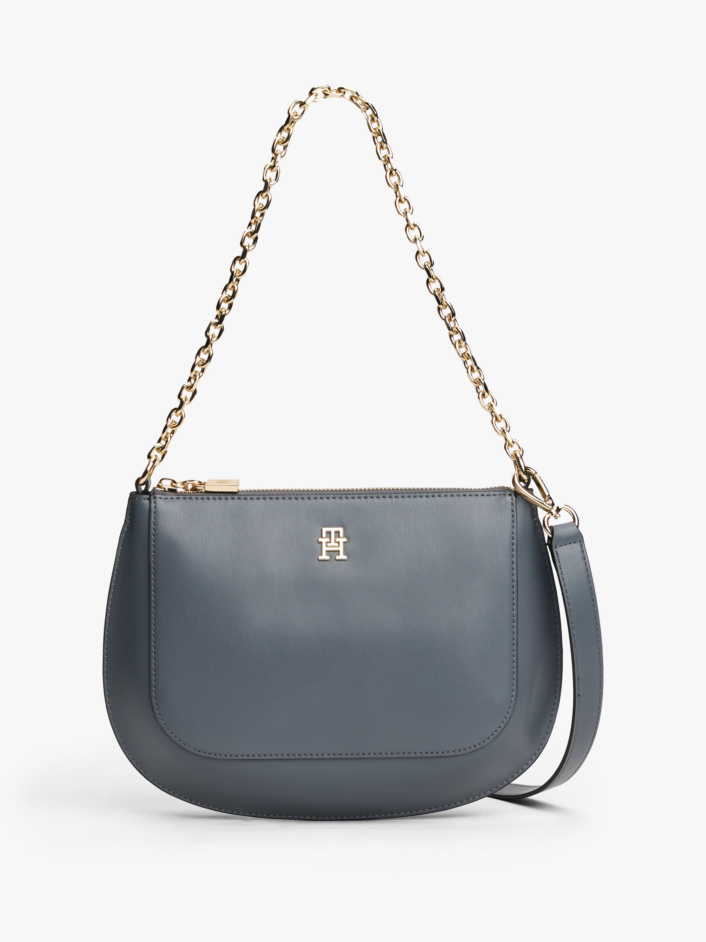 حقيبة كتف يمكنك تعديلها حسب أسلوبك اليومي، سواء بالحزام الانسيابي لإطلالة منسقة أو السلسلة المعدنية لإضافة لمسة من الفخامة. أبرز التفاصيل - لمسة ناعمة - إغلاق بسحاب - حزام كتف بسلسلة - حزام كروس قابل للإزالة - حجرة رئيسية واحدة - جيب داخلي بسحاب - سحّاب معدني بحروف TH - لوحة حروف TH على الأمام - شعار تومي هيلفيغر القصة والمقاس - ‎23.5 × 7 × 21 سم - السعة 2.3 لتر الخامة والعناية - ‎100% بولي يوريثان