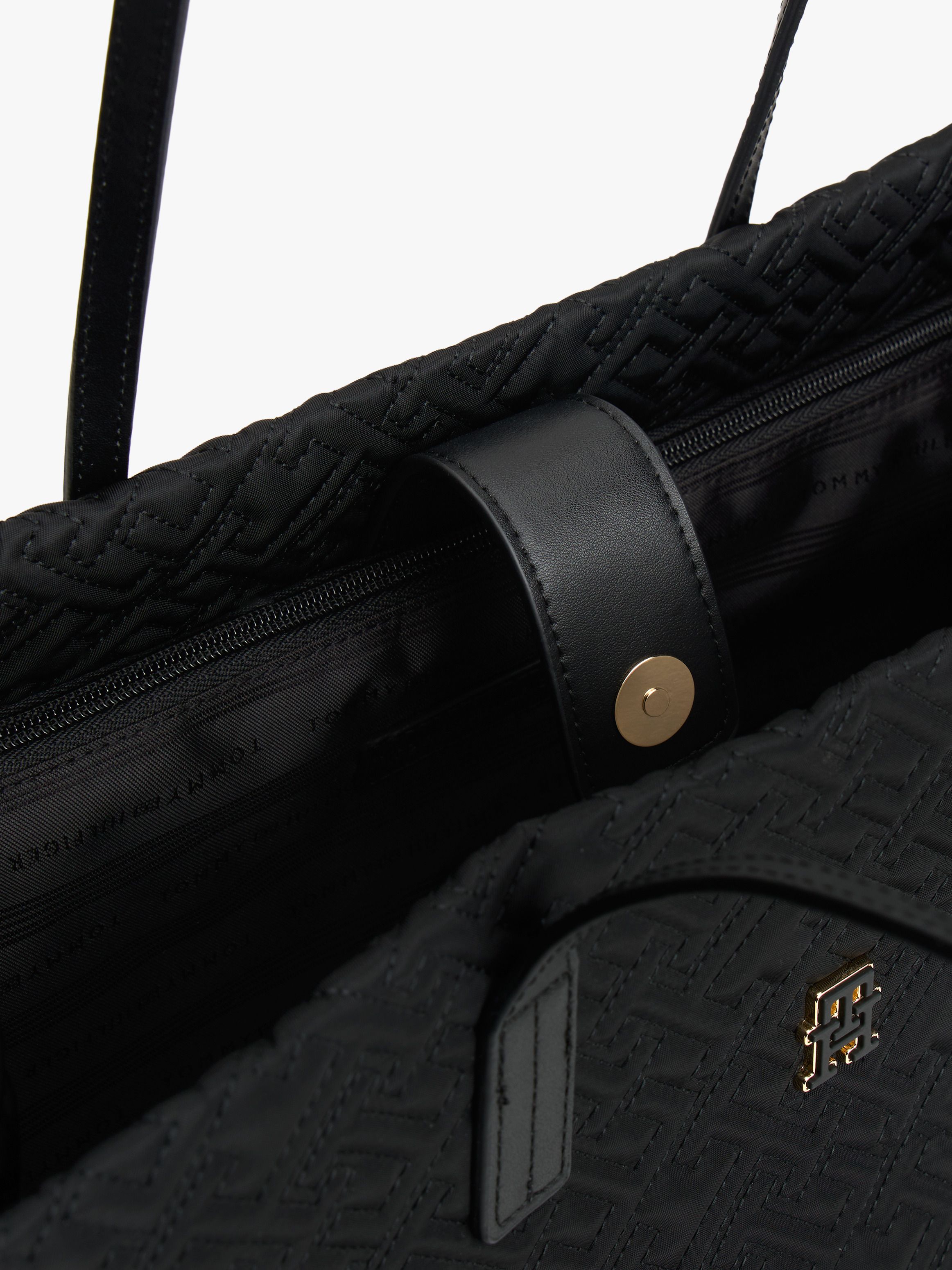 حقيبة يومية واسعة من نايلون لامع بتصميم منقوش بالكامل لحروف TH لِمظهر مميز. أبرز التفاصيل - نايلون لامع - تصميم منقوش بحروف TH بالكامل - إغلاق مغناطيسي - مقبضان علويان - حجرة رئيسية واحدة - جيب داخلي بسحاب - لوحة حروف TH على الأمام - شعار تومي هيلفيغر القصة والمقاس - ‎43 × 17.5 × 31 سم - السعة 23 لتر الخامة والعناية - ‎100% نايلون
