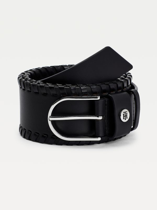 ابرز جمال إطلالتك مع هذا الحزام الجلد الأنيق الذي يتميز بأطراف مضفرة وحروف شعار أنيقة على الحلقة.