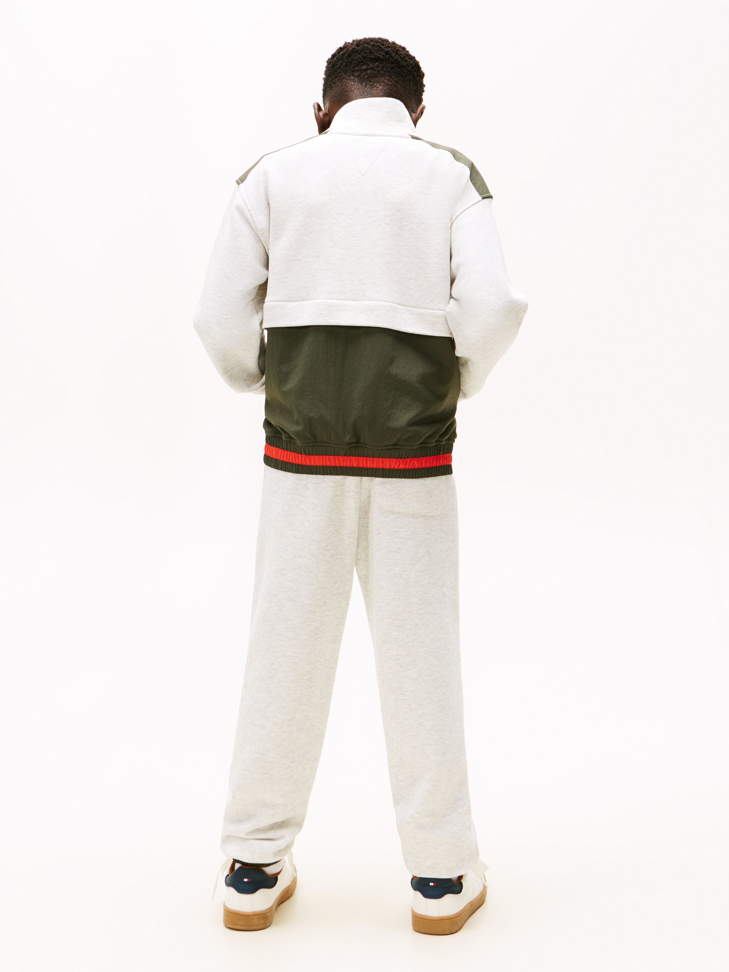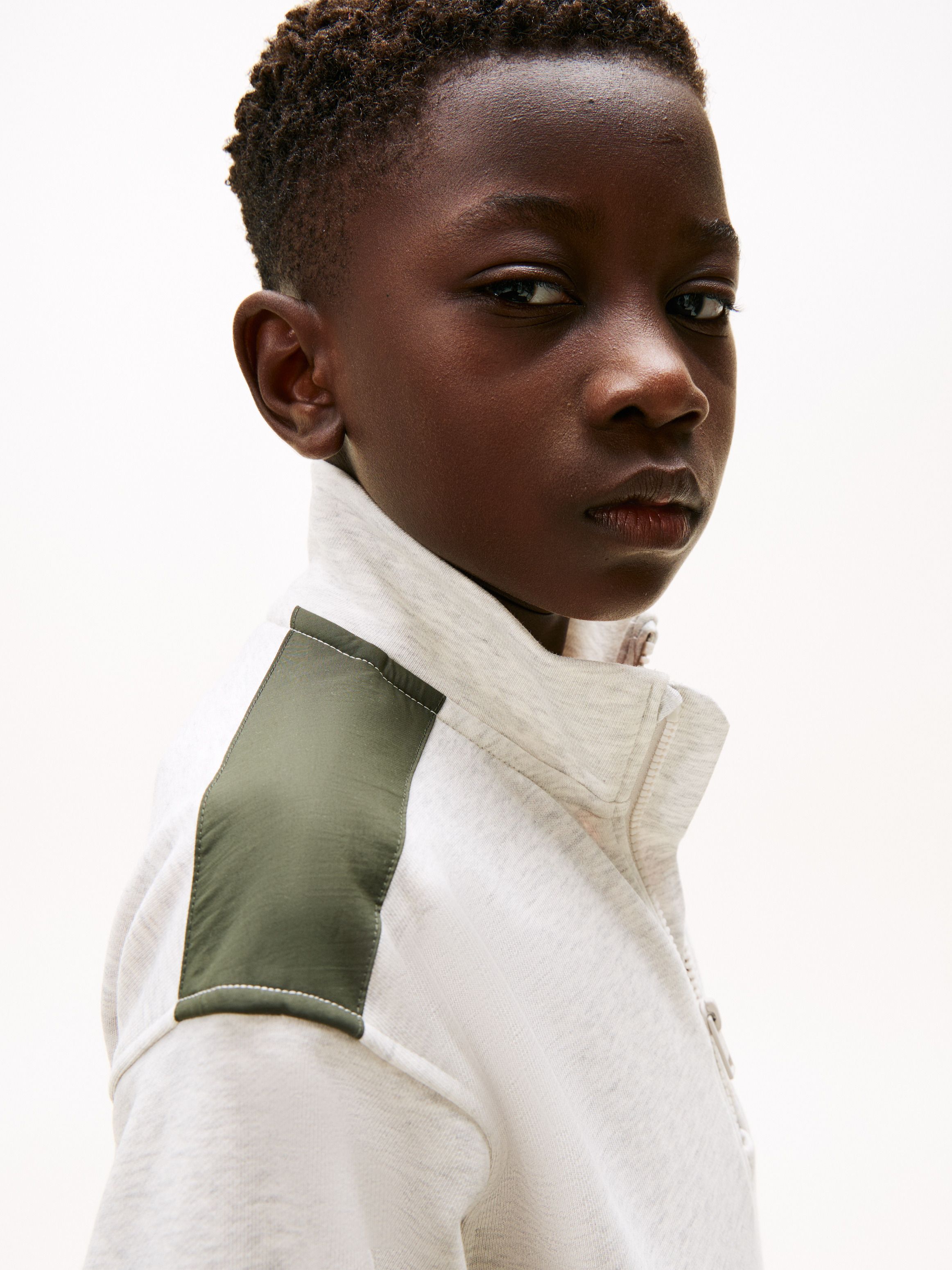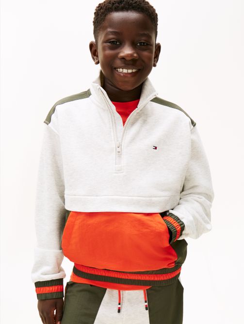 التفاصيل تميّز بإطلالة عصرية جريئة مع بلوفر بألوان متباينة ونصف سحاب، يتميز بتصميم رياضي ولوحات نسيجية متنوعة الملمس تمنحه طابعًا ديناميكيًا ومناسبًا للأيام النشطة والمشاوير اليومية. أبرز التفاصيل - قماش تيري من مزيج القطن - تصميم بلونين متباينين - لوحات نسيجية متباينة الملمس - ياقة عالية - سحاب أمامي بنصف الطول - أساور وحافة سفلية مطاطية مجمعة - جيب كنغر عملي - شريط يحمل توقيع العلامة داخل الياقة - يحمل توقيع Tommy Hilfiger - تطريز علم Tommy Hilfiger على الصدر القصة والمقاس - قصّة عادية - أكتاف منخفضة قليلاً الخامة والعناية - 88% قطن، 12% بوليستر