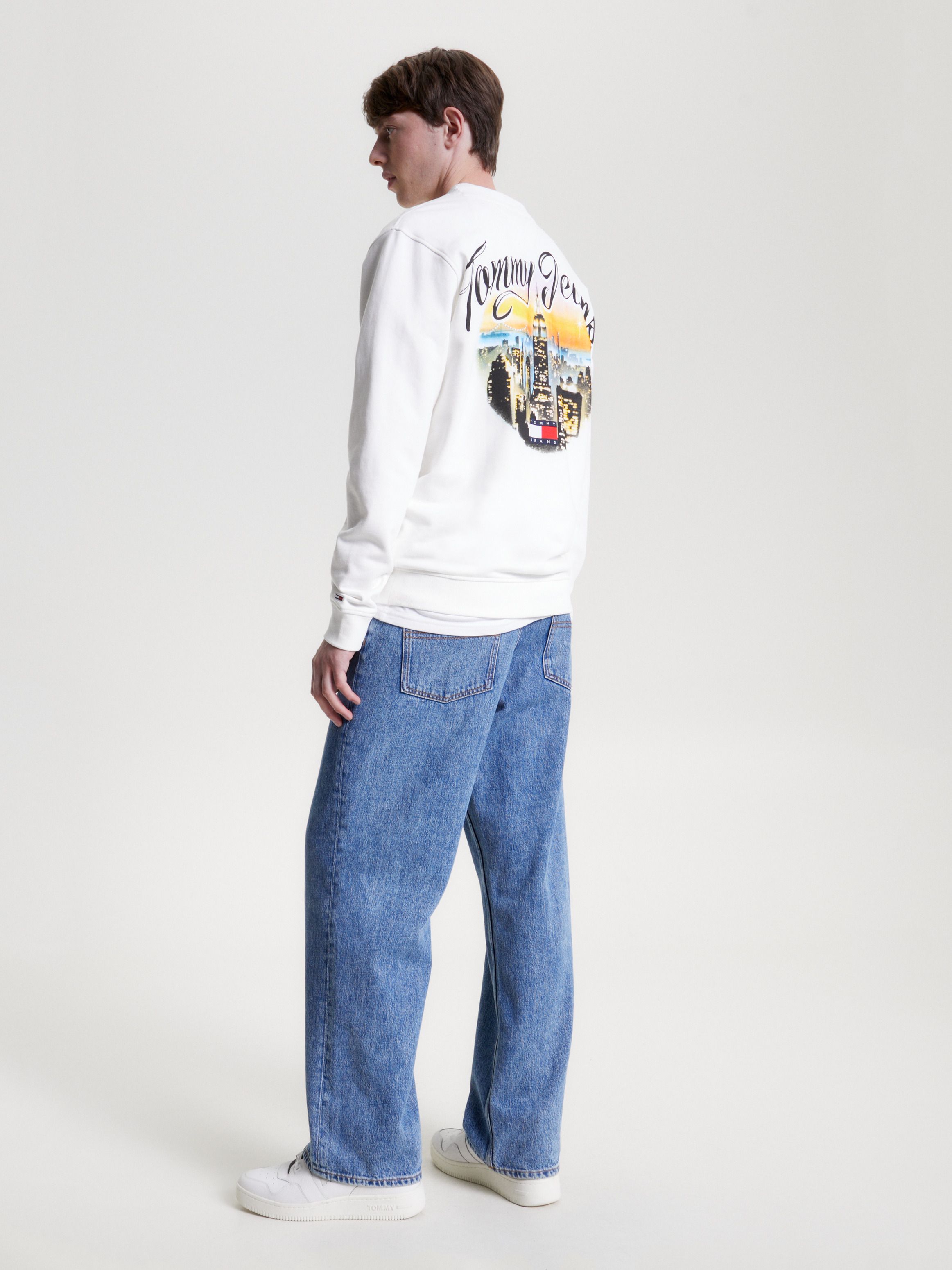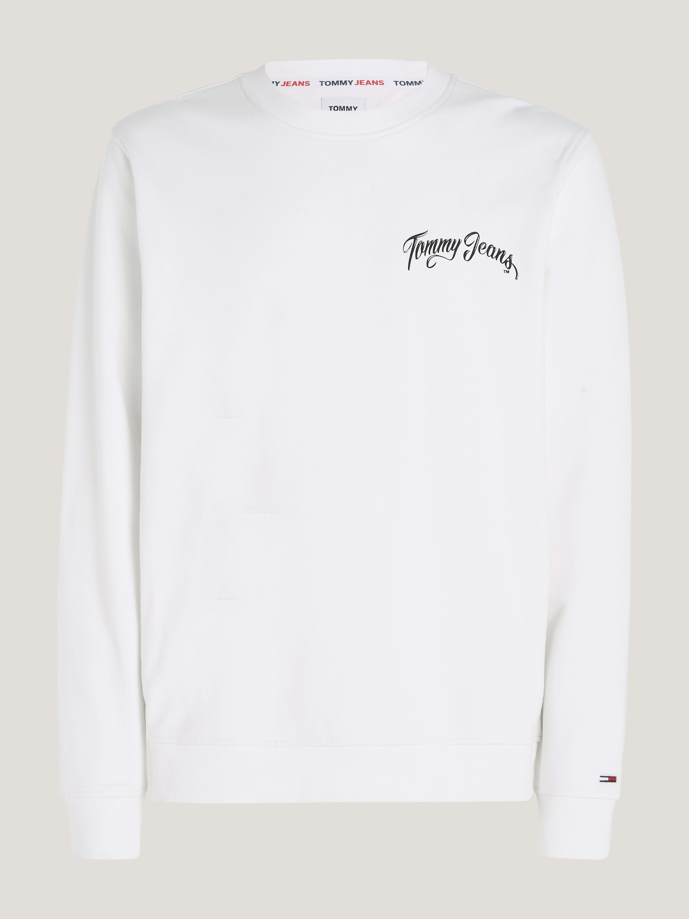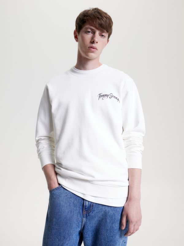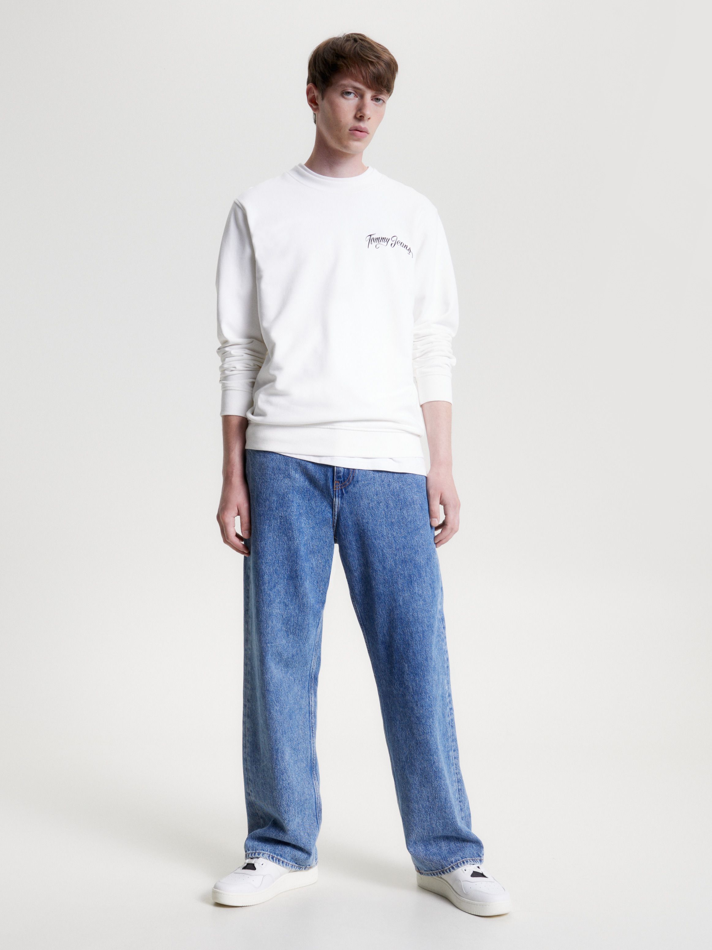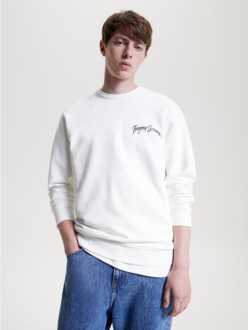 يضيف شعار تومي جينز المستوحى من الطراز القديم على الصدر لمسة أنيقة على هذا السويت شيرت المصنوع من القطن الخالص.