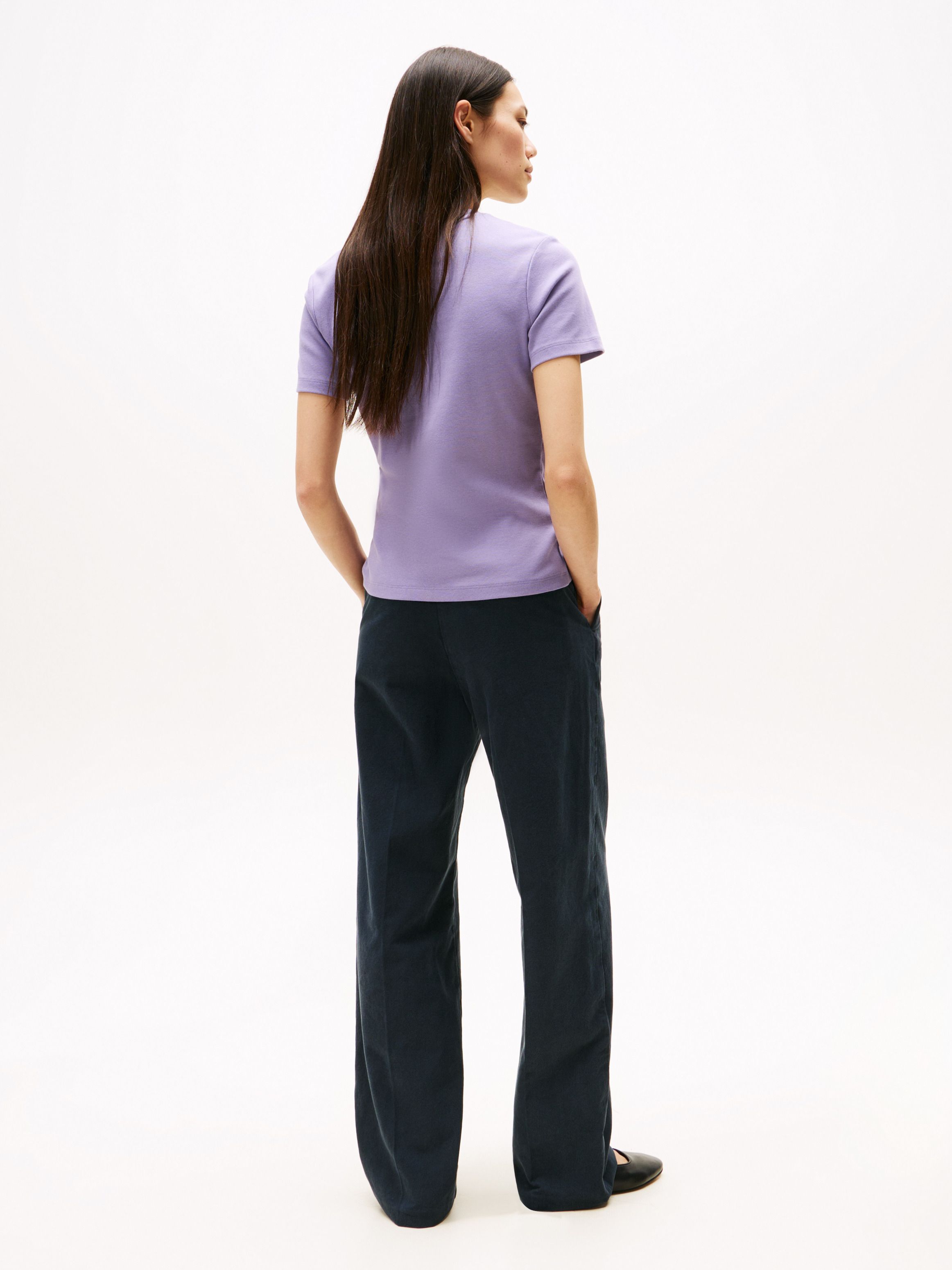 تيشيرت قطني ناعم متعدد الاستخدامات، مصنوع بقصة ضيقة جذابة من قماش مضلع بلمسة نهائية حريرية فاخرة.