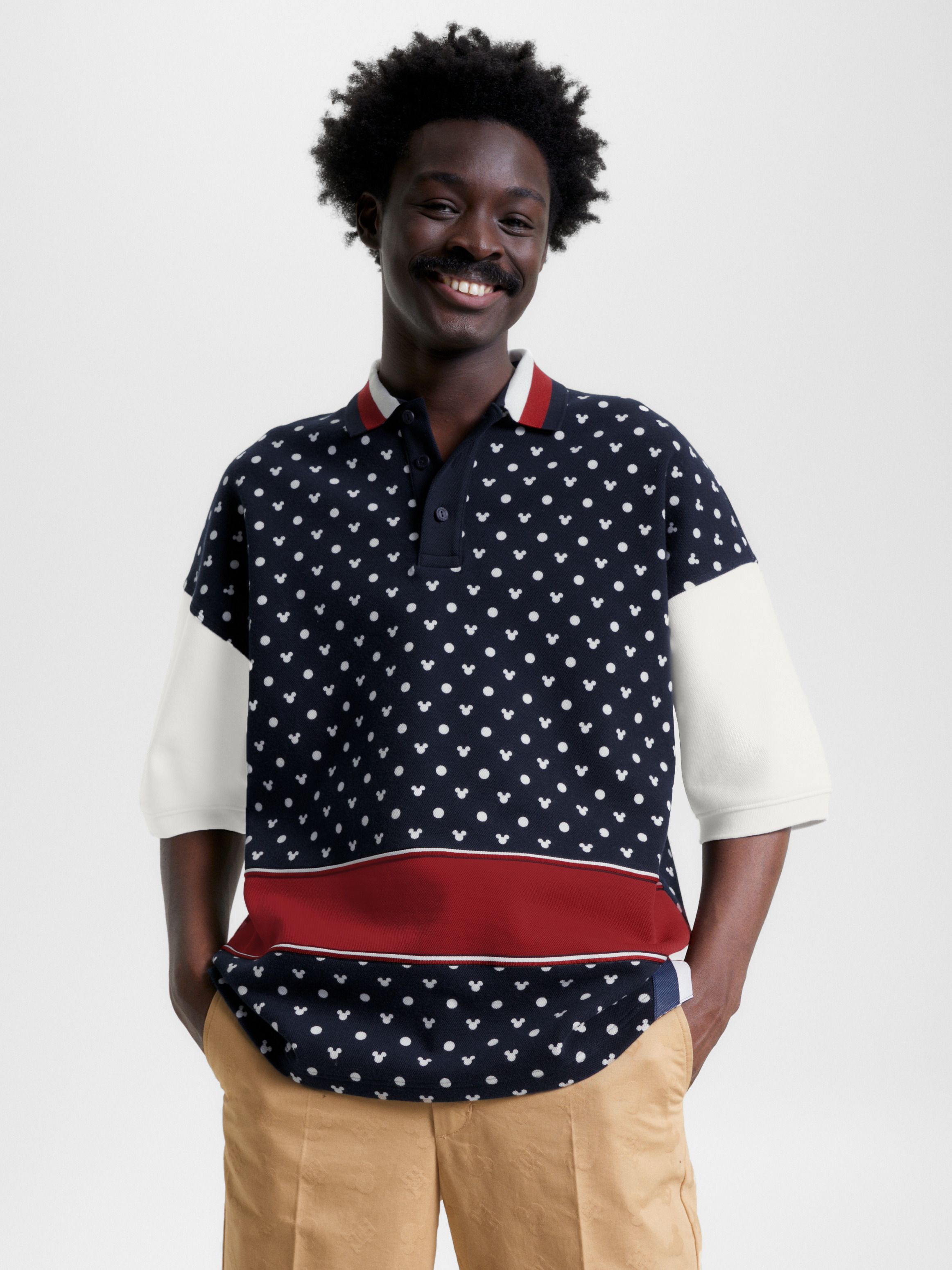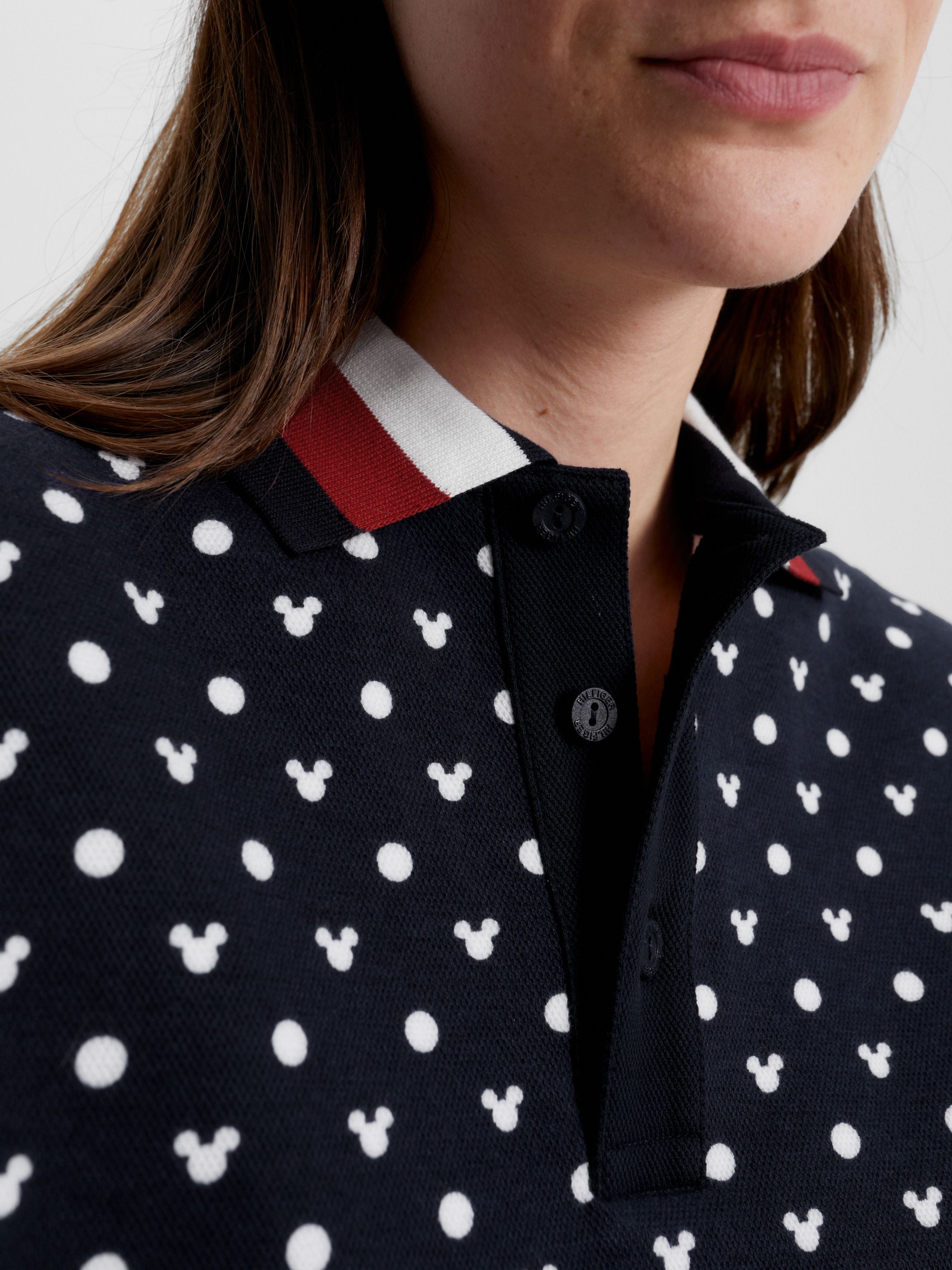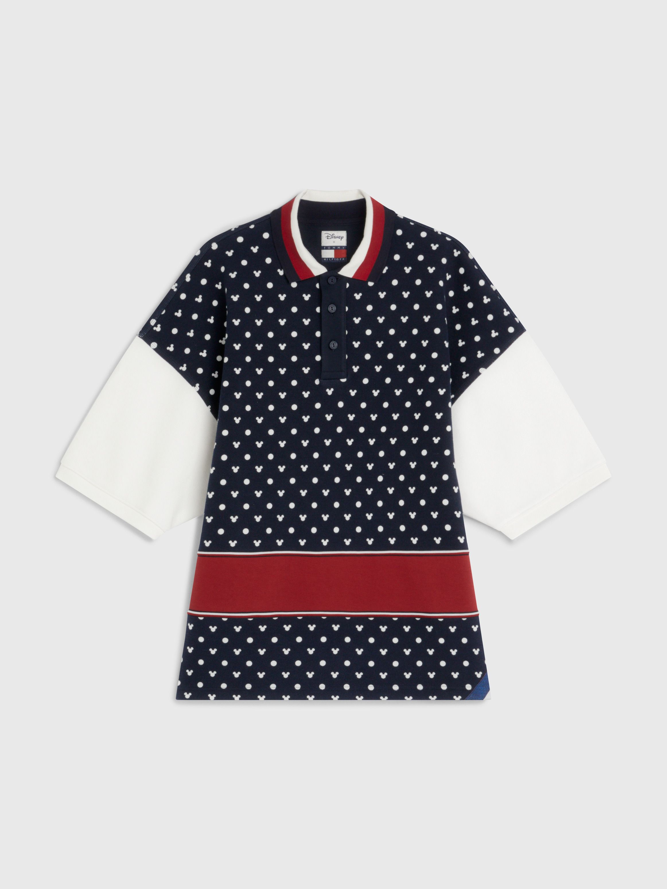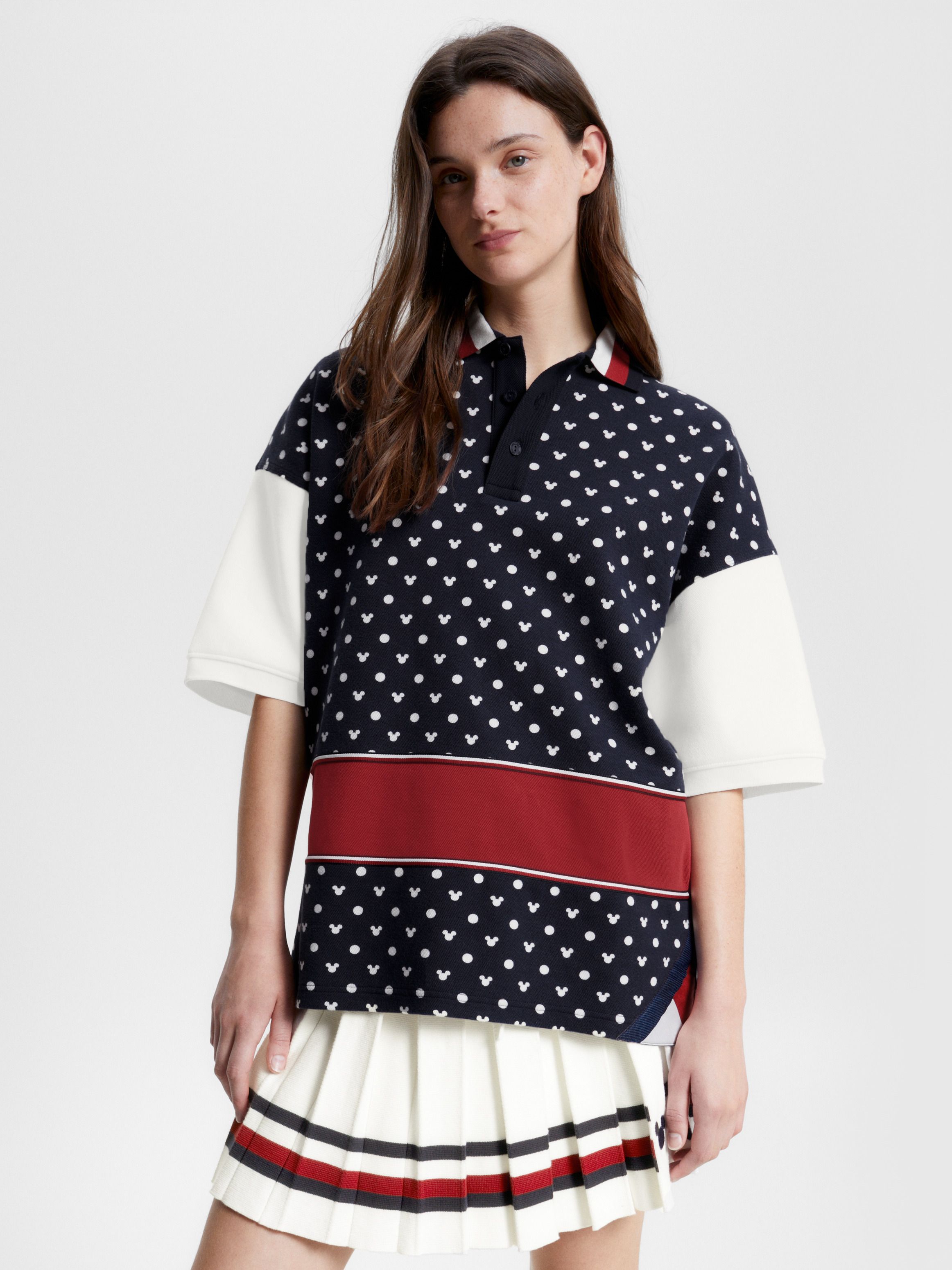 • قطن مطاطي • صُنع من مبادرة القطن الأفضل • مزين بطبعة نقاط بولكا وطبعة ميكي من ديزني • ياقة بولو • فتحة بثلاثة أزرار • علم تومي هيلفيغر على الحافة • علامة تومي x ديزني التجارية