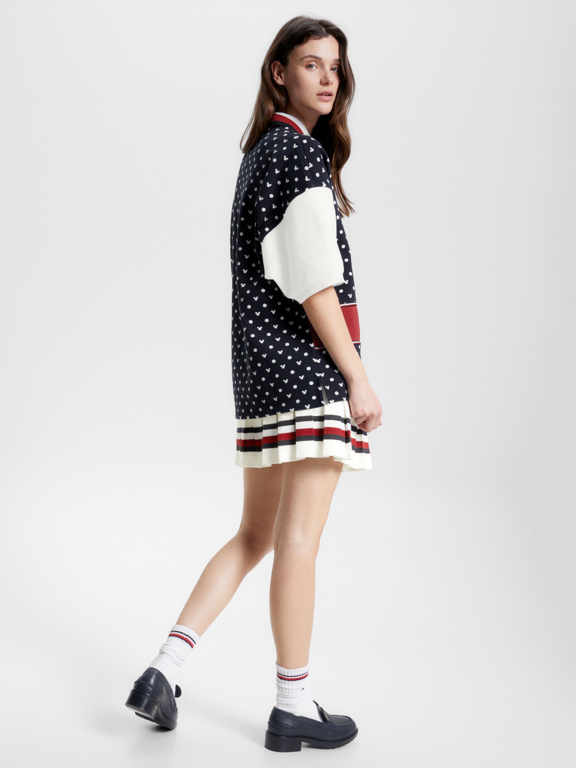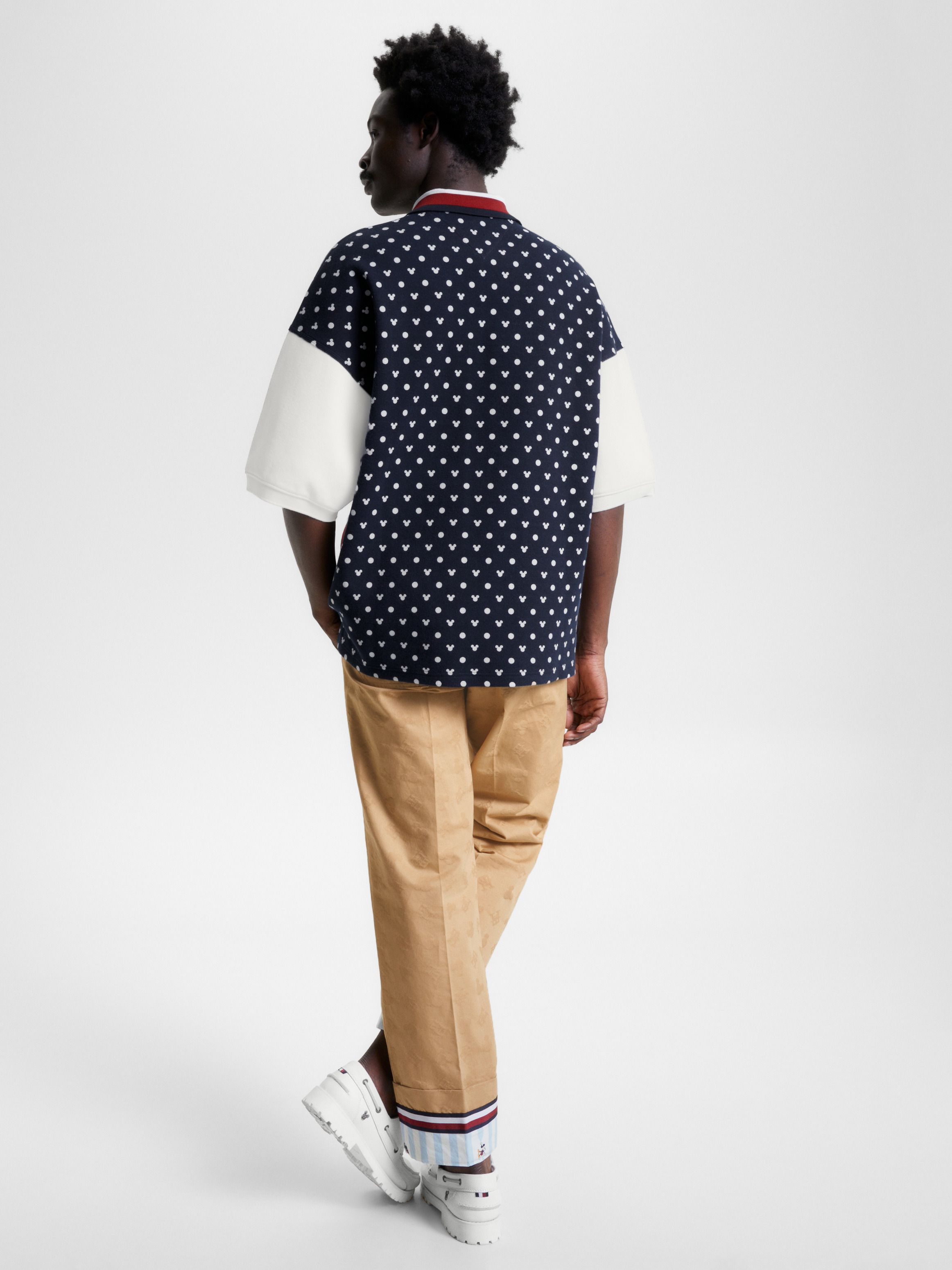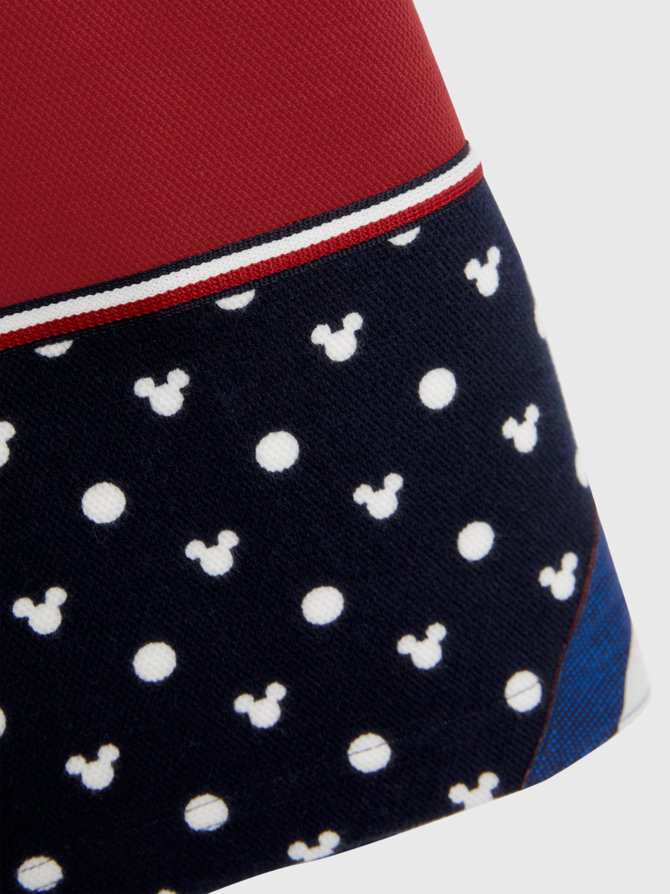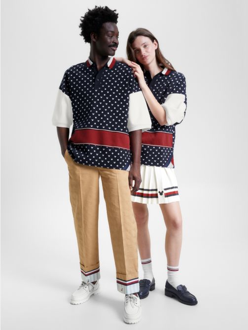 • قطن مطاطي • صُنع من مبادرة القطن الأفضل • مزين بطبعة نقاط بولكا وطبعة ميكي من ديزني • ياقة بولو • فتحة بثلاثة أزرار • علم تومي هيلفيغر على الحافة • علامة تومي x ديزني التجارية