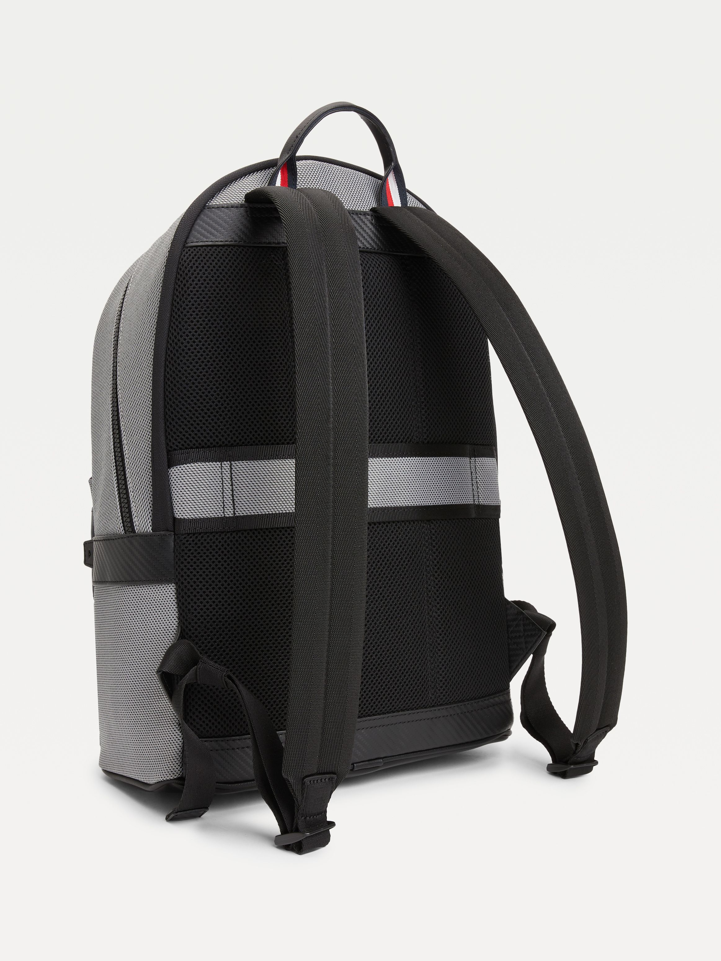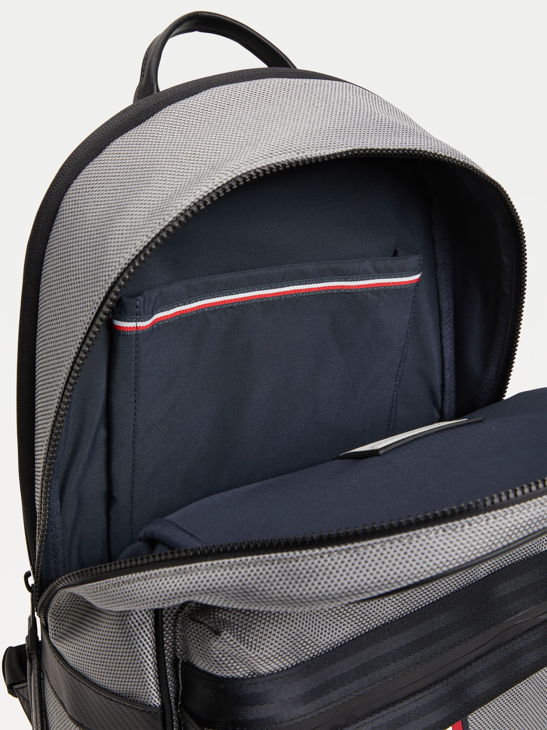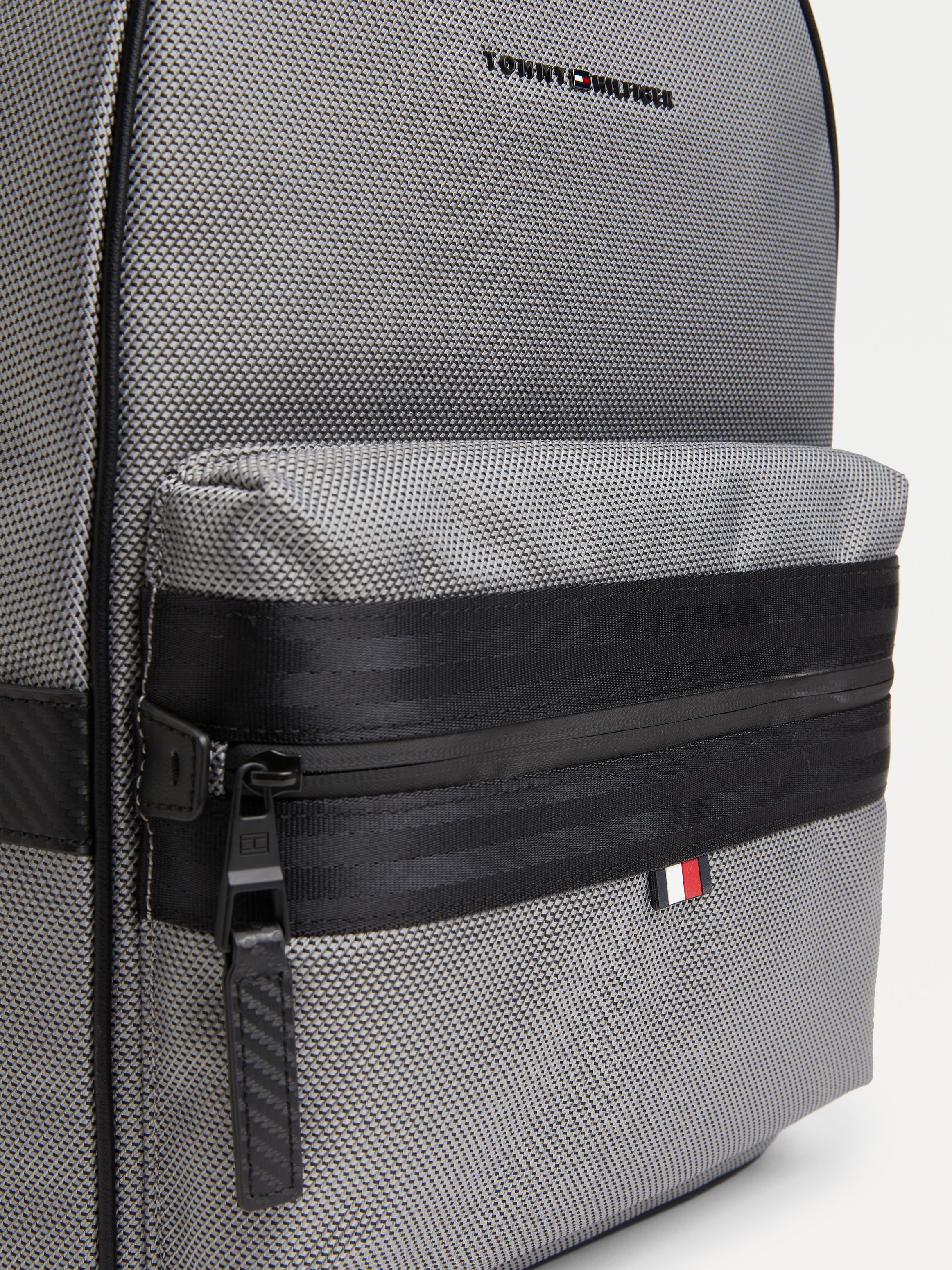 يضيف الشعار المعدني وتفاصيل الحزام الملونة لمسات رقيقة إلى حقيبة الظهر الفاخرة التي تتميز أيضًا ببطانة ناعمة وتصميم راقي.