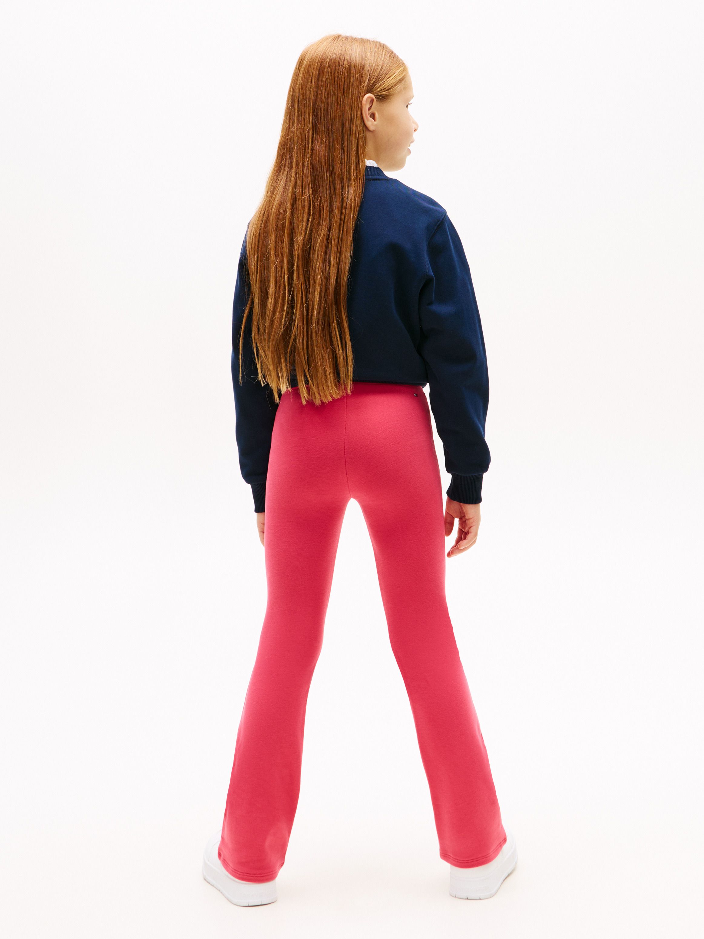 • بنطلون ليغنز ضيق بساق واسعة من الأسفل وشعار لامع