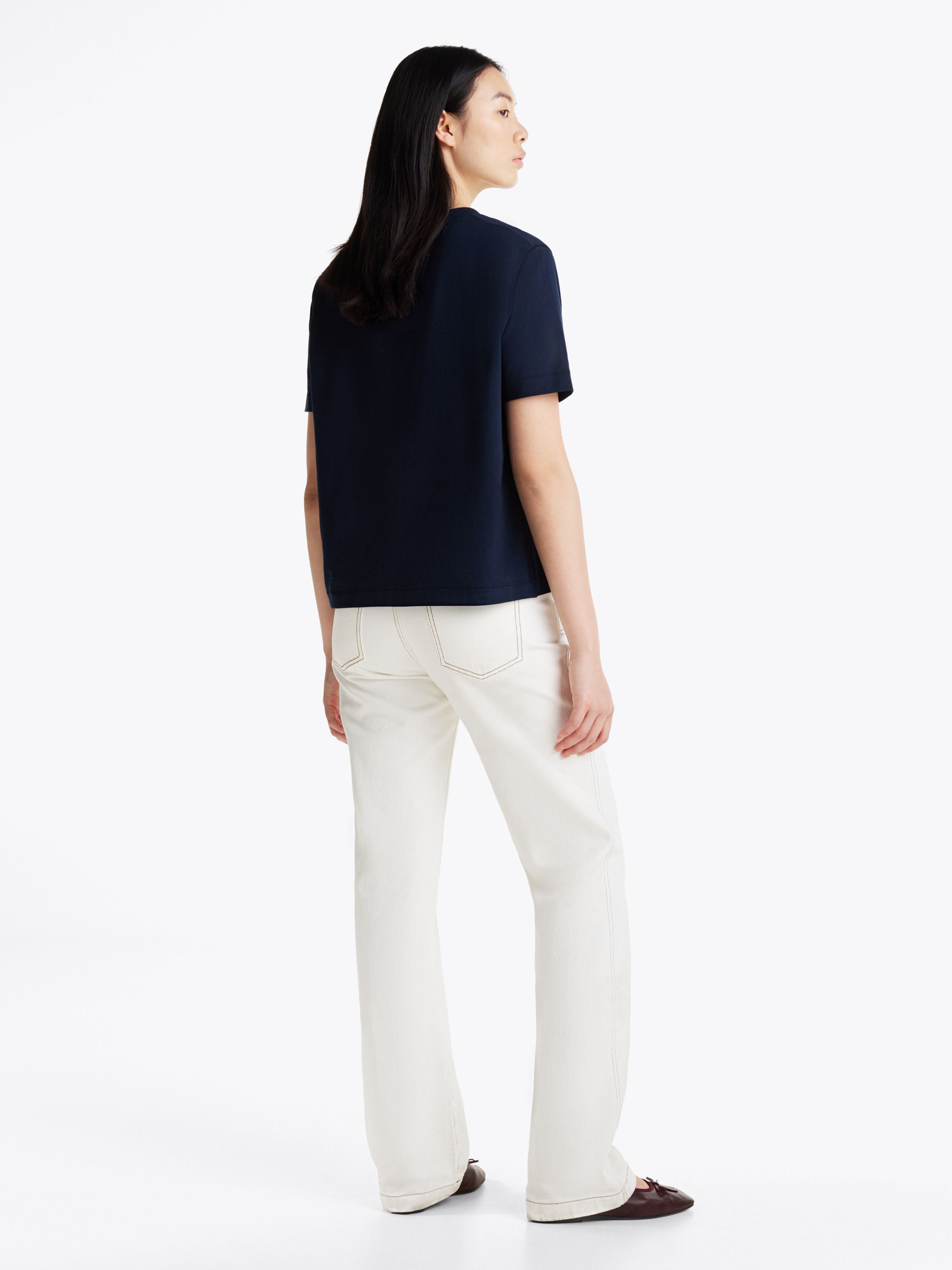 عند الحديث عن أساسيات خزانة الملابس، فإن هذا القميص القطني يلبي جميع المتطلبات بفضل تصميمه المريح والأكتاف المنخفضة.
