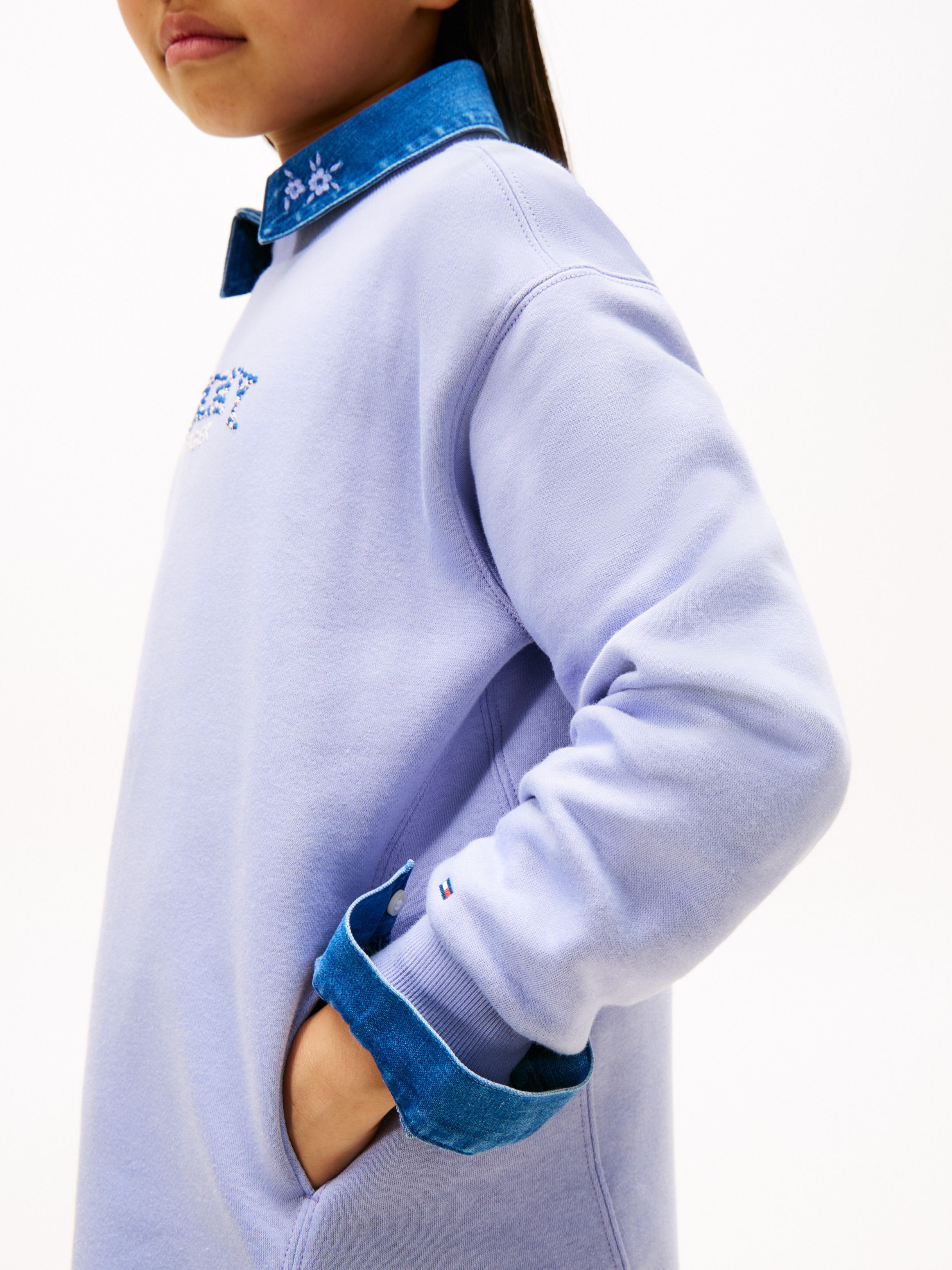 فستان مريح بقصّة واسعة بتصميم سويت شيرت رياضي، مزود بجيوب جانبية ولمسة زخرفية مزهرة على الشعار لإطلالة أنثوية وعصرية. أبرز التفاصيل • صوف قطني ممزوج وممشّط • ياقة دائرية • ياقة وأساور ريب محاكة • جيبان منزلقان عند الخصر • شعار Tommy Hilfiger المزهّر على الصدر • علامة Tommy Hilfiger • تطريز علم Tommy Hilfiger على الكم القصة والمقاس • قصّة واسعة • كتف منخفض قليلاً • تصميم فستان سويت شيرت الخامة والعناية • 80% قطن، 20% بوليستر