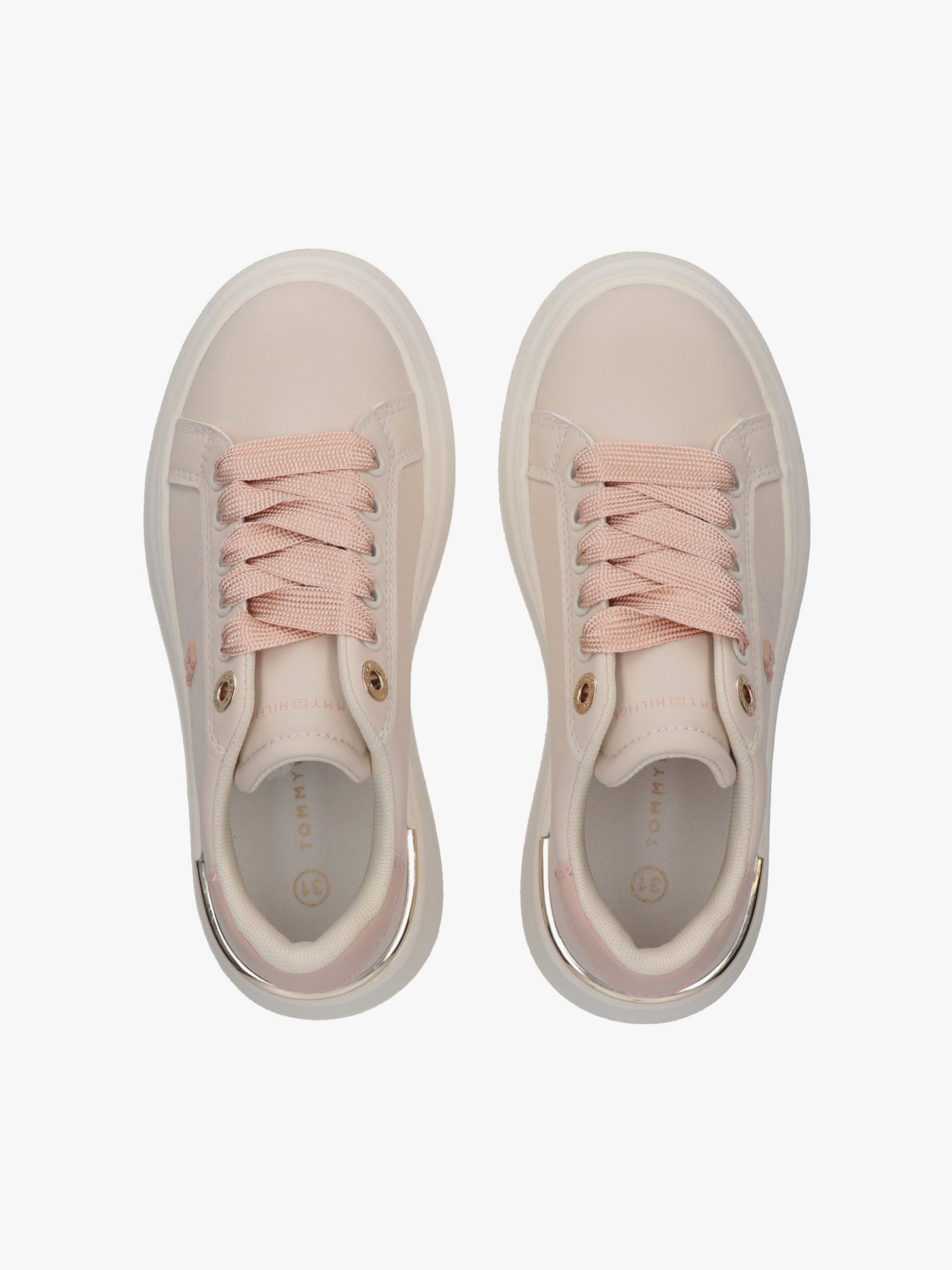 أحذية رياضية من تومي هيلفيغر بإحساس أنثوي معاصر، تتميز بنعل منصة يمنح ارتفاعاً ولمسة جريئة. يبرز الجزء العلوي بتفصيلة المونوغرام الأيقونية، بينما يضمن الإغلاق بالأربطة ملاءمة ثابتة. مثالية لرفع مستوى الإطلالات الكاجوال.