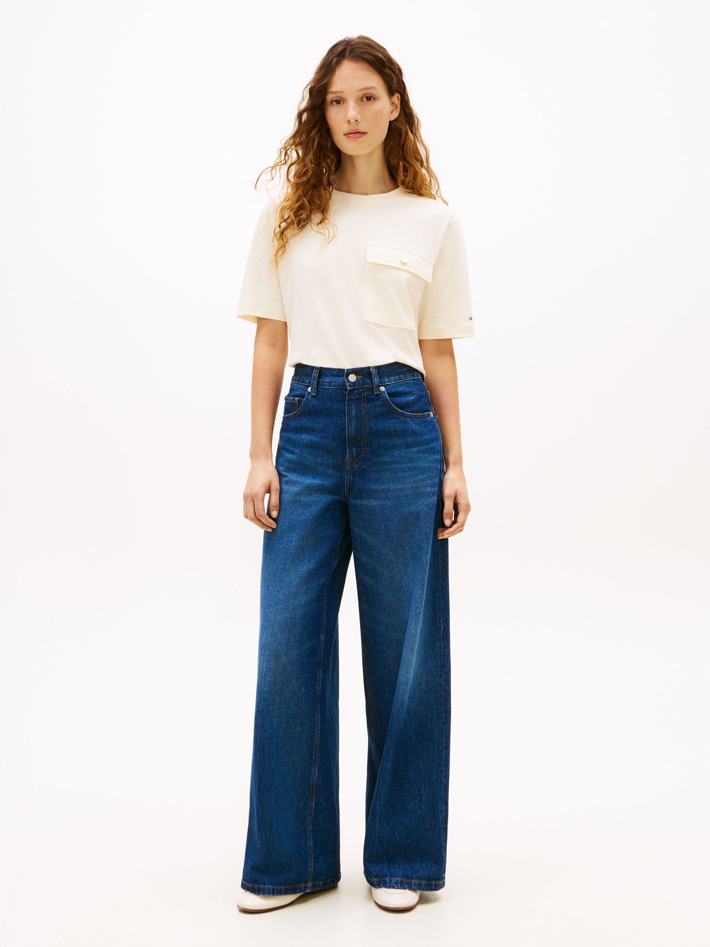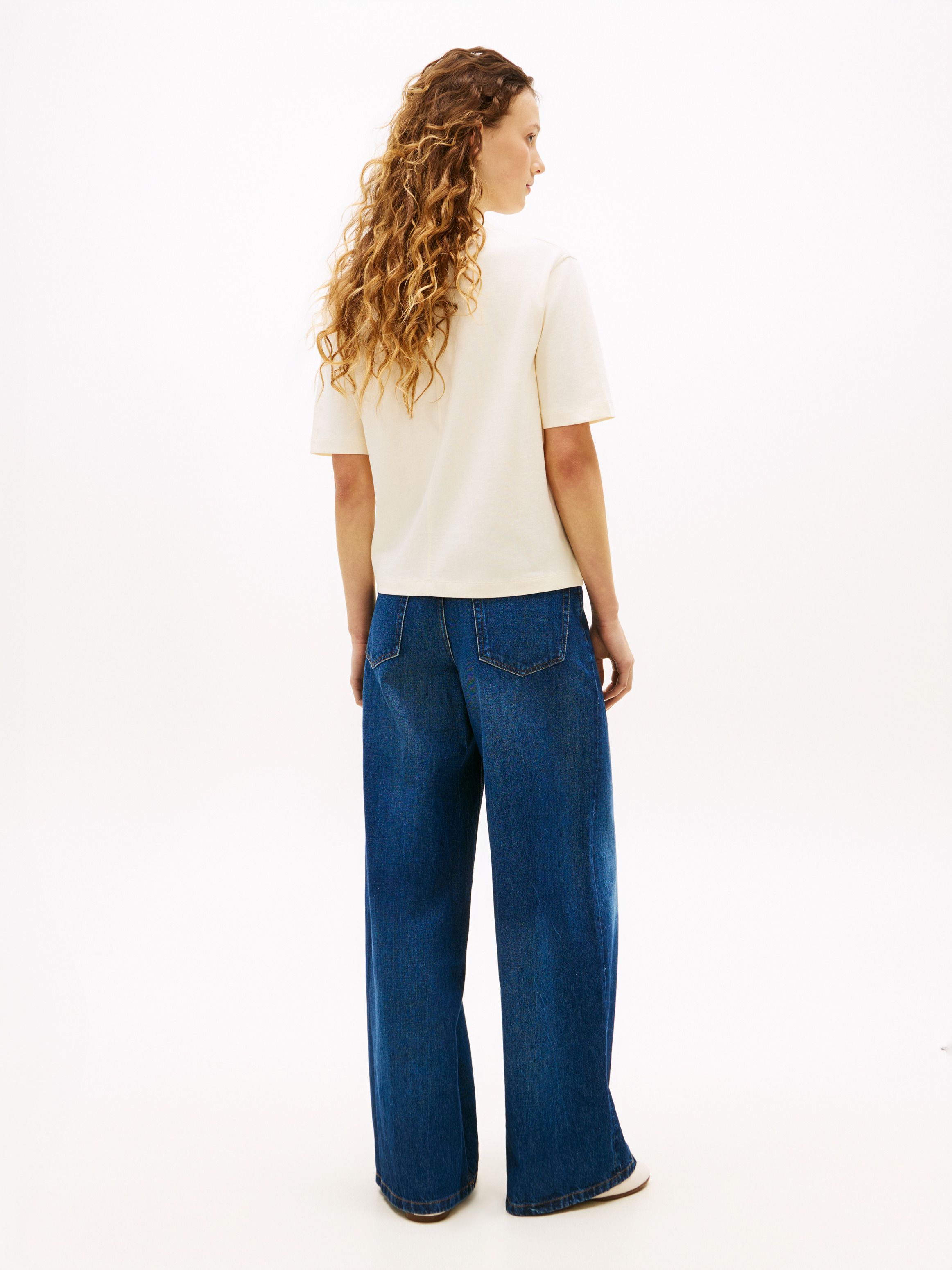 يرتقي هذا التيشيرت بقصته المريحة بفضل زر ذهبي اللون يحمل العلامة على الجيب، مع علم معدني أنيق على الكم. أبرز التفاصيل جيرسي قطني خالص بوزن ثقيل زر ذهبي اللون على الجيب ياقة دائرية جيب صدر بغطاء شريط مميّز داخل فتحة الرقبة علامة تومي هيلفيغر علم تومي هيلفيغر بارز على الزر علم معدني من تومي هيلفيغر على الكم القصة والمقاس قصة مريحة الخامة والعناية 100% قطن