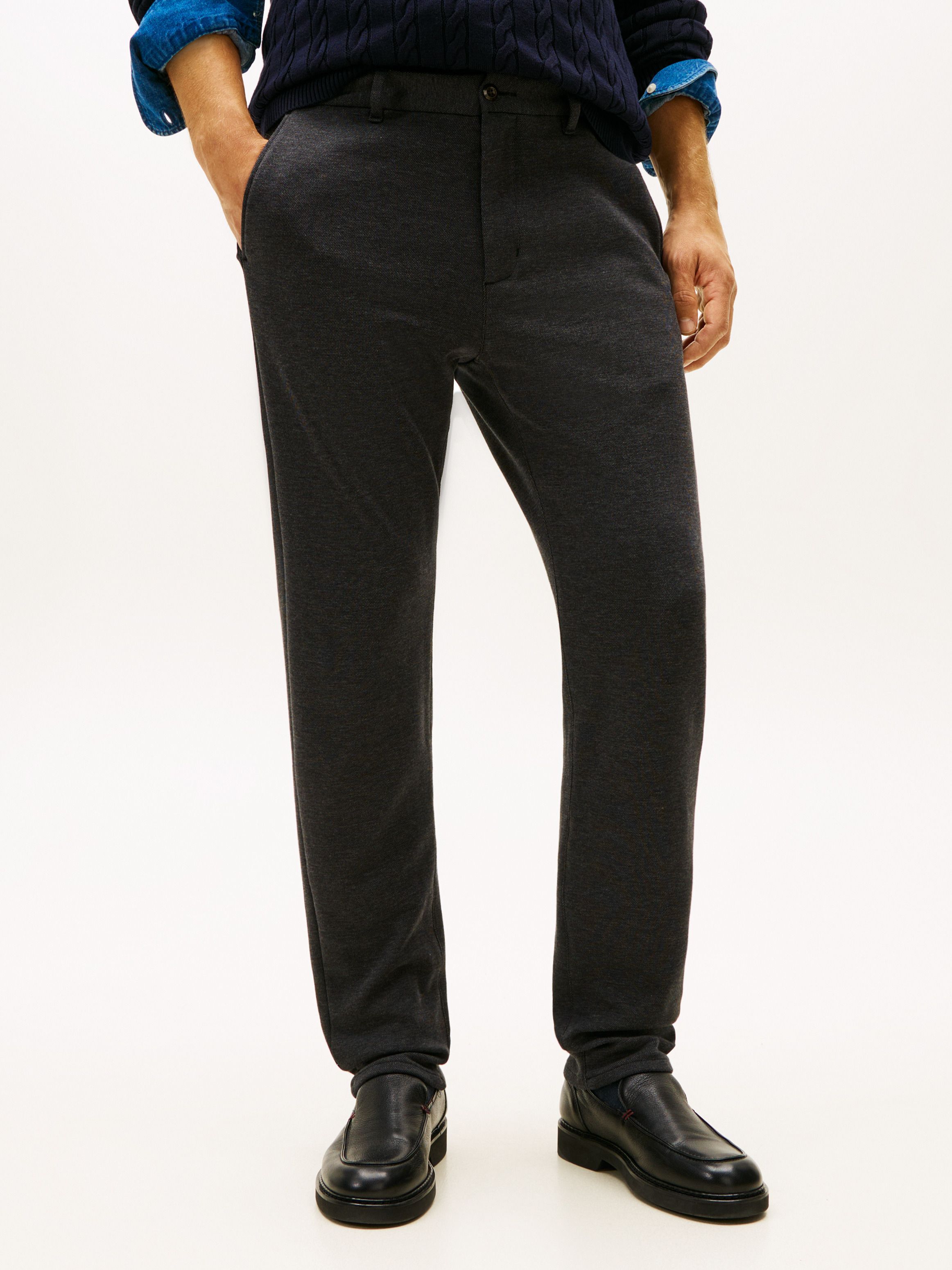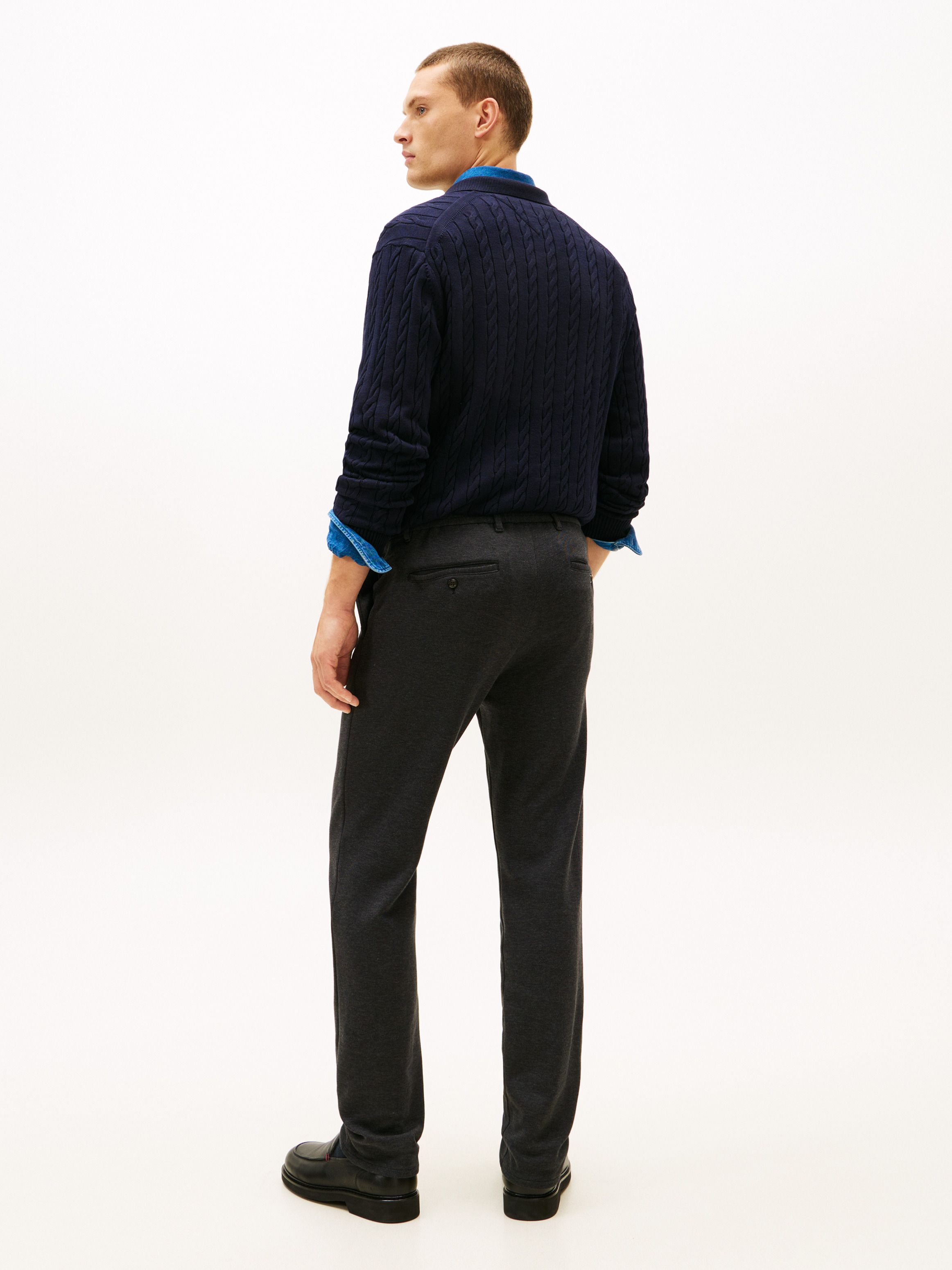 يأتي هذا البنطلون بتصميم كلاسيكي بساق مدببة، مصنوع من بيكيه القطن النقي بحياكة إنترلوك تمنحه لمسة أنيقة ومتقنة. أبرز التفاصيل • بيكيه قطن نقي • حياكة إنترلوك • مصبوغ بالخيوط • سحاب مع إغلاق بزر • جيبان جانبيان بفتحة مائلة • جيبان خلفيان بفتحة رفيعة مع أزرار • شريط مميز على الخصر • علامة Tommy Hilfiger • تطريز علم Tommy Hilfiger على الخلف القصة والمقاس • ساق مدببة • العارض بطول 1.86 م ويرتدي مقاس ‎32/34‎ الخامة والعناية • ‎100%‎ قطن