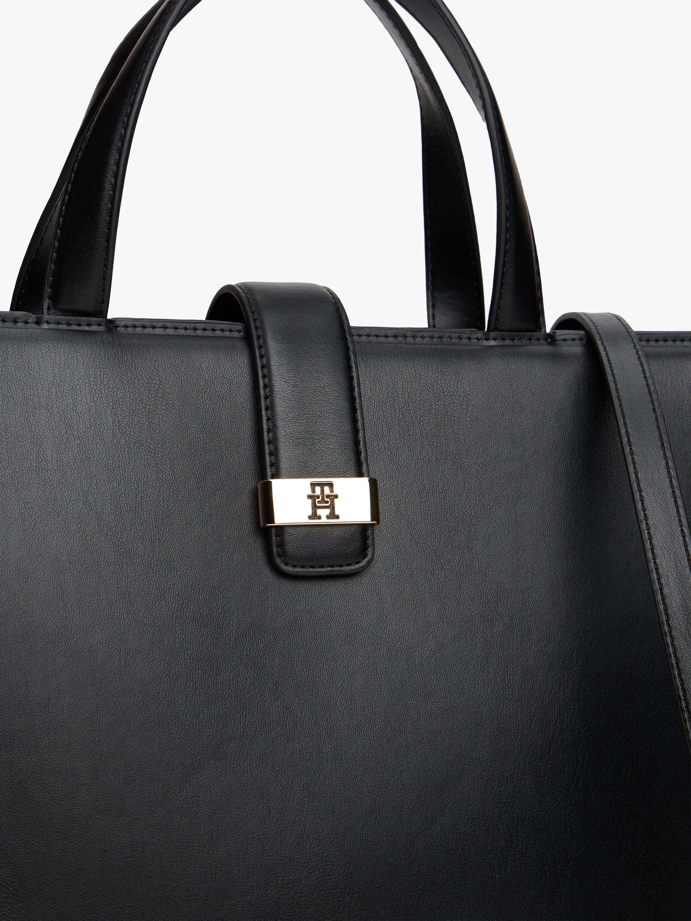 ارتقِ بإكسسواراتك اليومية مع هذه الحقيبة الساتشل ذات اللمسة الناعمة والتصميم الأنيق، والمزينة بلوحة حروف الشعار TH على الأمام لإطلالة توقيعية مميزة. أبرز التفاصيل • نسيج أملس • قطع معدنية بلون ذهبي على الجانب • إغلاق مغناطيسي • مقبضان علويان • حزام كروس بدي قابل للتعديل • حجرتان رئيسيتان • جيبان داخليان بسحّاب • لوحة حروف الشعار TH على الإغلاق • شعار تومي هيلفيغر منقوش على المعدن • شعار تومي هيلفيغر القصة والمقاس • ‎36.5 × 13.5 × 27 سم • السعة: ‎8‎ لترات الخامة والعناية • ‎100% بولي يوريثان