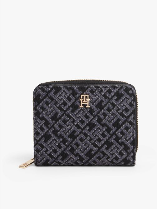 جدّدي أساسياتك اليومية مع هذه المحفظة العملية والأنيقة التي تفتح بالكامل بسحّاب، والمزينة بنقشة جاكار شعار TH الكلاسيكية التي تضفي لمسة فريدة من نوعها.