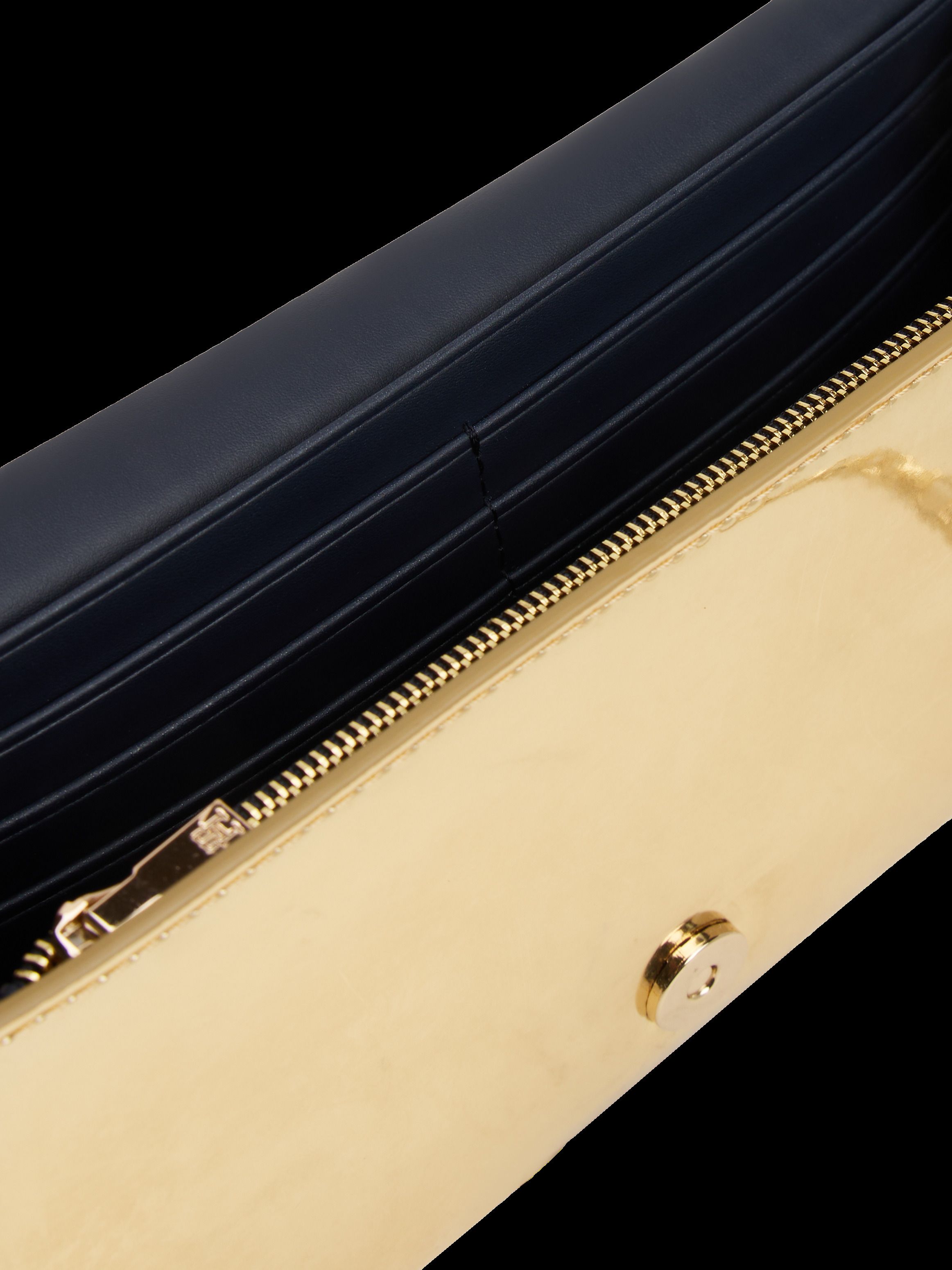 التفاصيل حافظي على إطلالة متألقة دون التضحية بالعملية مع هذه الحقيبة الصغيرة المصممة بلمسة معدنية لامعة، وتأتي بتفاصيل أنيقة مثل شعار TH المعدني وسلسلة كتف قابلة للإخفاء، لتناسب السهرات والمناسبات الخاصة. أبرز التفاصيل - لمسة نهائية معدنية - إغلاق بمغناطيس وغطاء أمامي - سلسلة كتف معدنية قابلة للإخفاء - حجرة رئيسية واحدة - جيب داخلي بسحاب - عدة فتحات داخلية للبطاقات - شعار TH معدني على الجهة الأمامية - تحمل توقيع Tommy Hilfiger القصة والمقاس - الأبعاد: 21 × 3.5 × 12.5 سم الخامة والعناية - 100% بولي يوريثان
