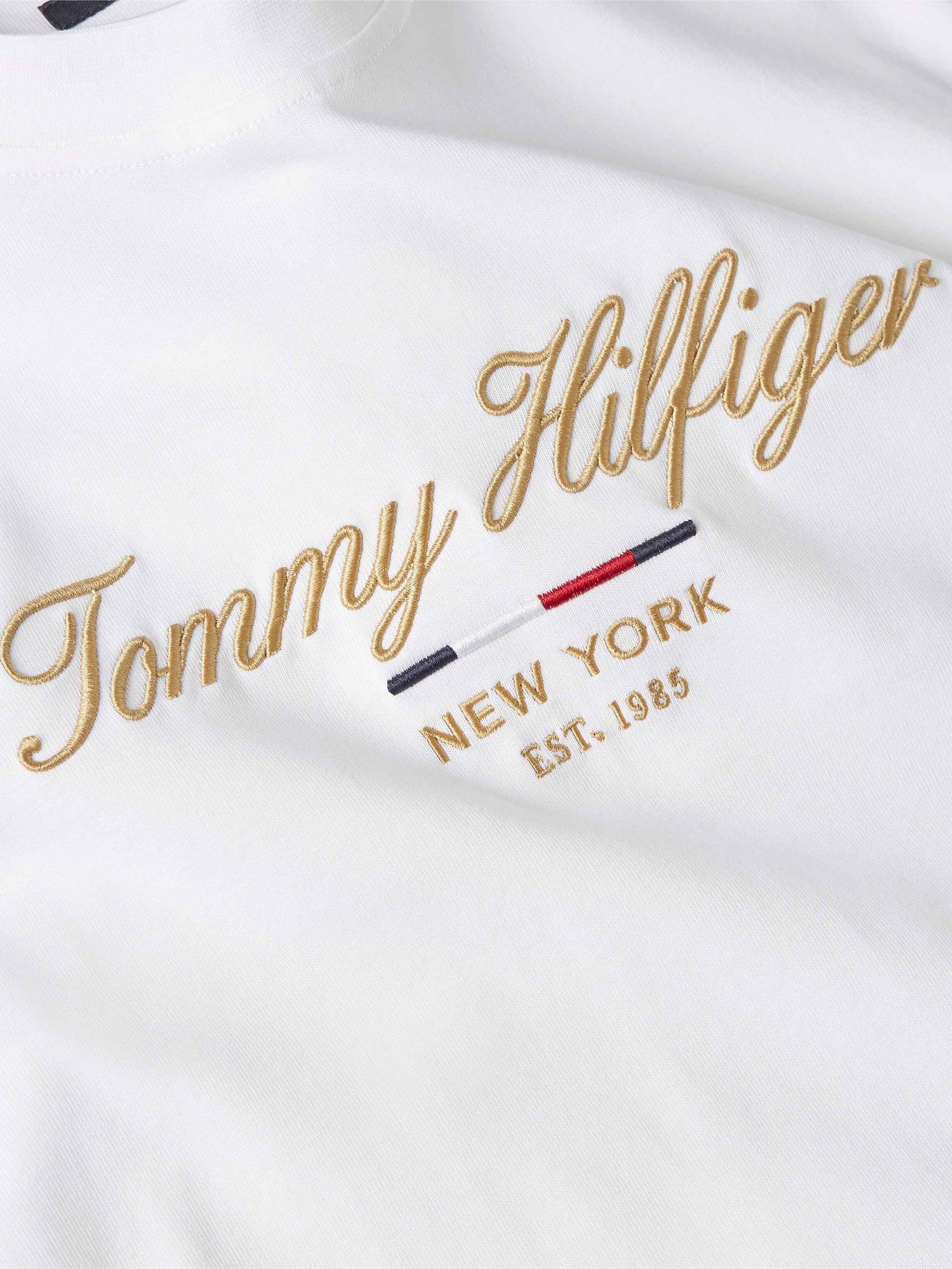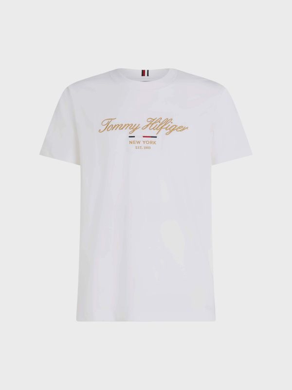 • تيشيرت بأيقونة سكربت مطرزة وبياقة دائرية