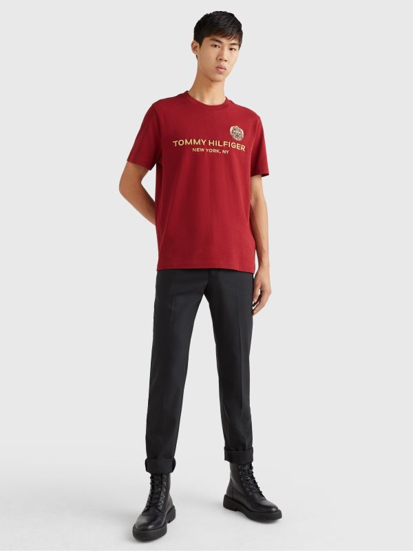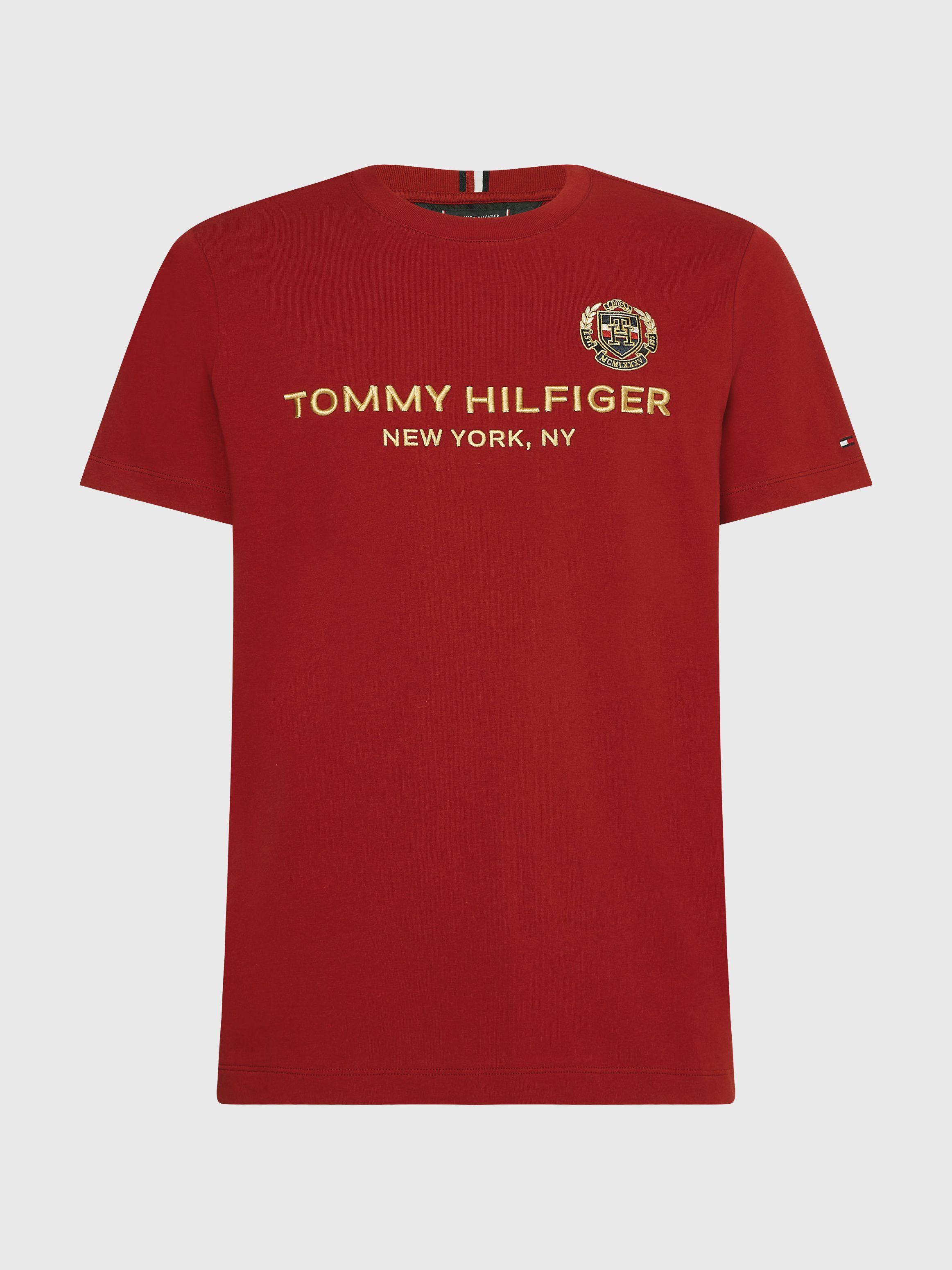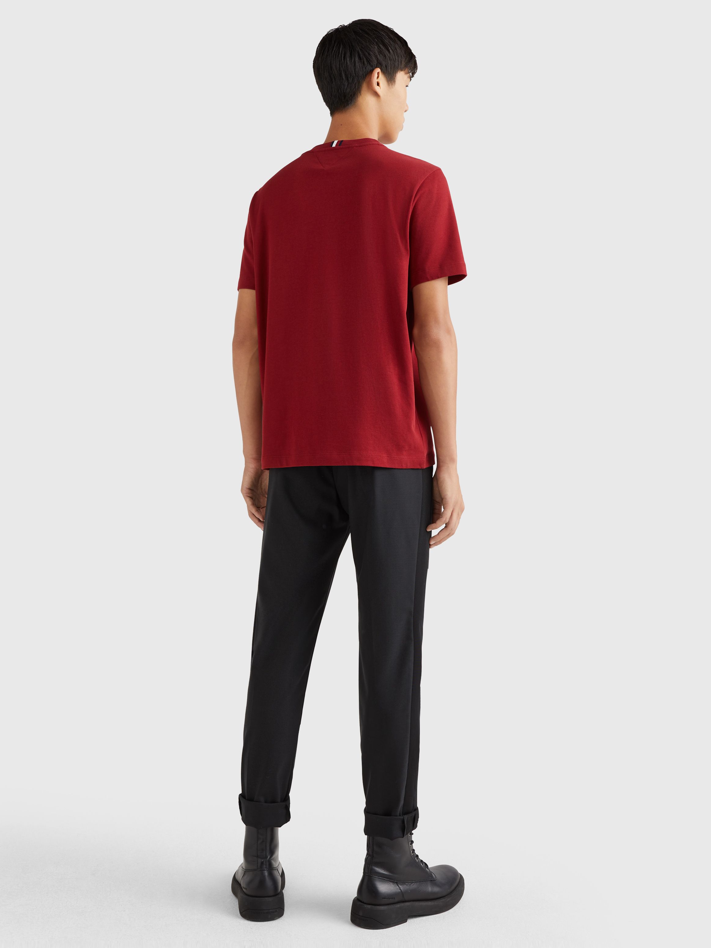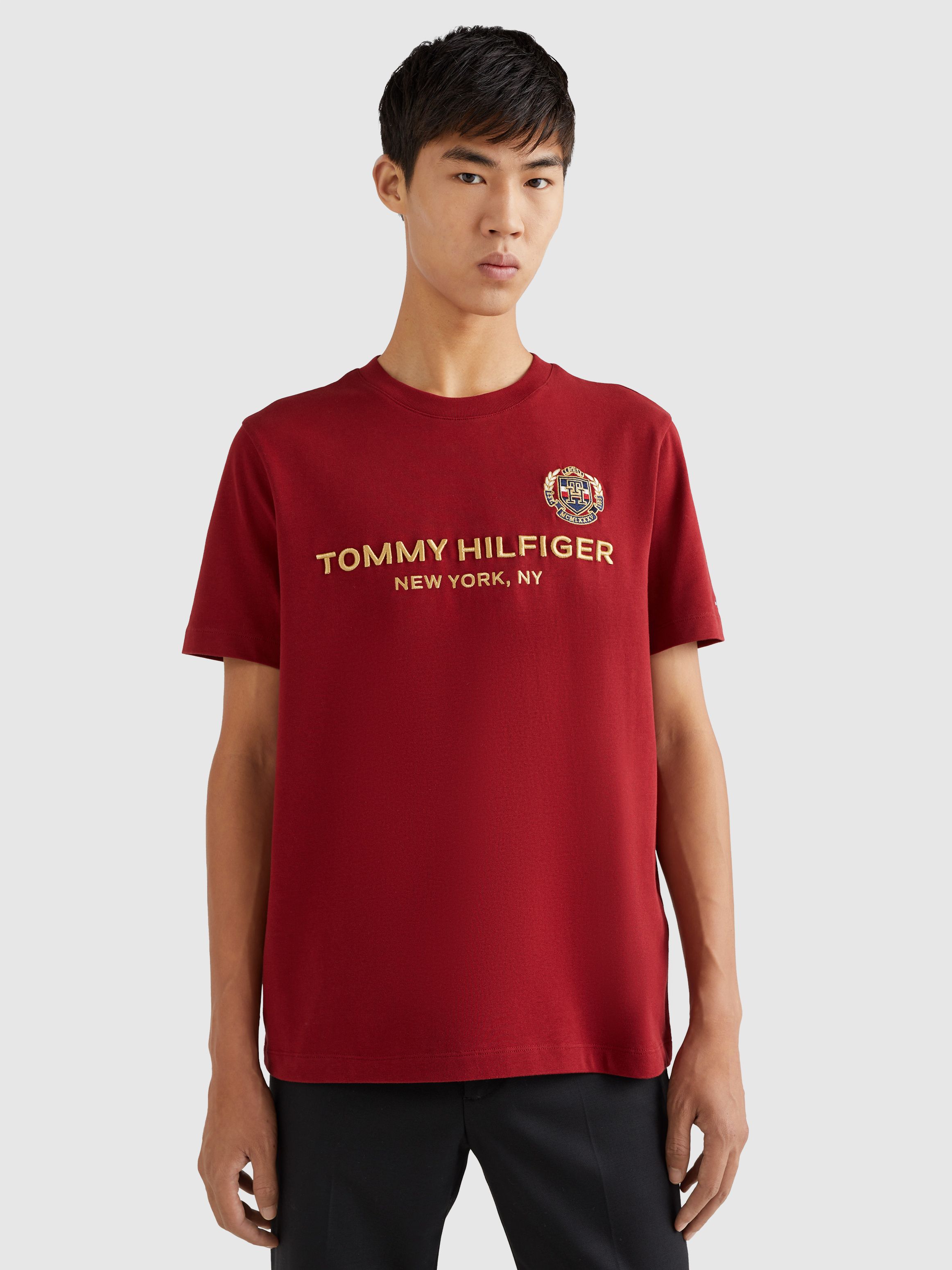 • قطن خالص • ياقة دائرية • تطريز شعار تومي هيلفيغر على الصدر • تطريز شعار تومي هيلفيغر على الصدر • علامة تومي هيلفيغر التجارية • تطريز علم تومي هيلفيغر على الكم