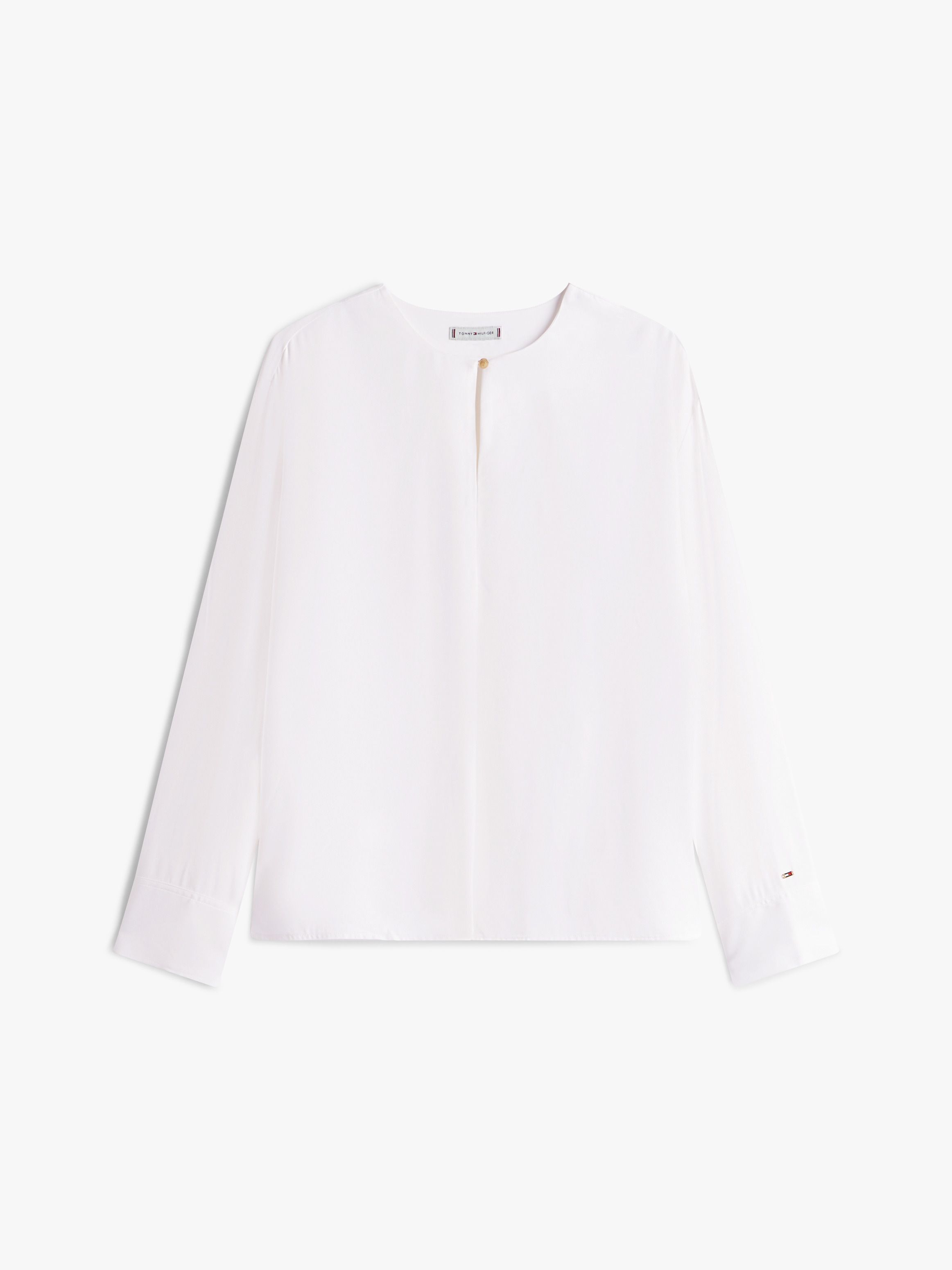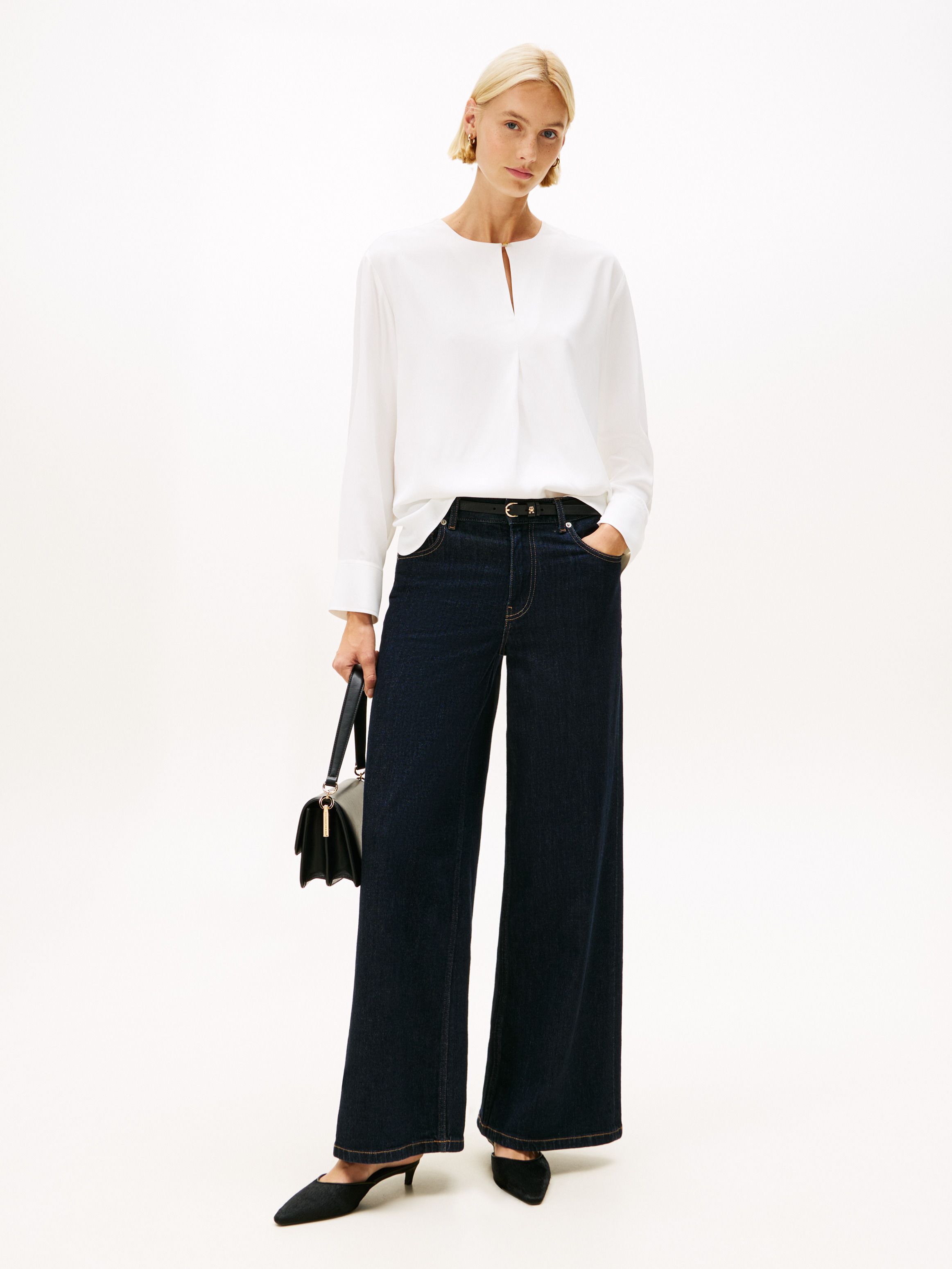 أسلوب أنيق لخزانة عملك، تأتي هذه البلوزة الواسعة بتفصيل ثني حاد من الأمام وفتحة زر أمامية لإضافة لمسة راقية. أبرز التفاصيل • تويل الفيسكوز • ياقة دائرية عالية • فتحة أمامية مغلقة بزر • ثنية أمامية • أكمام بأزرار مفردة • شعار تومي هيلفيغر • علم تومي هيلفيغر منقوش على الأزرار • علم معدني لتومي هيلفيغر على الكم القصة والمقاس • قصة مريحة • أكتاف منخفضة قليلاً • طول العارضة 1.76 متر وترتدي مقاس 8 الخامة والعناية • 100% فيسكوز