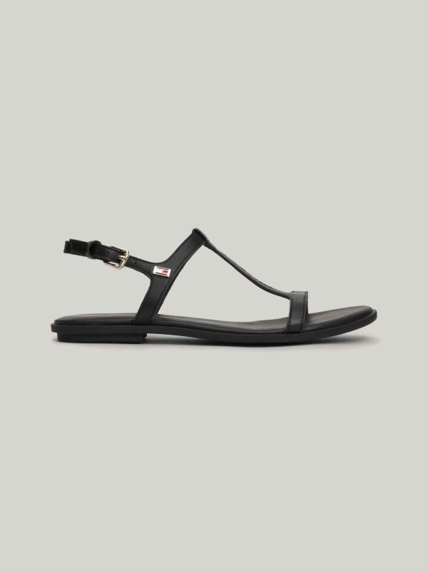 احصلي على صندل أنيق بمقدمة مفتوحة ويتميز بنعل فلات مريح ومزين بعلم الشعار على الأحزمة الرفيعة.