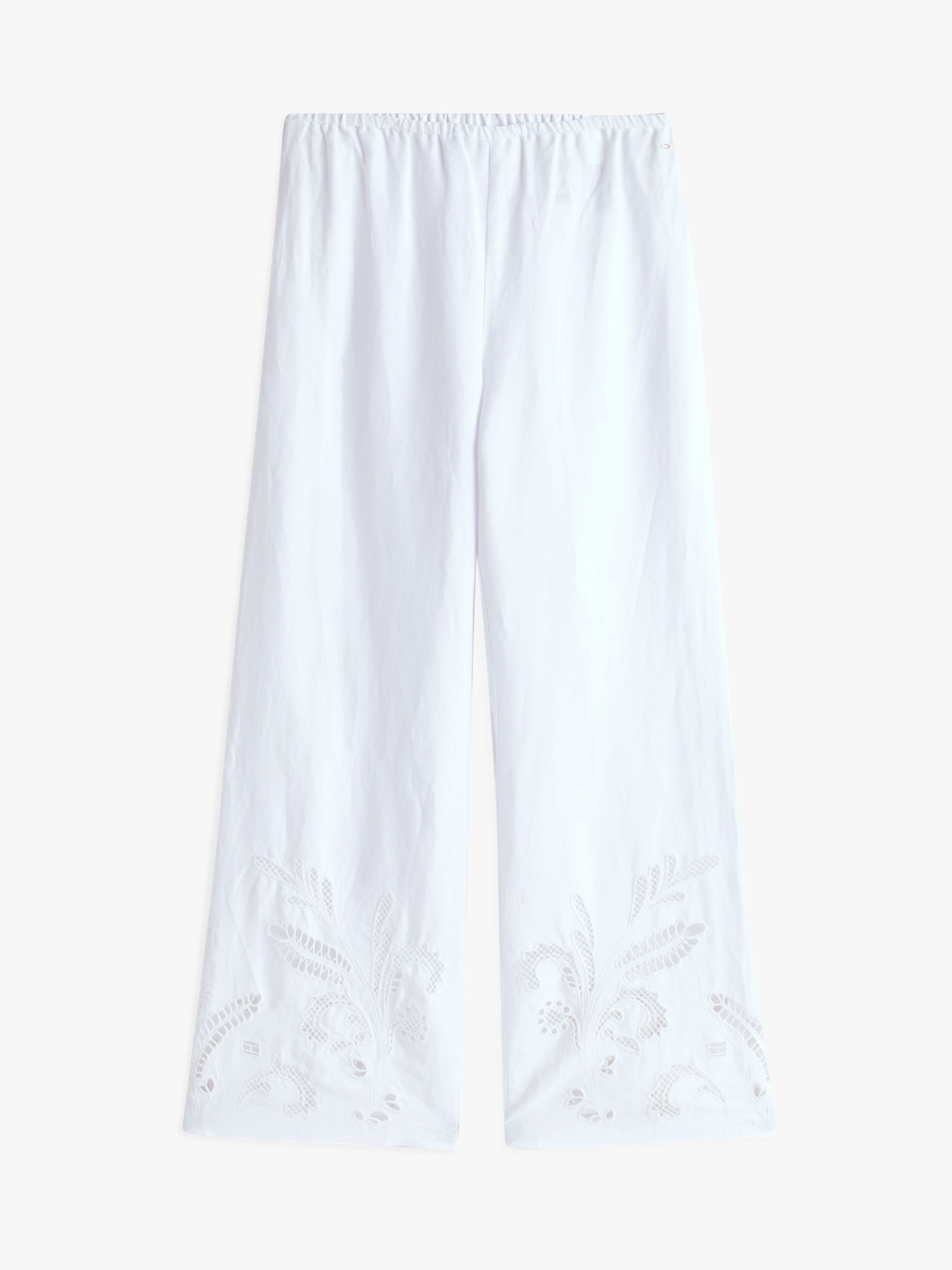 يجمع هذا البنطلون الأنيق بين الأناقة العملية والتفاصيل الحالمة، مصنوع من مزيج كتان خفيف مع تطريز إنجليزي يضفي لمسة ساحرة.
