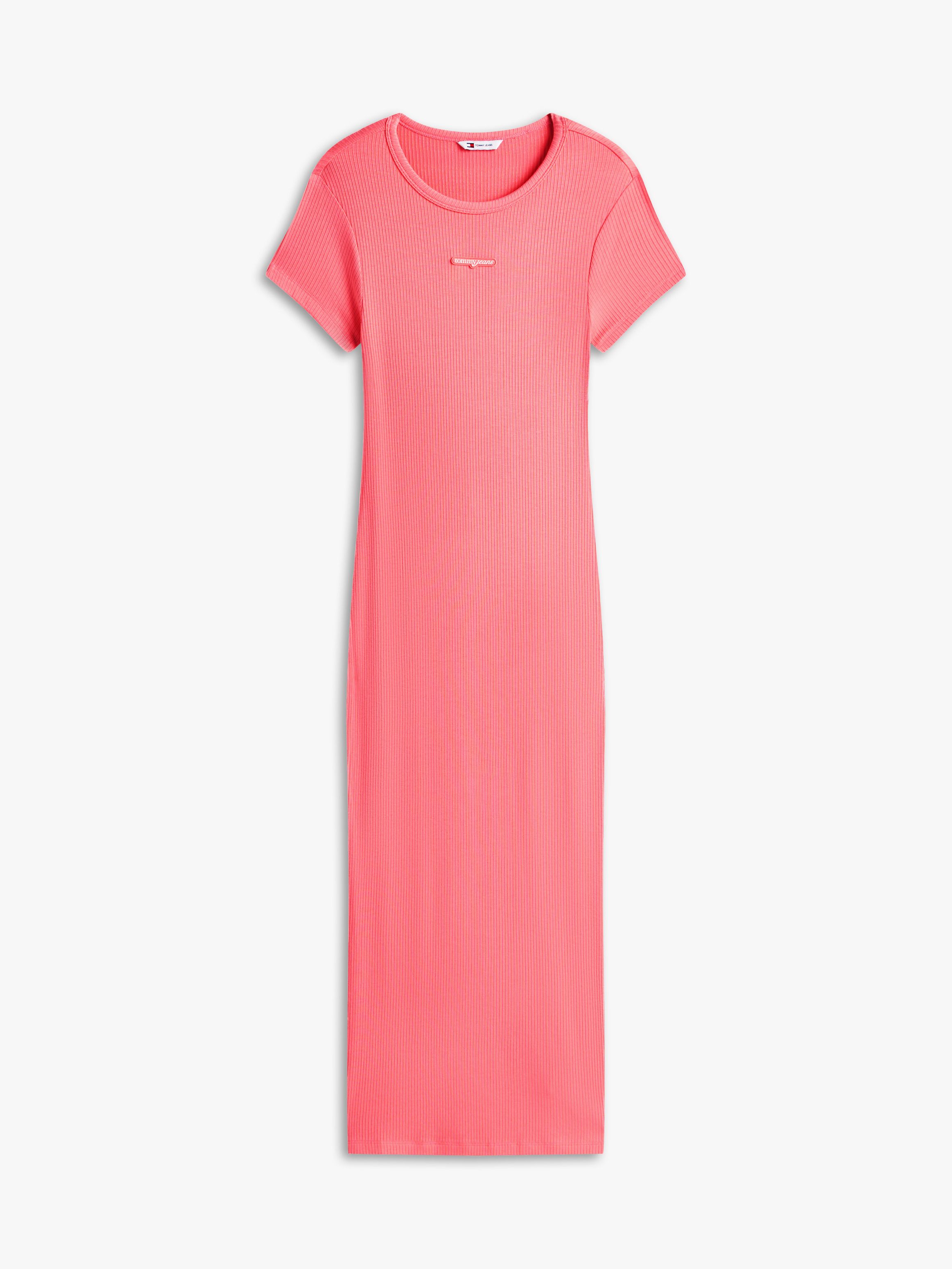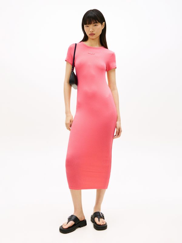 يأتي هذا الفستان الماكسي الضيق قصير الأكمام من فيسكوز مطاطي ناعم بنسيج مضلع، ليمنحكِ إطلالة محددة للقوام بملمس مميز.