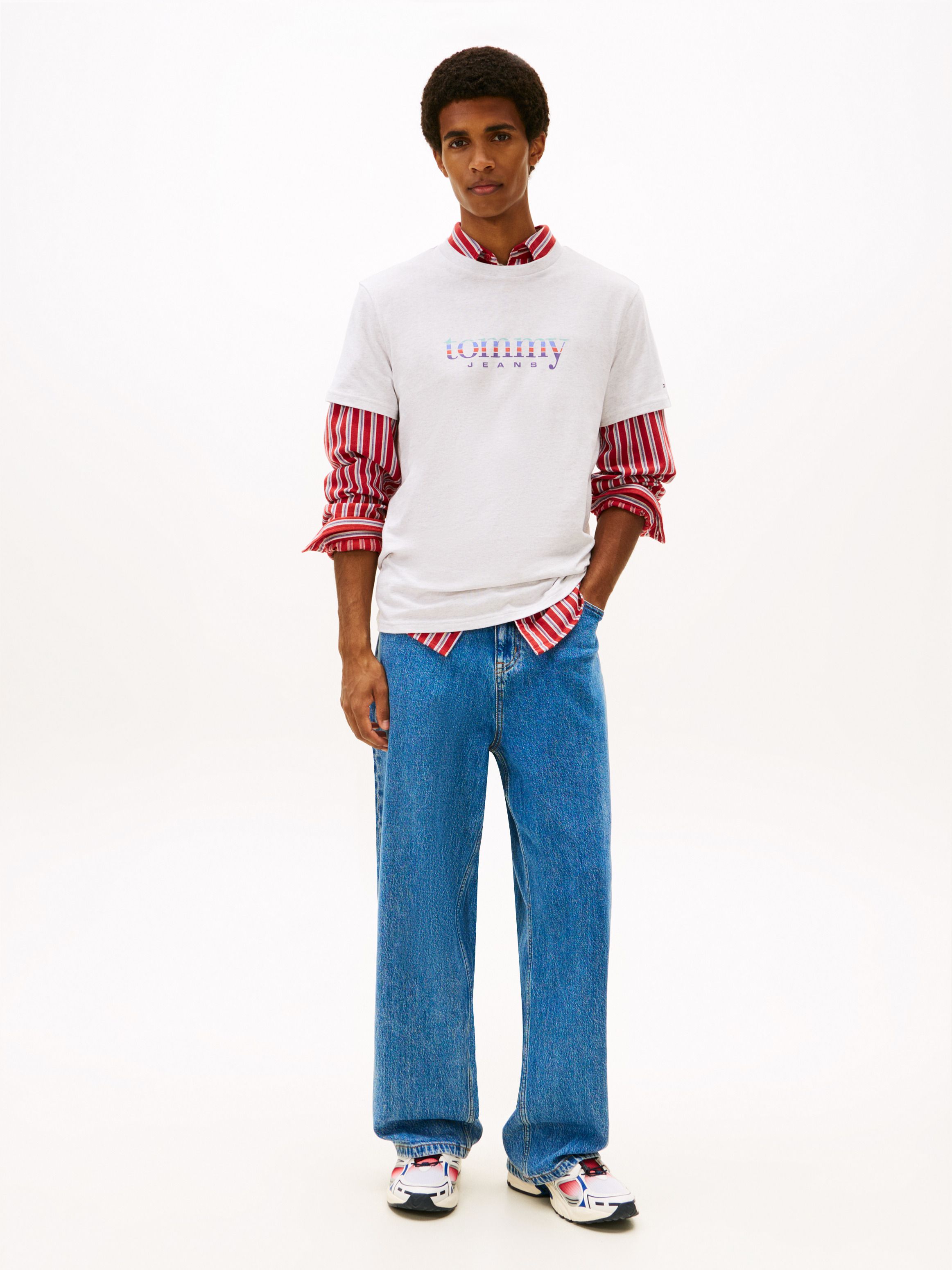 تيشيرت مصنوع من جيرسي القطن النقي بقصّة ضيّقة، ويمنحك لمسة كلاسيكية بفضل الشعار المستوحى من الستايل الريترو على الجهة الأمامية.