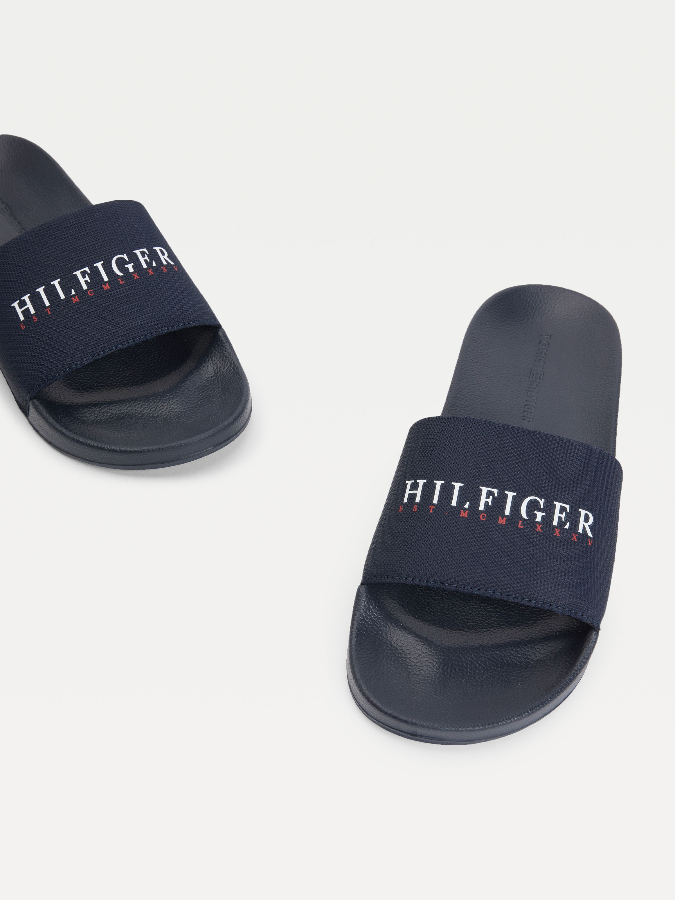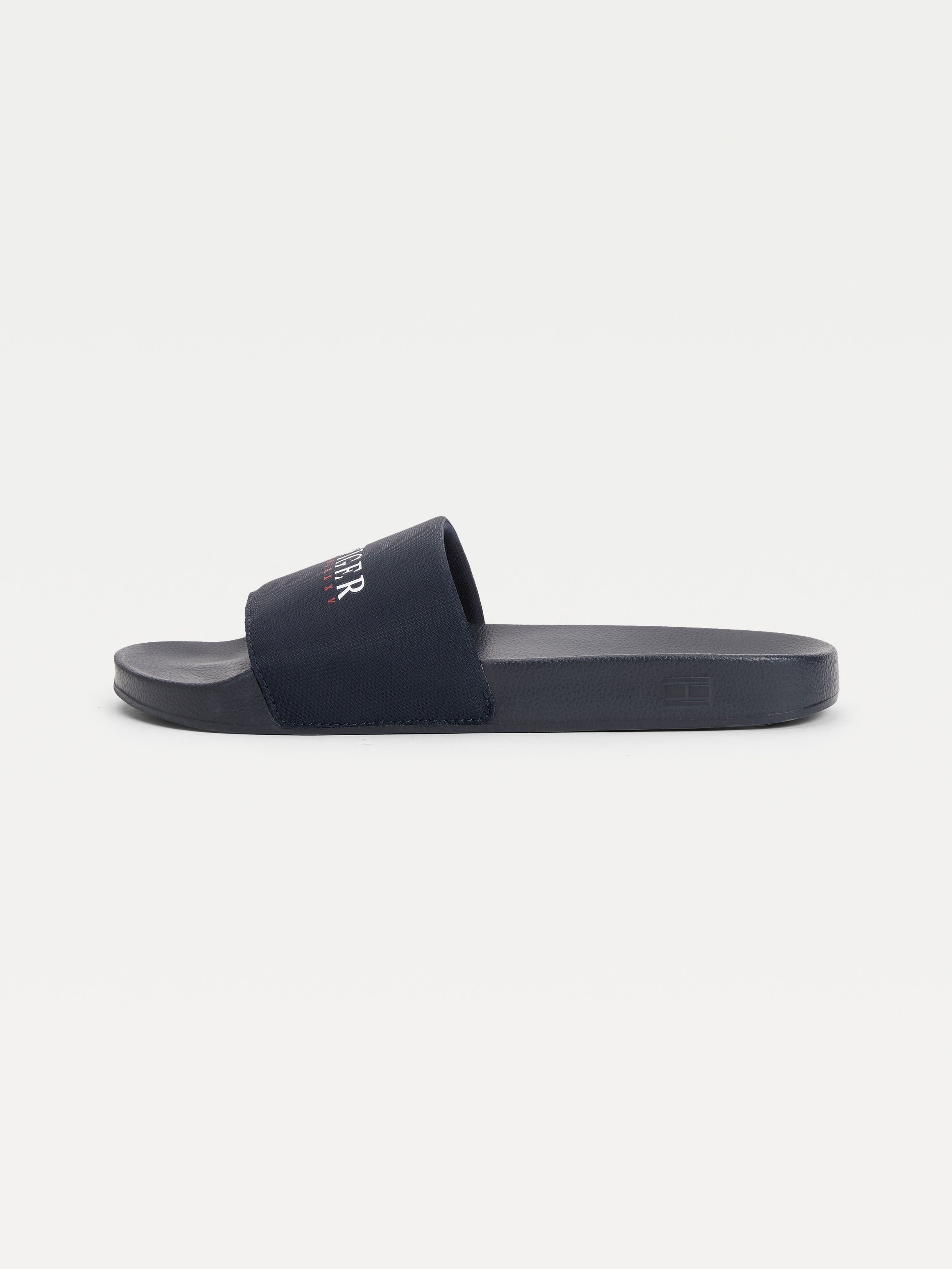 • جزء علوي من النايلون والنايلون المعاد تدويره • بطانة بوليستر • نعل داخلي من البوليستر • نعل خارجي من نسيج EVA • شعار تومي هيلفيغر على الحزام • علامة تومي هيلفيغر التجارية