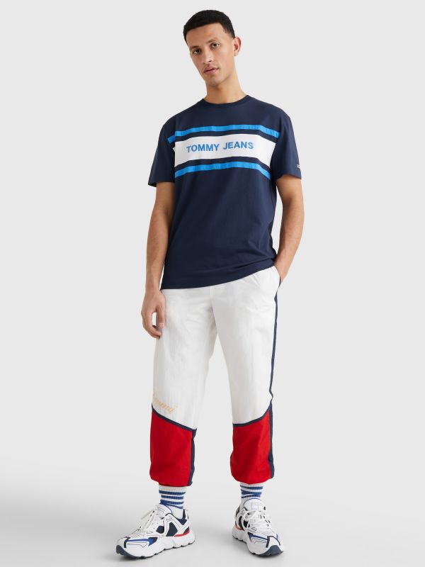 يتميز التيشيرت القطن بأنه مصنوع من القطن العضوي الذي يسمح بمرور الهواء، ومزين بطبعة أنيقة بخط أفقي وتفاصيل الشعار.