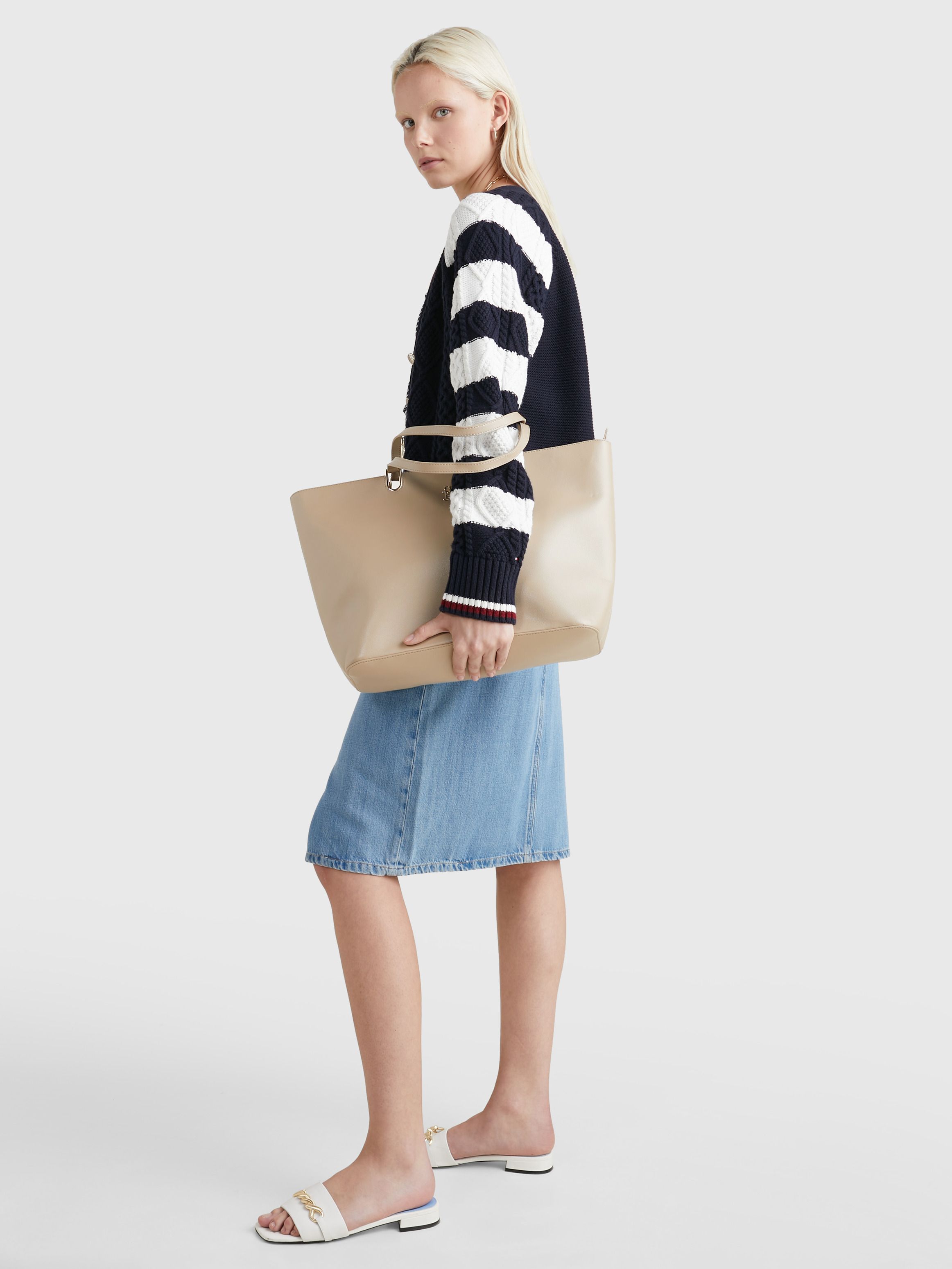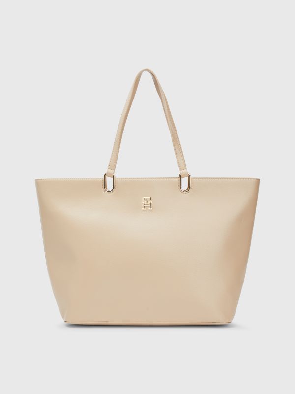 • حقيبة تسوق متوسطة الحجم مزينة بحروف الشعار