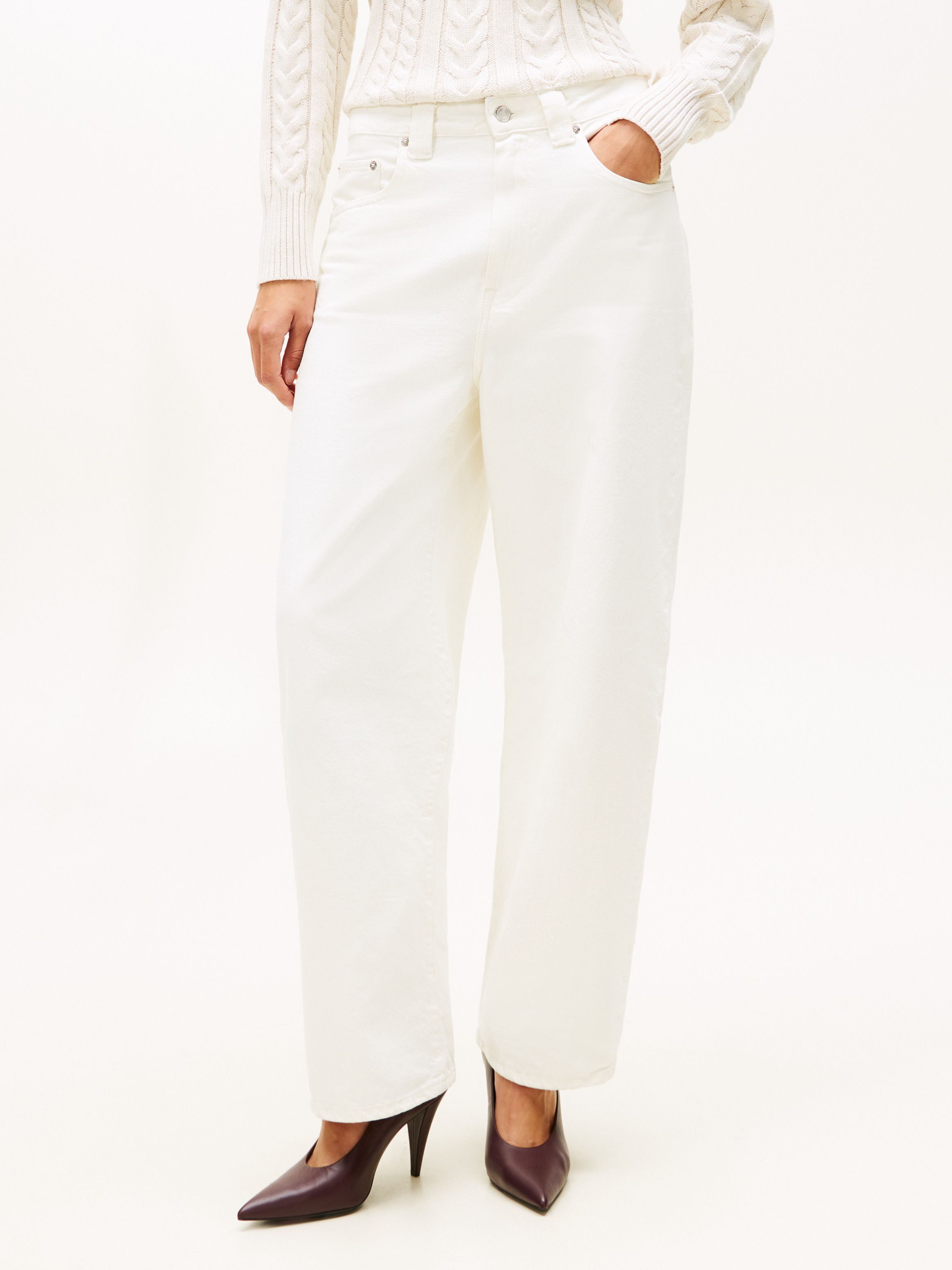 تألّقي بإطلالة مستوحاة من الستايل الريترو مع هذا الجينز العصري المصمم بساق Barrel الواسعة وحزام خصر متوسط الارتفاع لإطلالة حديثة وجذابة.