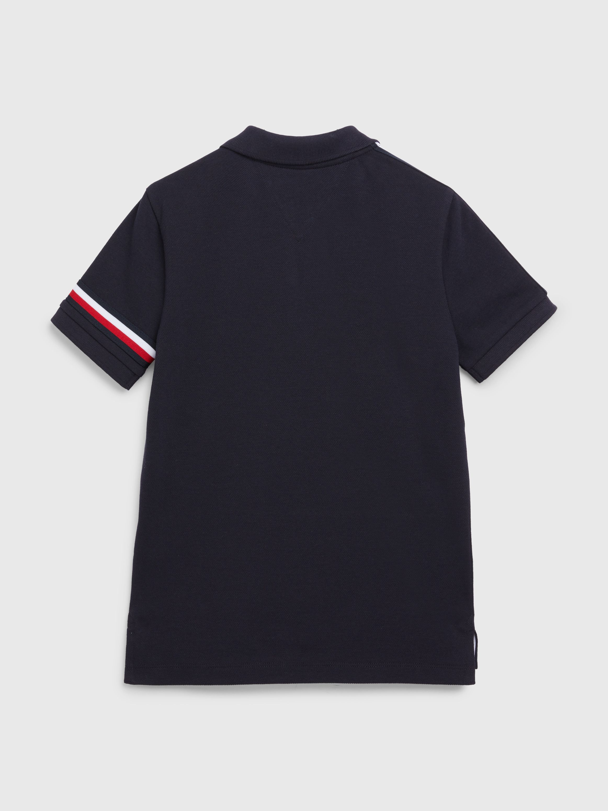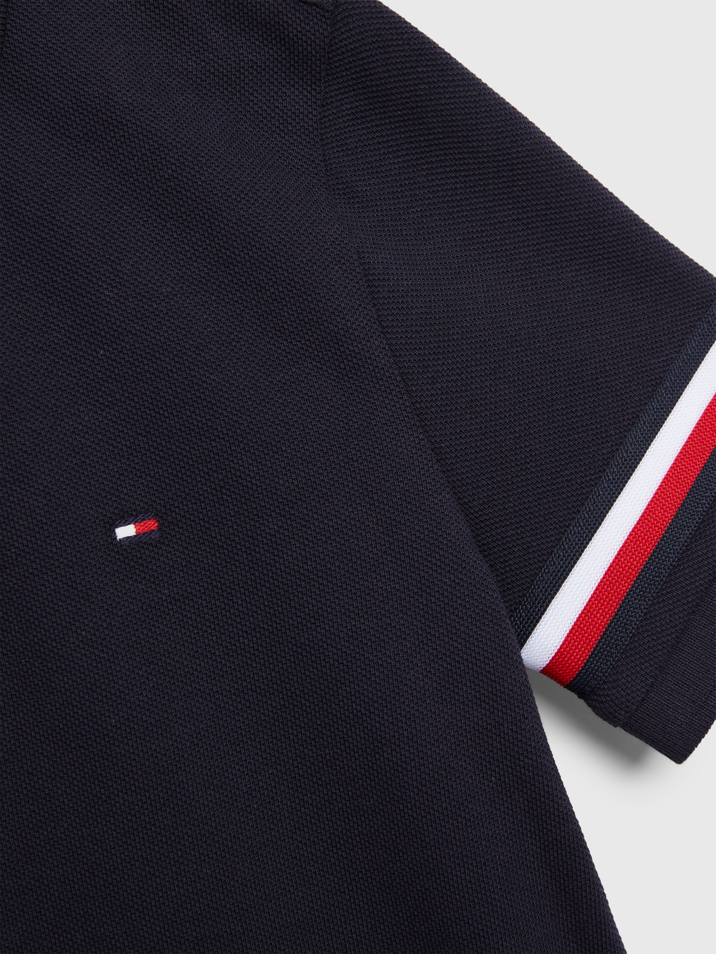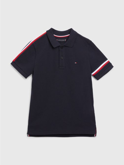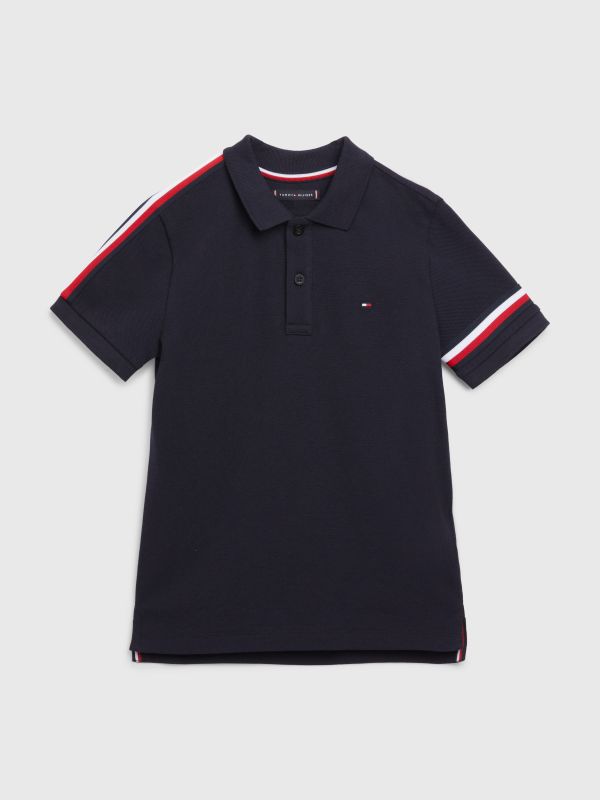 يتميز هذا التيشيرت البولو الكلاسيكي بأنه مصنوع من القطن العضوي الخالص ويتميز بشريط مزين بالشعار على الأكمام والكتف.