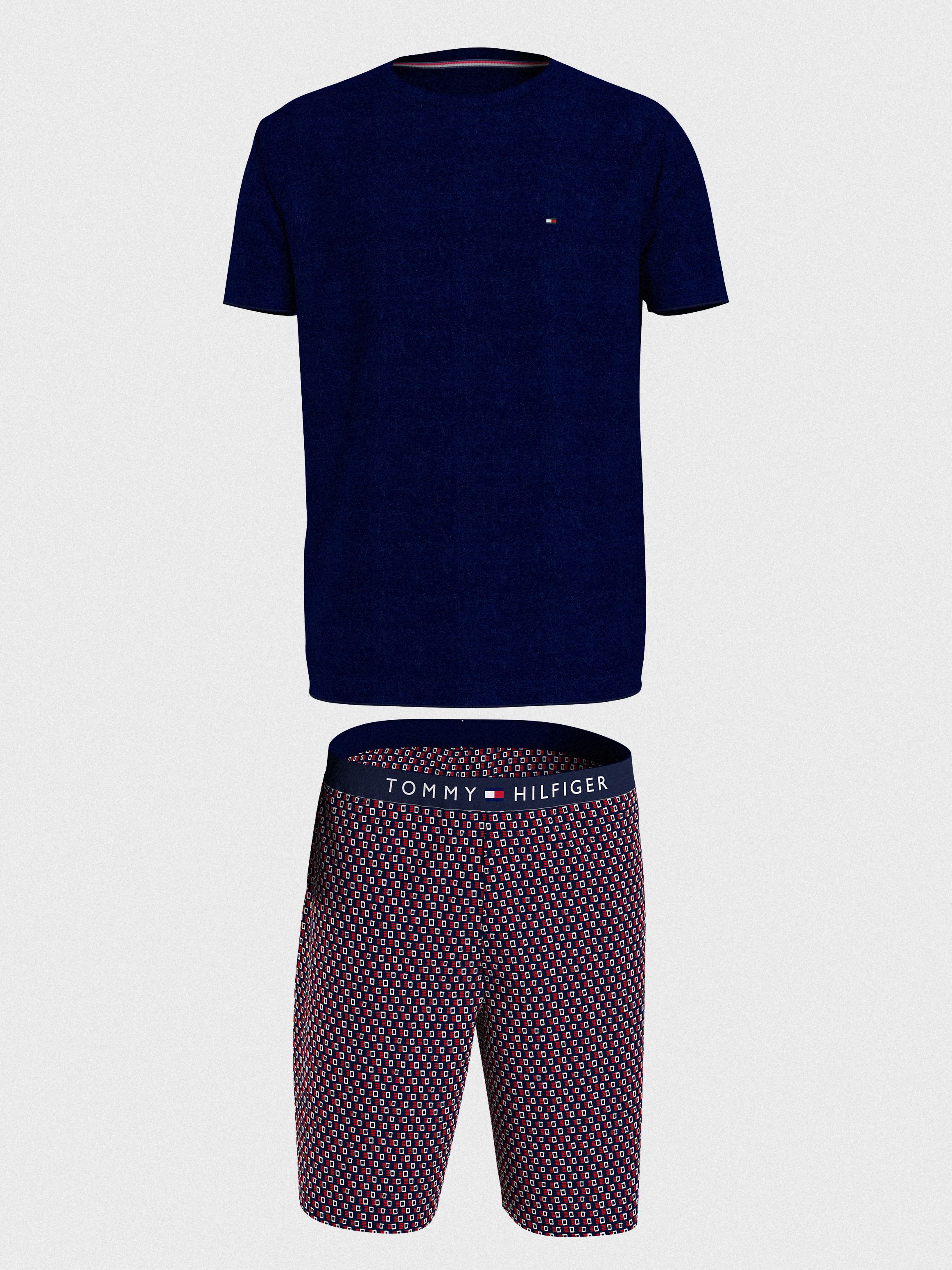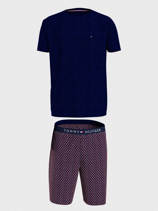 استمتع بمظهر يليق بوقت الاسترخاء مع هذه البيجامة القطن المزينة بالشعار على الشورت مع تطريز علم تومي هيلفيغر على التيشيرت.