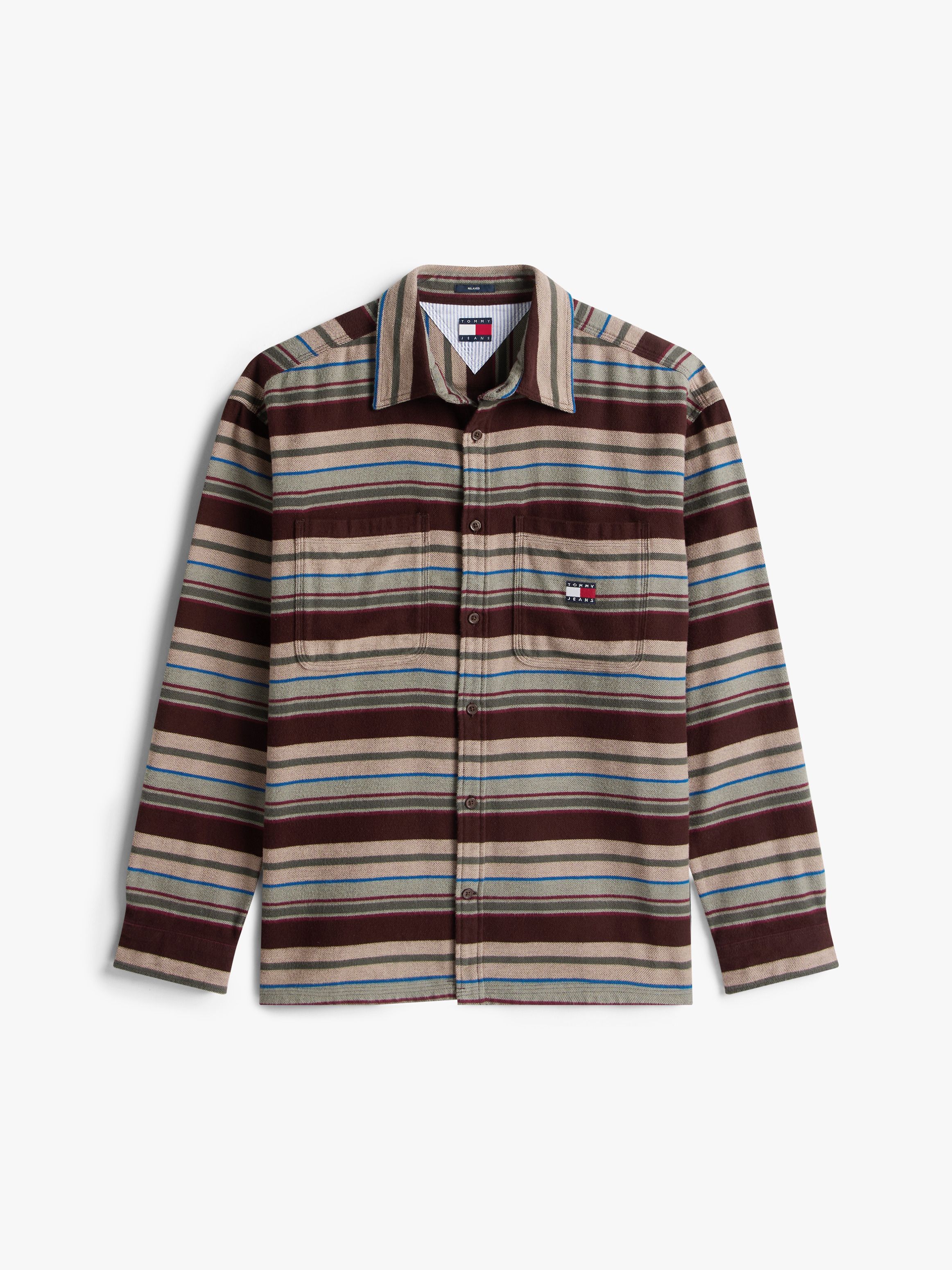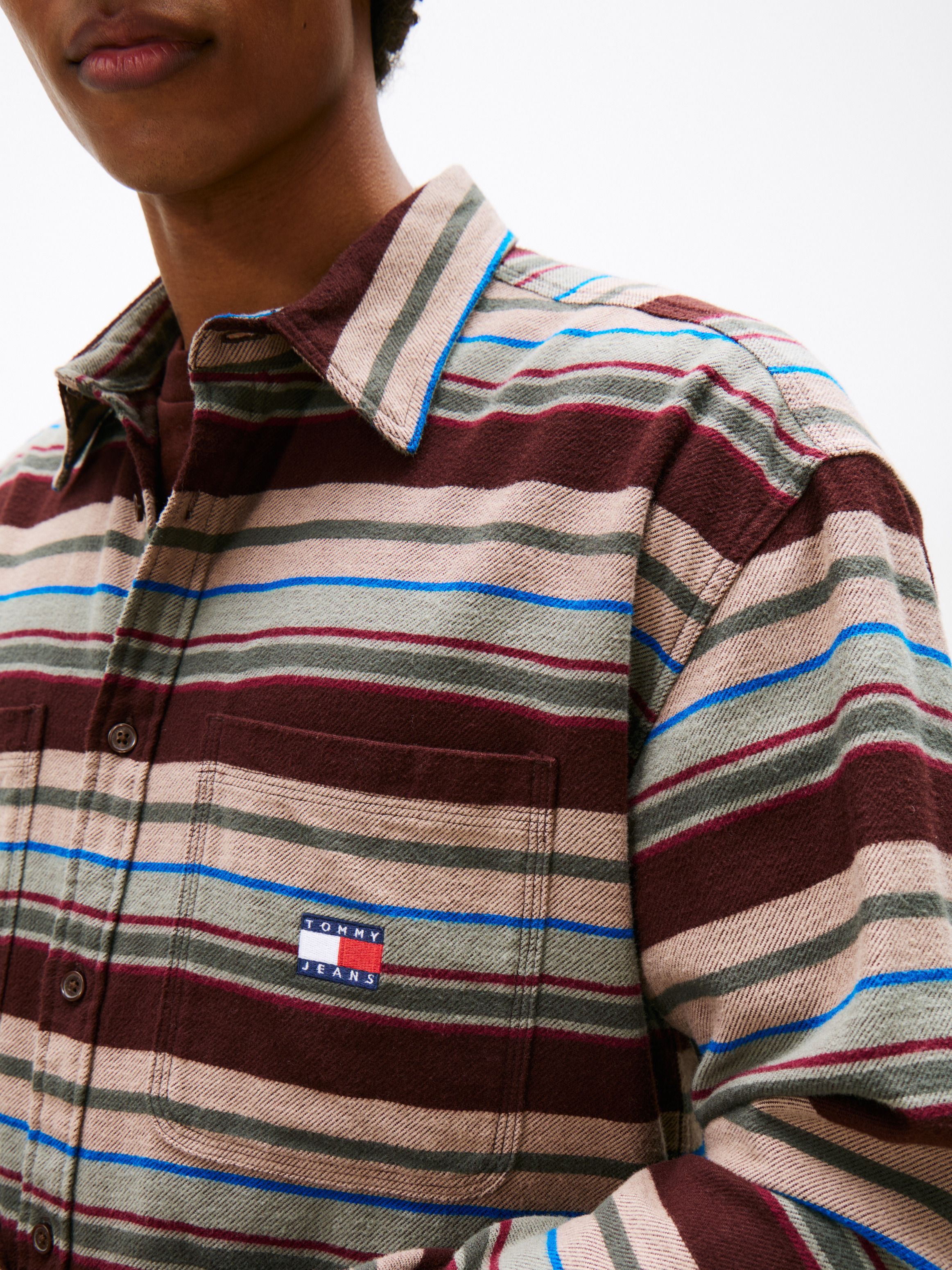 احصل على إطلالة عملية ومريحة مع قميص ناعم بقصة واسعة من الفلانيل، يجمع بين أسلوب الملابس الوظيفية والراحة في التصميم الواسع، ما يجعله خيارًا مثاليًا للارتداء كطبقة خارجية خلال المواسم الباردة.