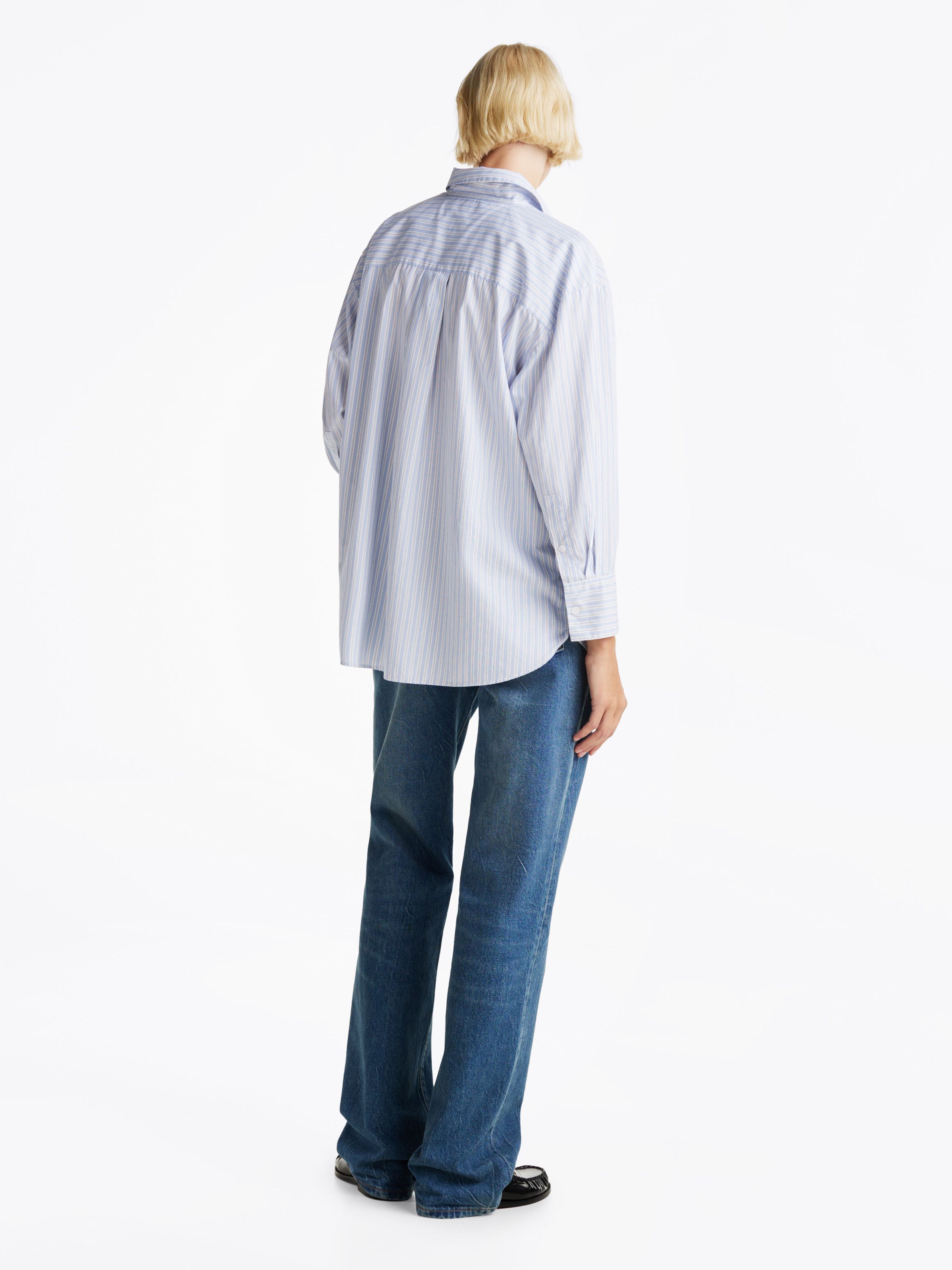 تضفي الخطوط الرفيعة من هيلفيغر لمسة أنيقة على هذه القميص ذات الحجم الكبير، المصنوعة من قطن بوبلين نقي ومقرمش.