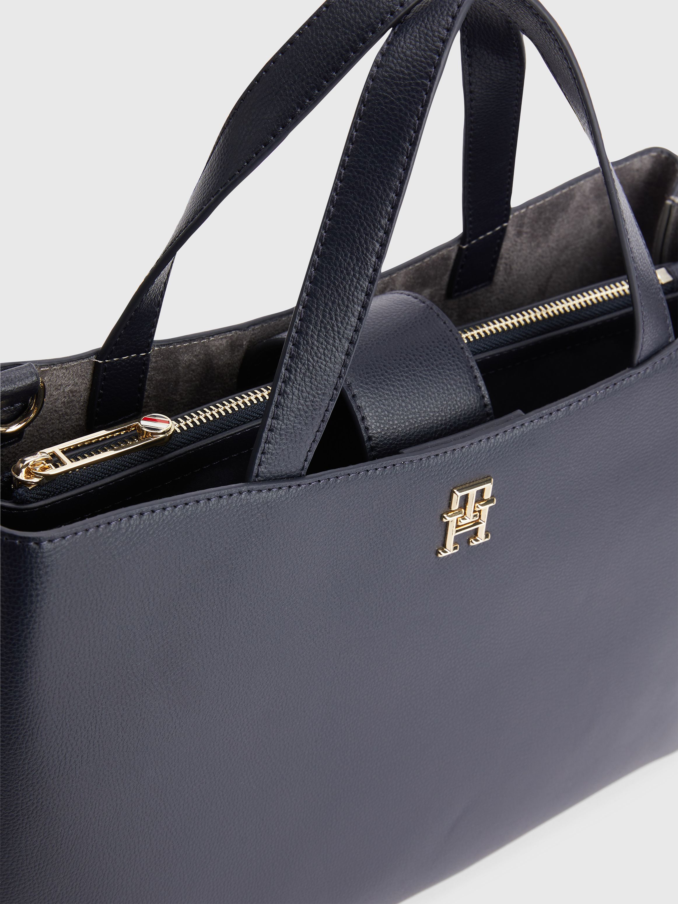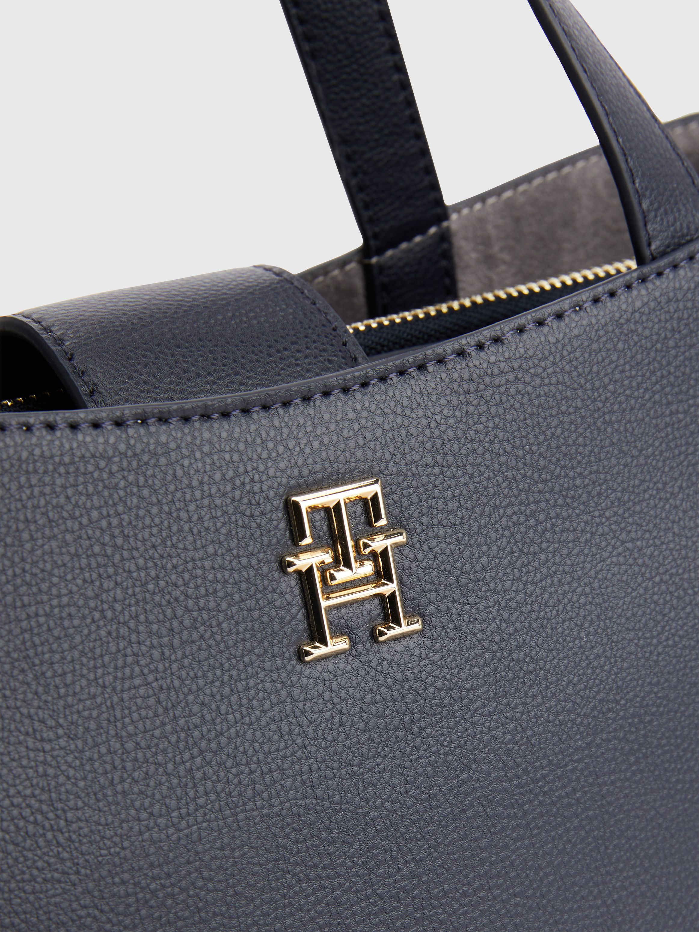 • مزيج البوليستر المعاد تدويره • ملمس حبيبات خشن • مقبضان علويان • حزام كتف يمكن تعديله أو إزالته • جزء رئيسي واحد • حقيبة عملات معدنية بسحاب يمكن إزالتها • لوحة حروف الشعار على المقدمة • علامة تومي هيلفيغر التجارية