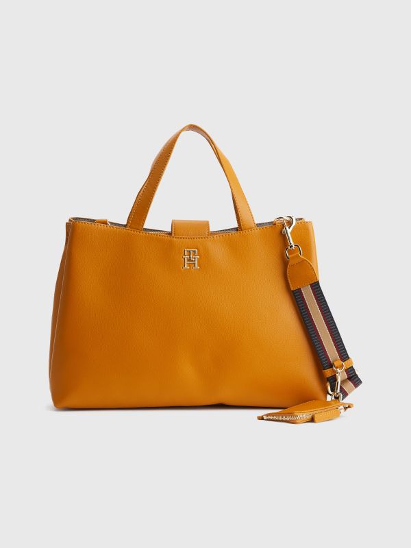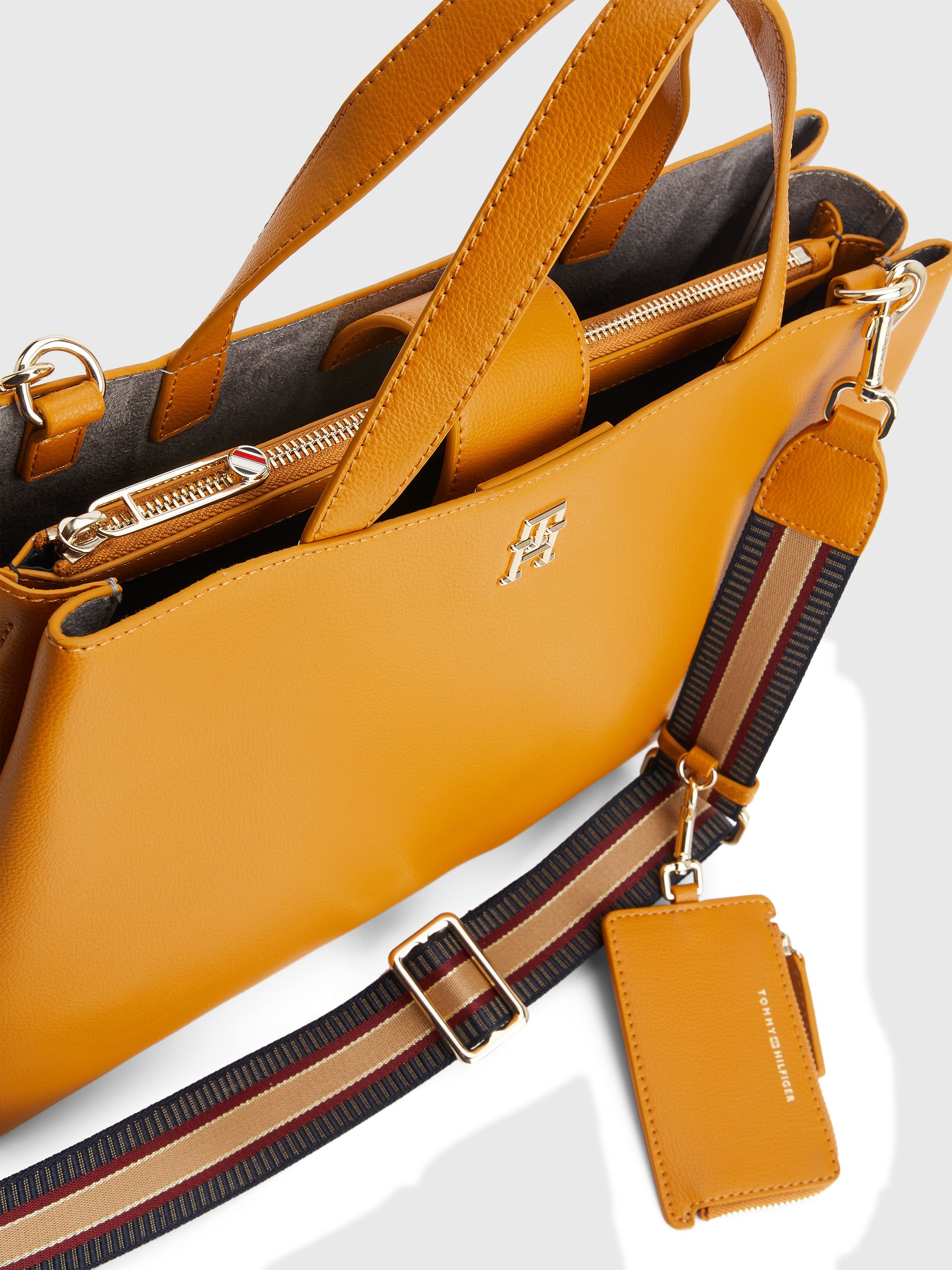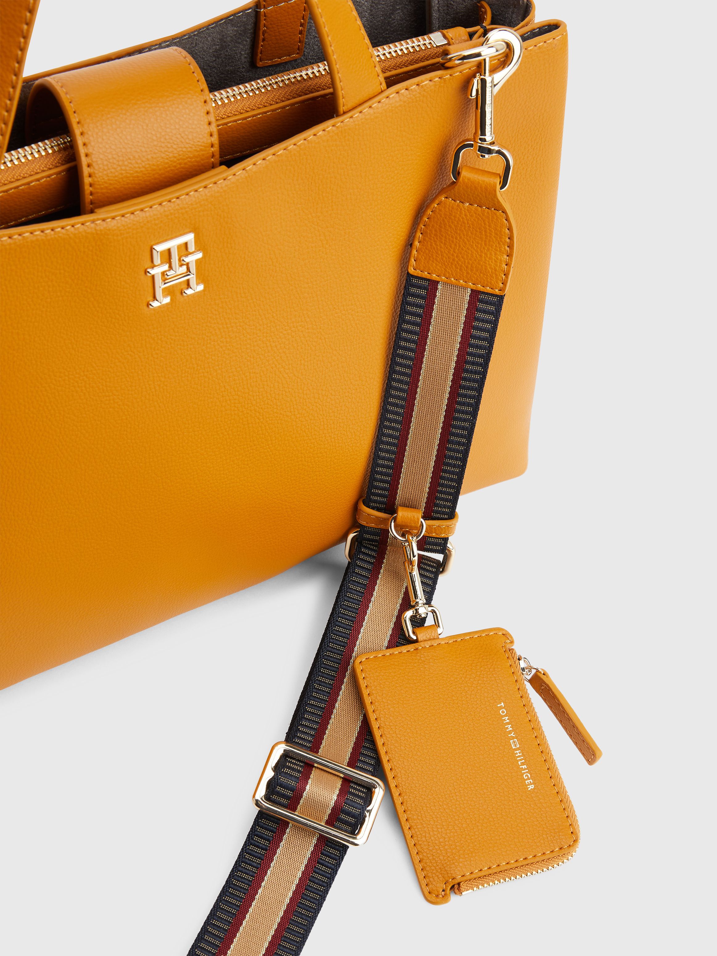 • مزيج البوليستر المعاد تدويره • ملمس حبيبات خشن • مقبضان علويان • حزام كتف يمكن تعديله أو إزالته • جزء رئيسي واحد • حقيبة عملات معدنية بسحاب يمكن إزالتها • لوحة حروف الشعار على المقدمة • علامة تومي هيلفيغر التجارية