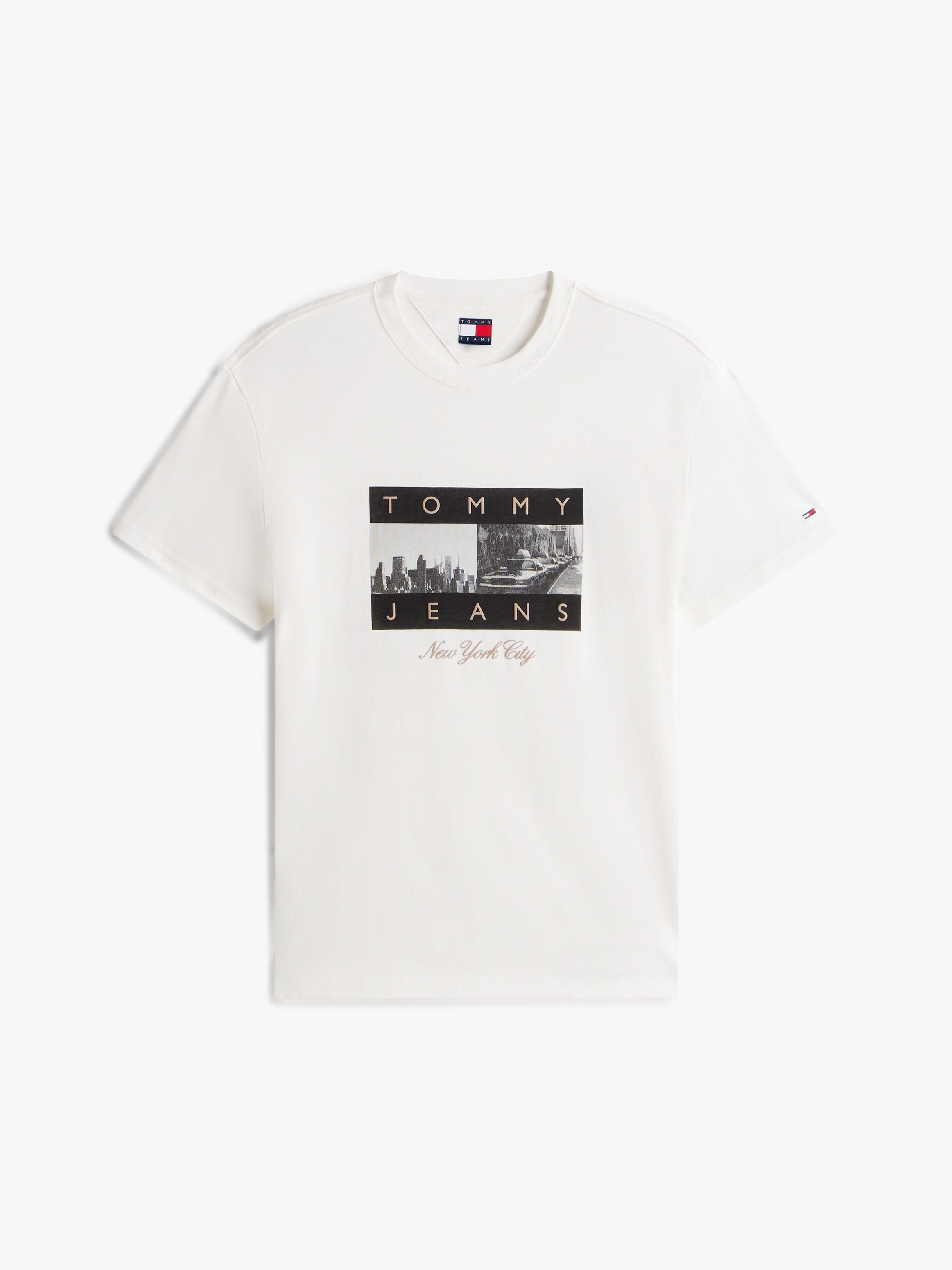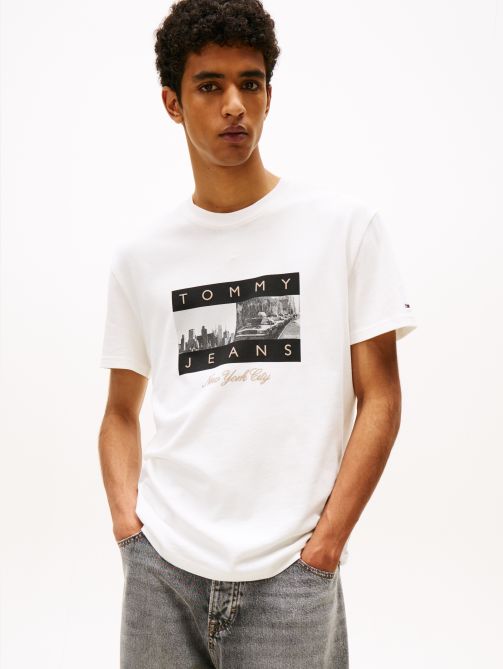 تميّز بإطلالة عصرية بنفحة عتيقة مع هذا التيشيرت المصنوع من قطن جيرسي نقي، ويتميّز بطبعة فوتوغرافية لأفق مدينة نيويورك مدمجة داخل الشعار، ما يمنحه طابعًا مميزًا وأسلوبًا لافتًا.