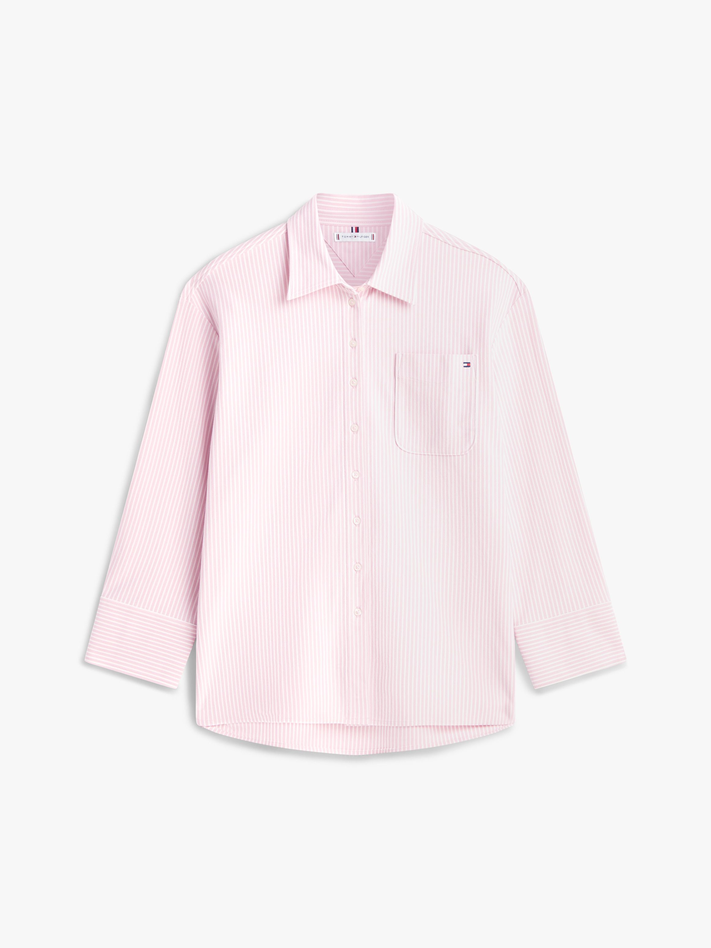 • قميص بيكيه مخطط بقصة مريحة وأكمام طويلة