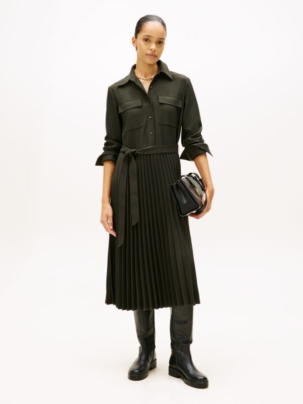 يجمع هذا الفستان القميص بين الطابع العملي والأناقة الأنثوية، ويتميّز بكسرات ناعمة تنسدل على التنورة بطول ميدي لتمنحك حركة انسيابية جذابة، بينما تضيف الياقة الكلاسيكية والحزام القماشي لمسة من التناسق والبساطة.
