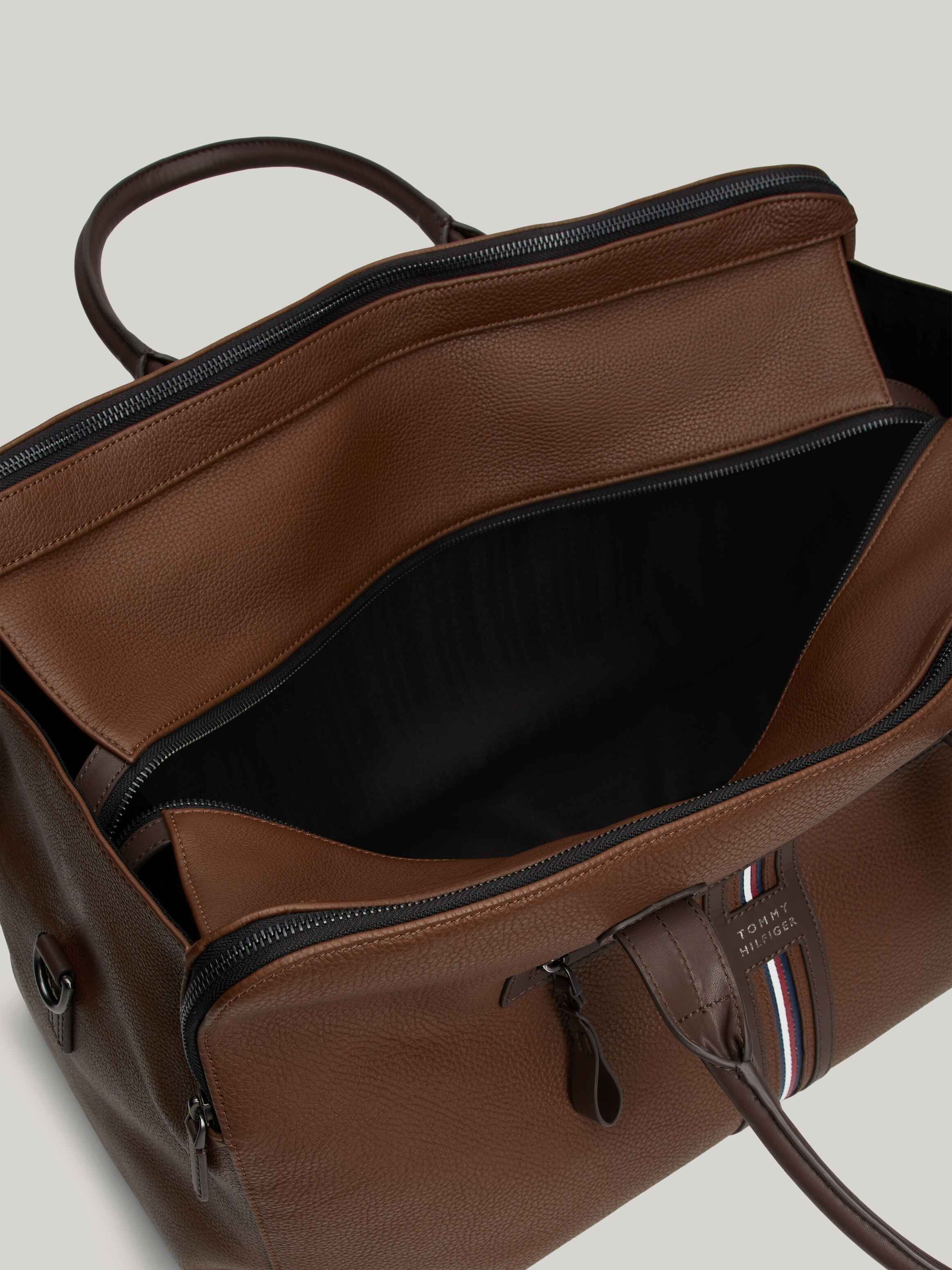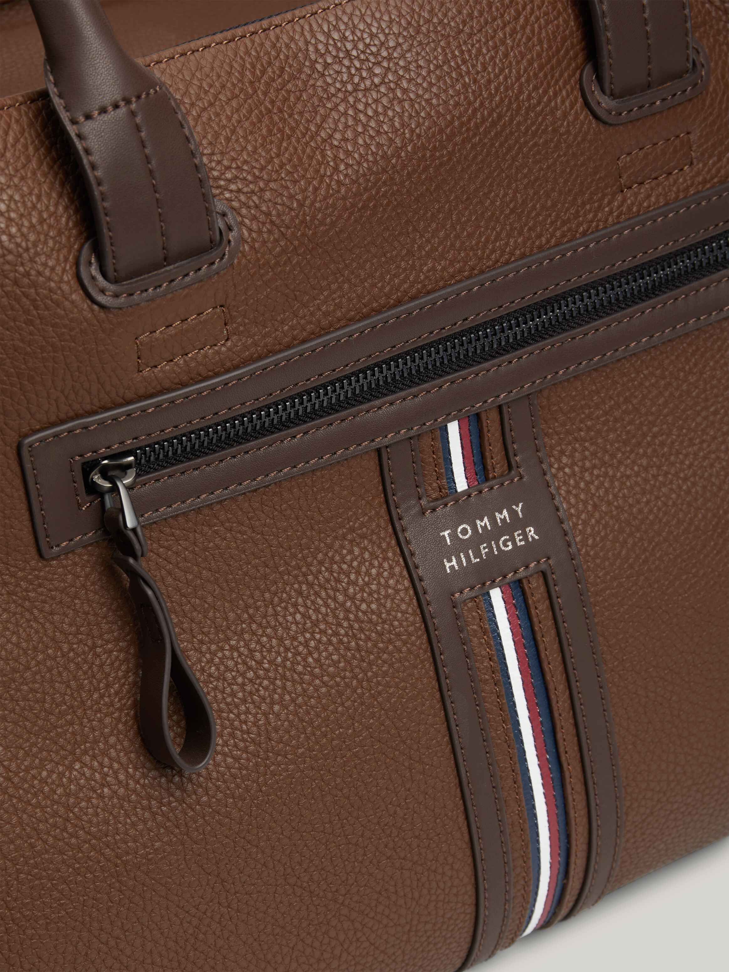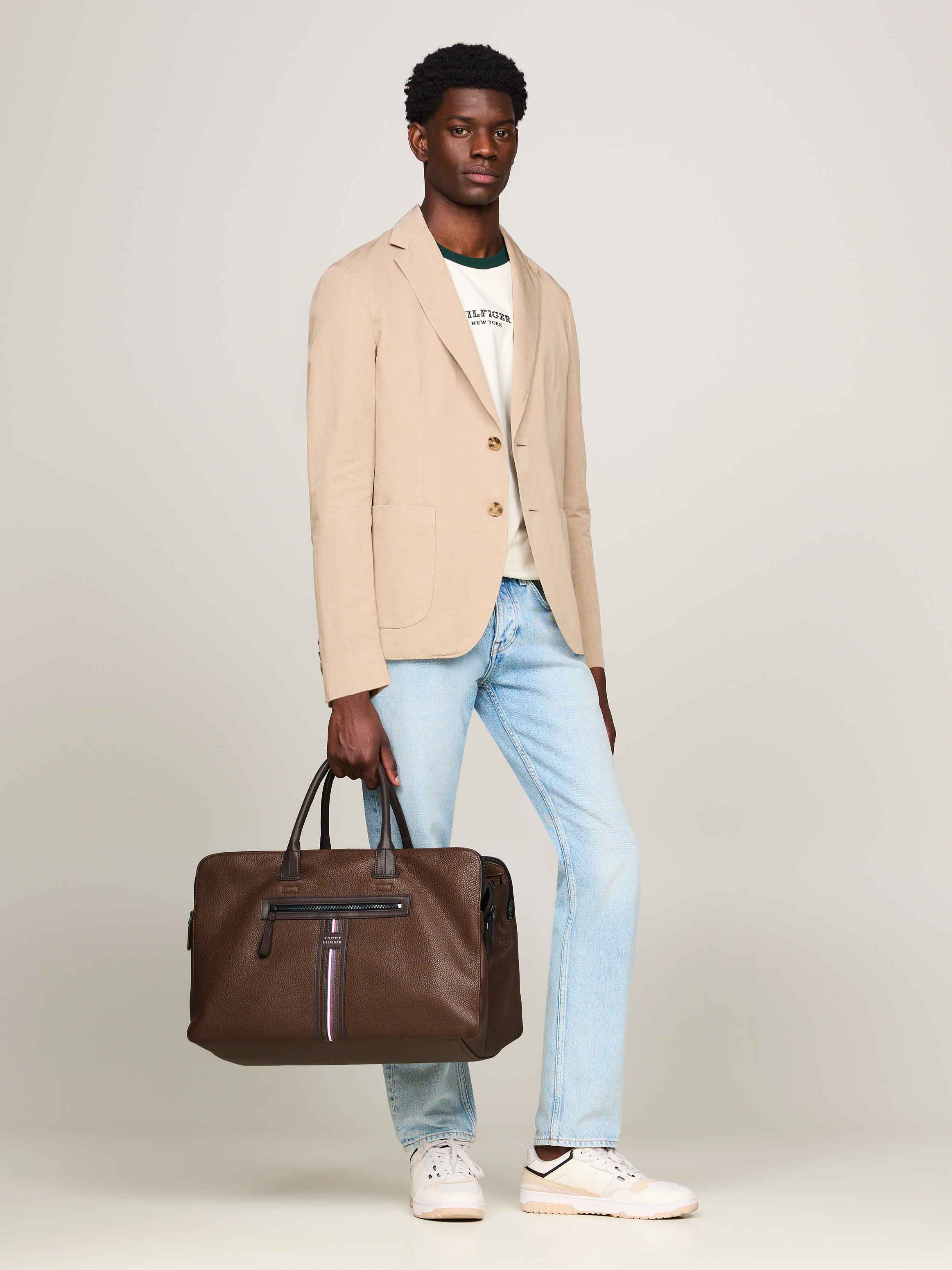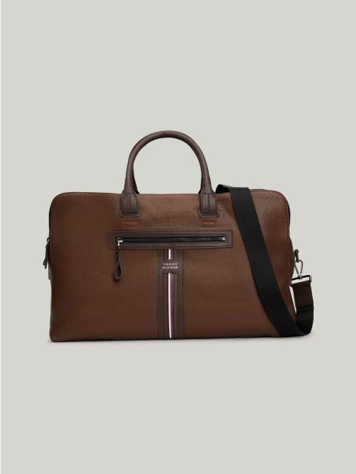 • جلد • صُنعت من مجموعة أعمال الجلد • تُغلق بسحاب مزدوج • مقبضان يد علويان • حزام كتف قابل للإزالة • جزء رئيسي واحد • جيب داخلي بسحاب • ثلاثة جيوب خارجية بسحاب • شريط الشعار في الأمام • شعار تومي هيلفيغر ذهبي منقوش على المقدمة • علامة تومي هيلفيغر التجارية