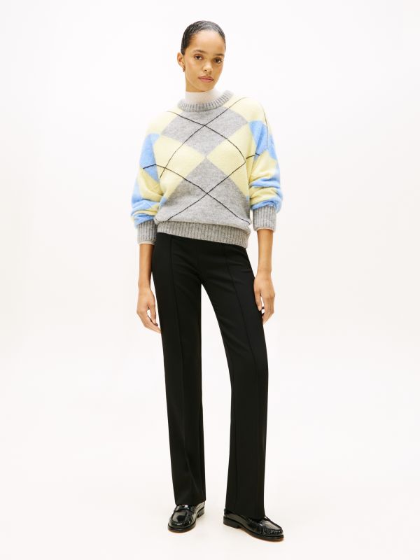 يمنحك هذا البنطلون إطلالة أنيقة بقصّة محددة وساق تتّسع عند الكاحل، مع كسرات أمامية حادة تضيف لمسة رسمية وعصرية. أبرز التفاصيل • مزيج فيسكوز مطاطي • كسرات أمامية مضغوطة • إغلاق بسحّاب وخطاف من الجانب • جيبان ويلت بالخلف • علامة Tommy Hilfiger • شارة معدنية بعلم Tommy Hilfiger على الخلف القصة والمقاس • قصّة Kick Flare (تتّسع عند الكاحل) • العارضة بطول 1.76 م وترتدي مقاس 8 الخامة والعناية • 68% بوليستر، 28% فسكوز، 4% إيلاستين