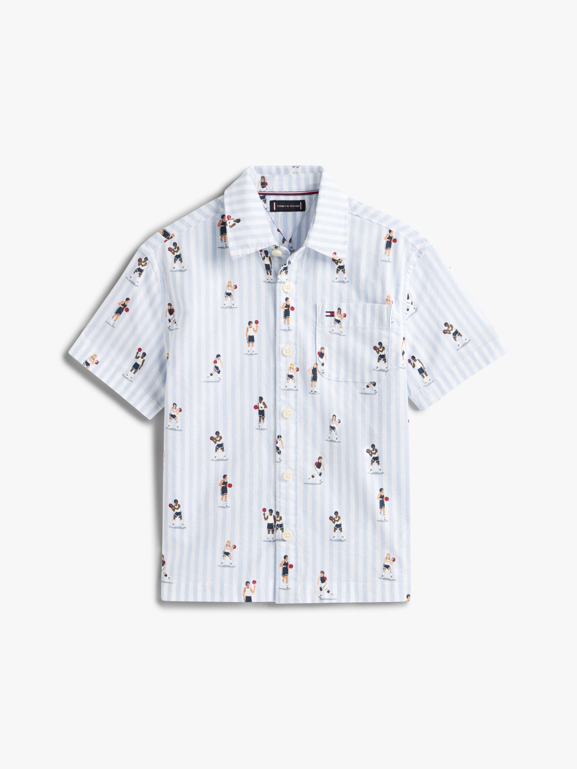 قميص أكسفورد مخطط بأكمام قصيرة ونقشة إيثاكا مع طبعة