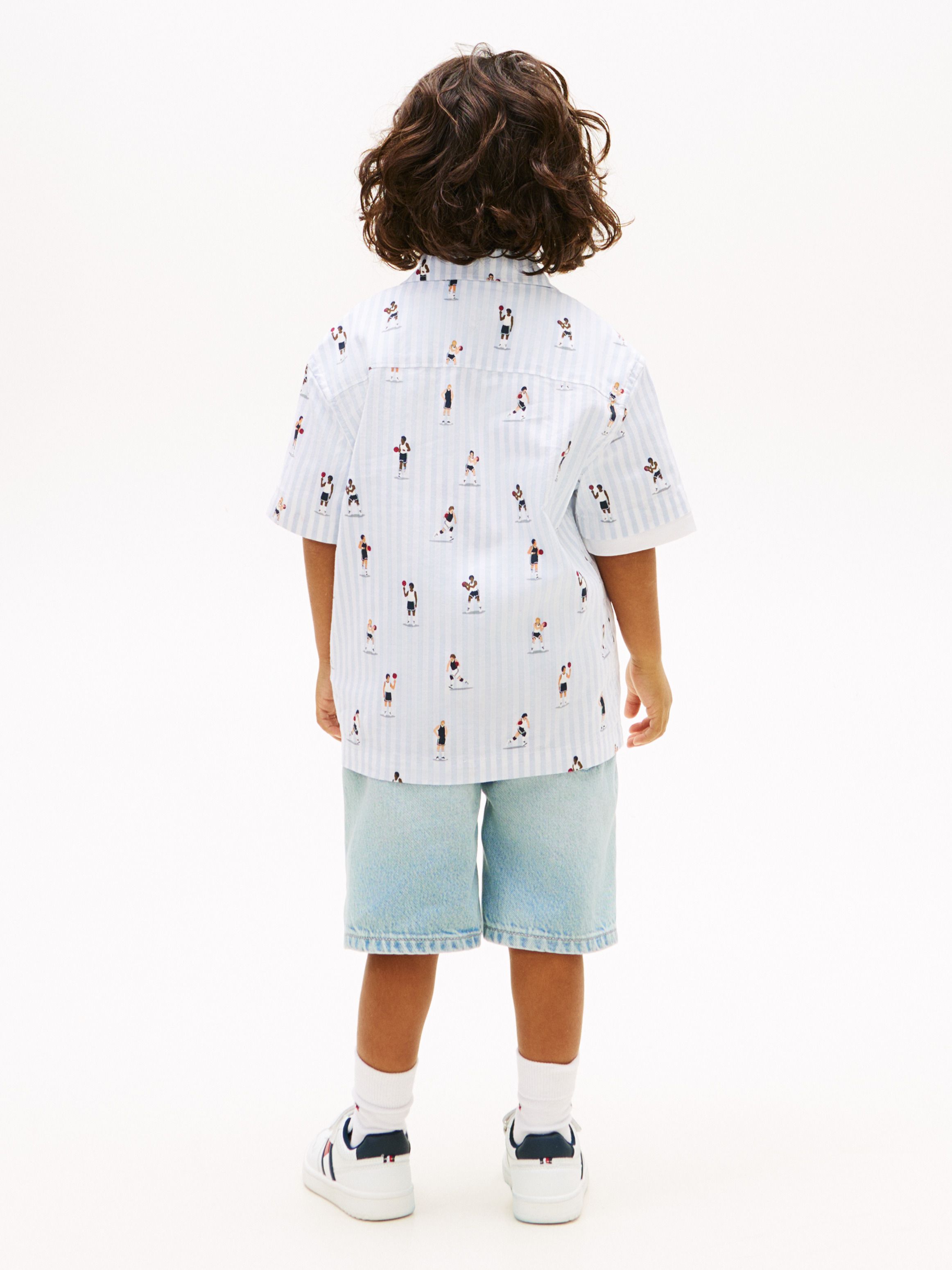 • قميص أكسفورد مخطط بأكمام قصيرة ونقشة إيثاكا مع طبعة