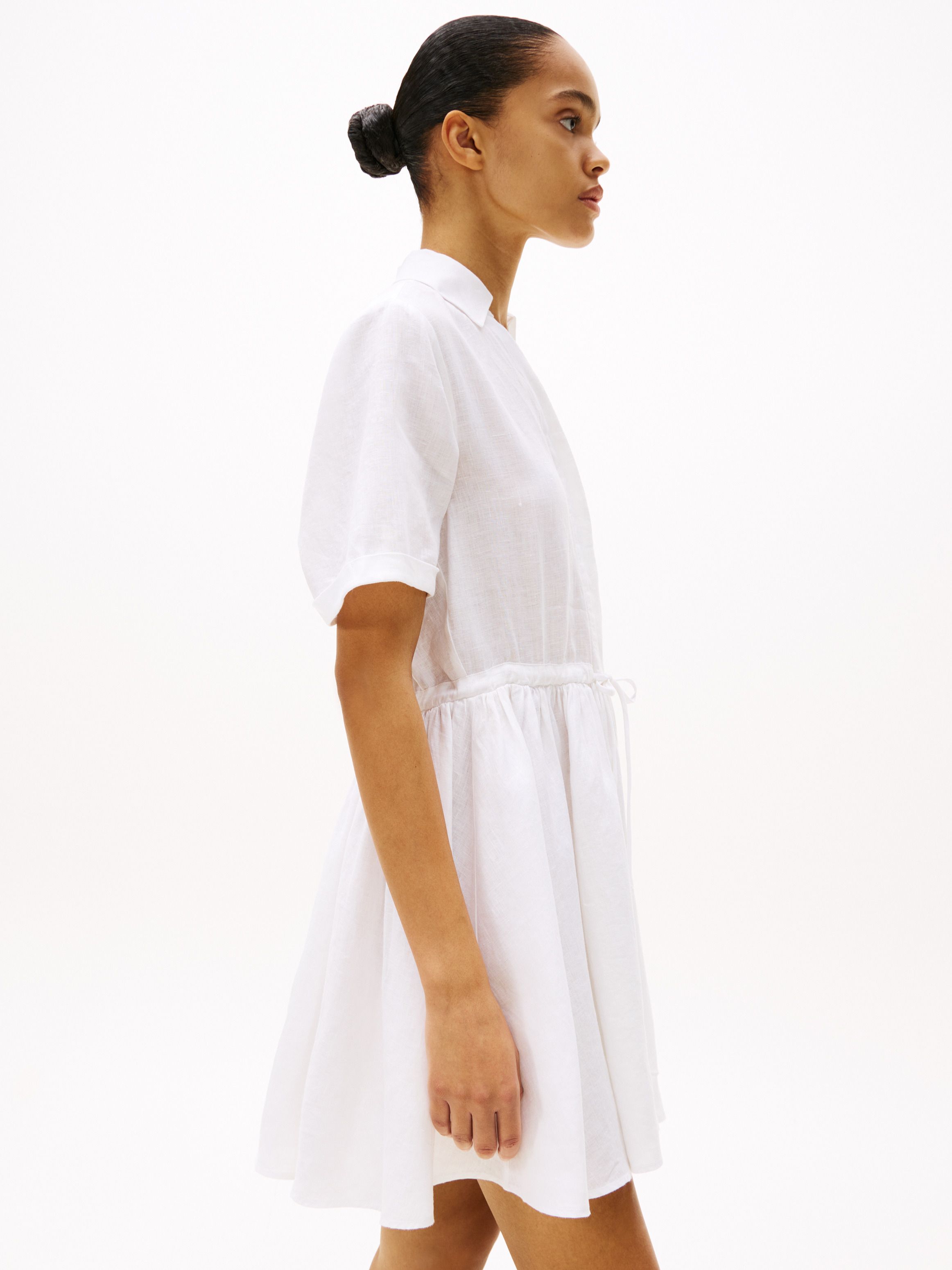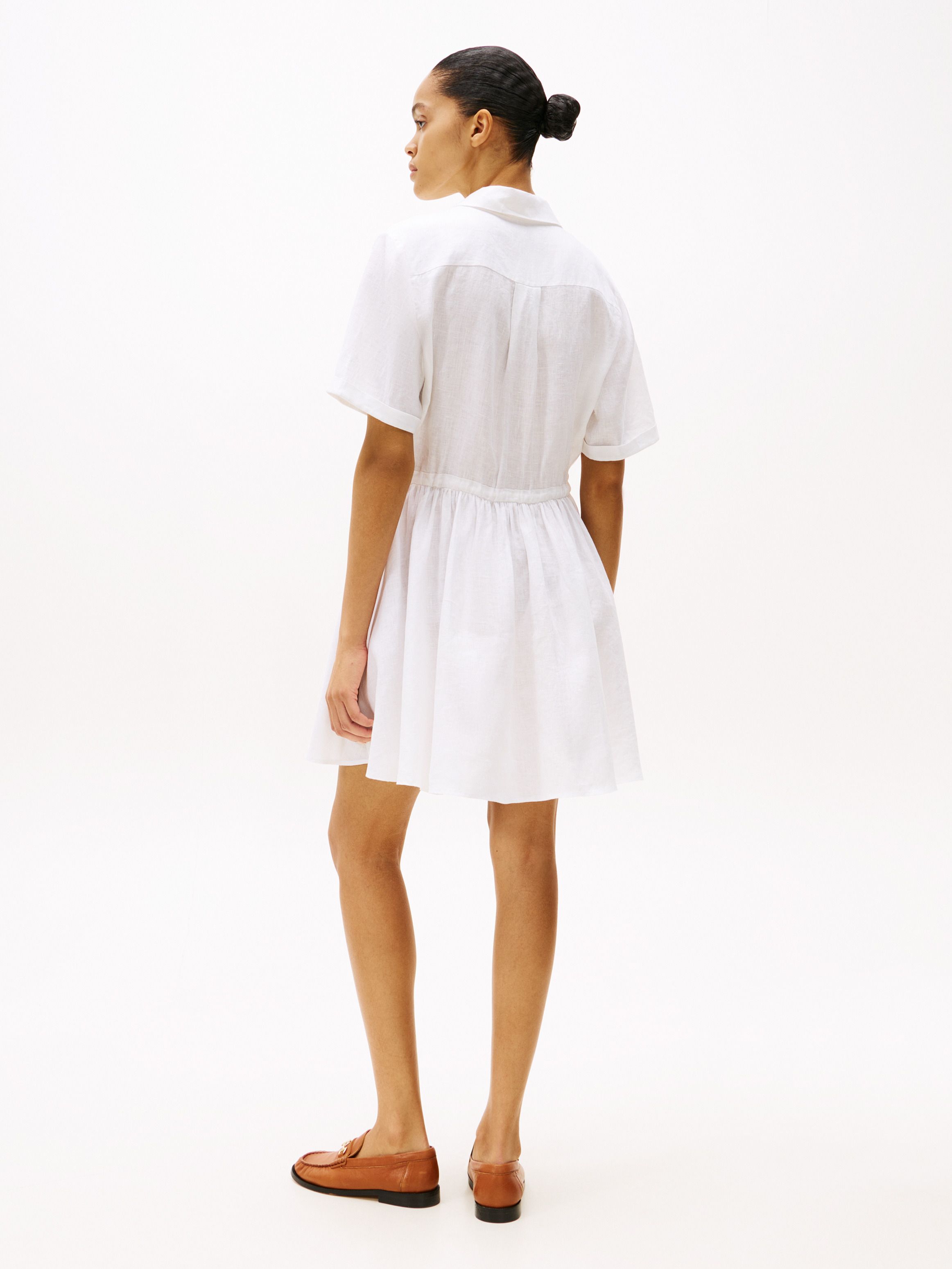 • فستان قميص قصير من الكتان الخالص