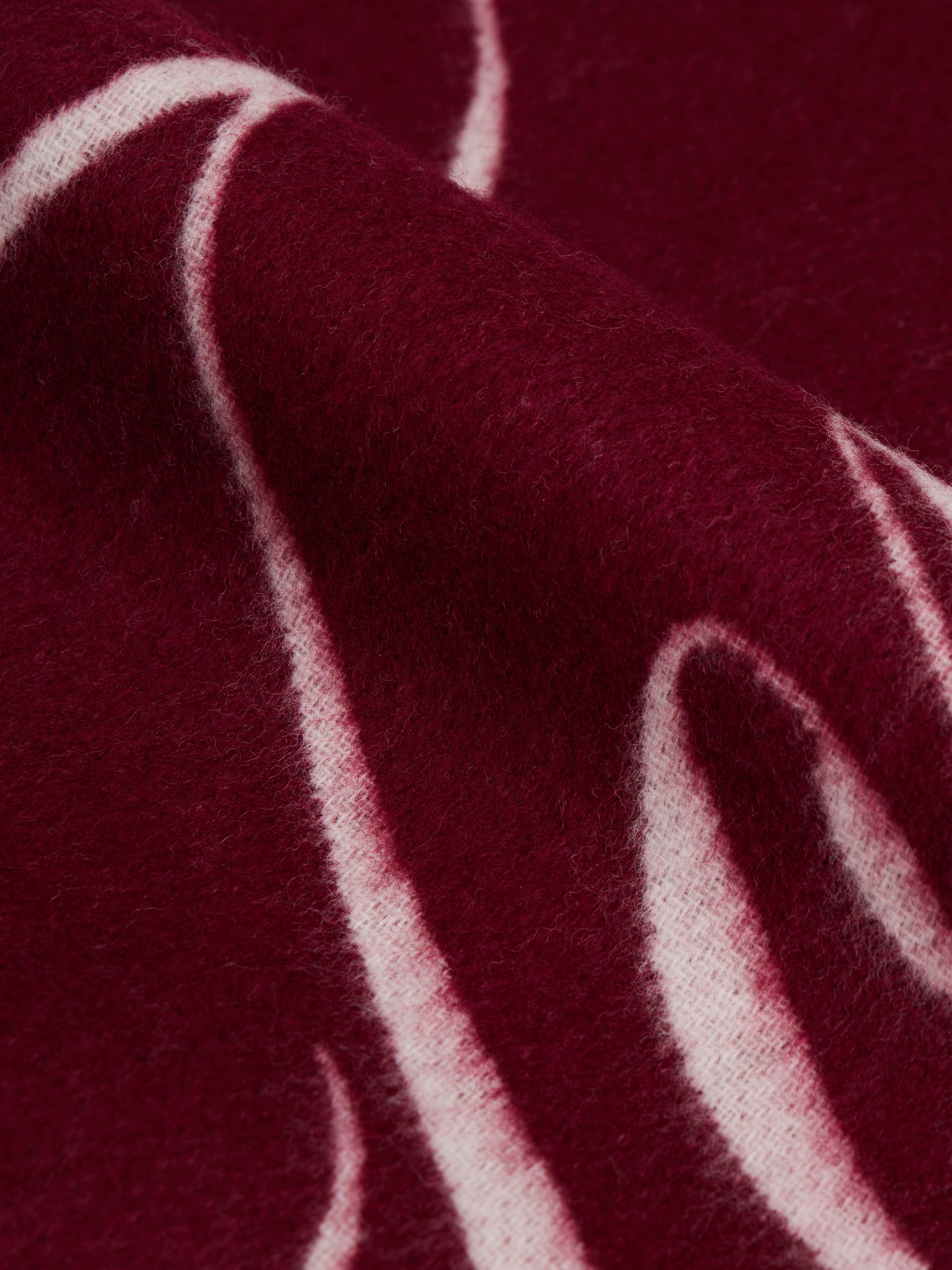 أضف لمسة فاخرة إلى إطلالتك مع هذا الوشاح المصنوع من الصوف النقي والمزين بشعار مكتوب يمر في المنتصف.