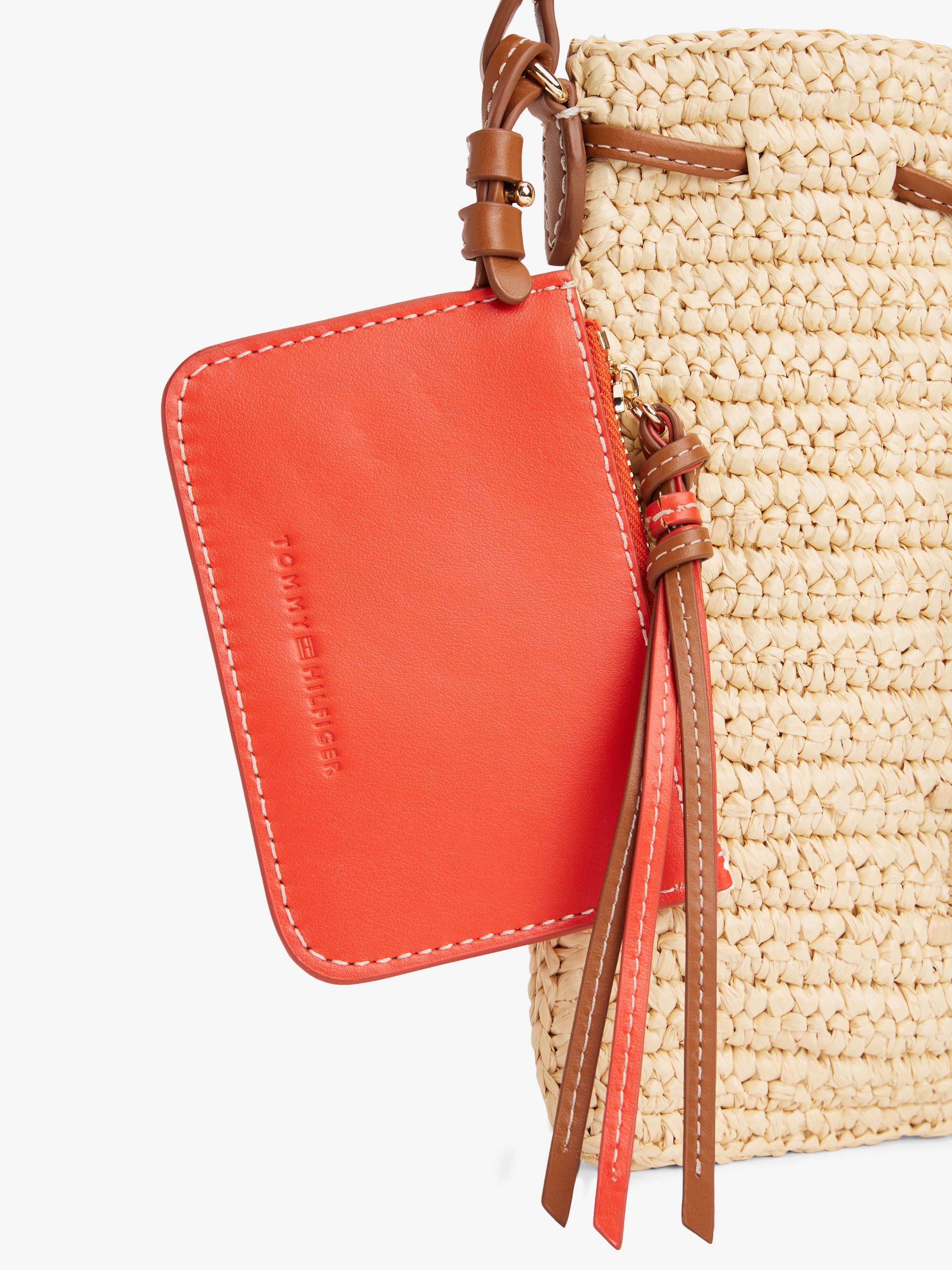 احتفظي بأغراضك الأساسية بأناقة مع حقيبة صغيرة من الرافيا، المصممة بأسلوب عصري عملي ومثالي للإطلالات الصيفية. تأتي بسحاب قابل للربط وتفاصيل بارزة مثل بطاقة ملونة وشعار TH المعدني لتمنحك لمسة من الحيوية والتميّز.
