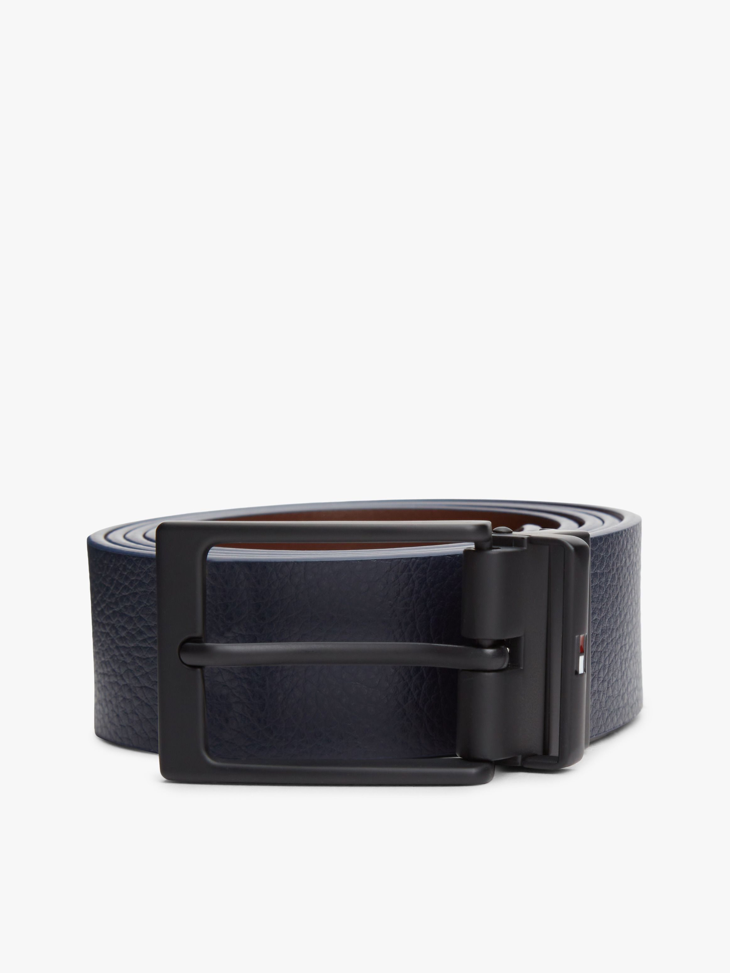 • حزام جلدي قابل للعكس بإبزيم مستطيل